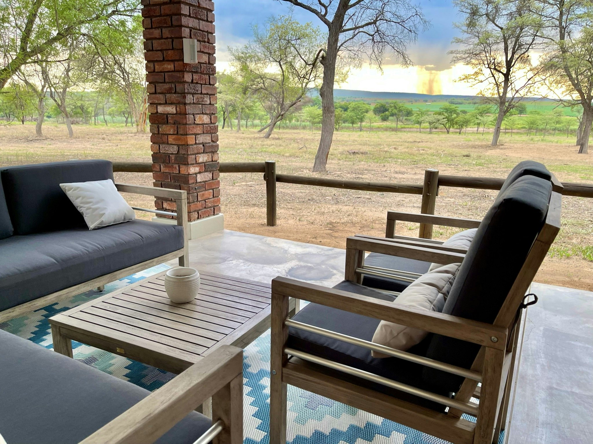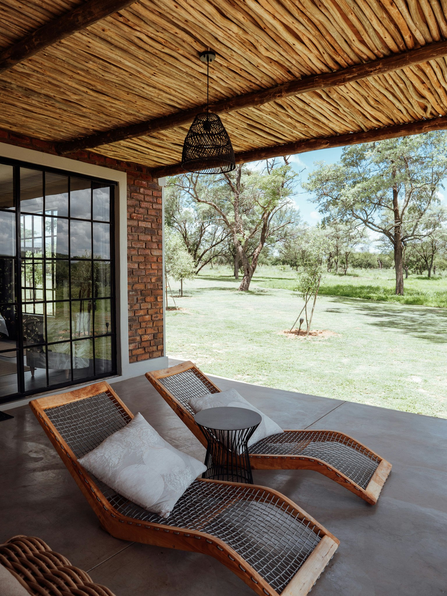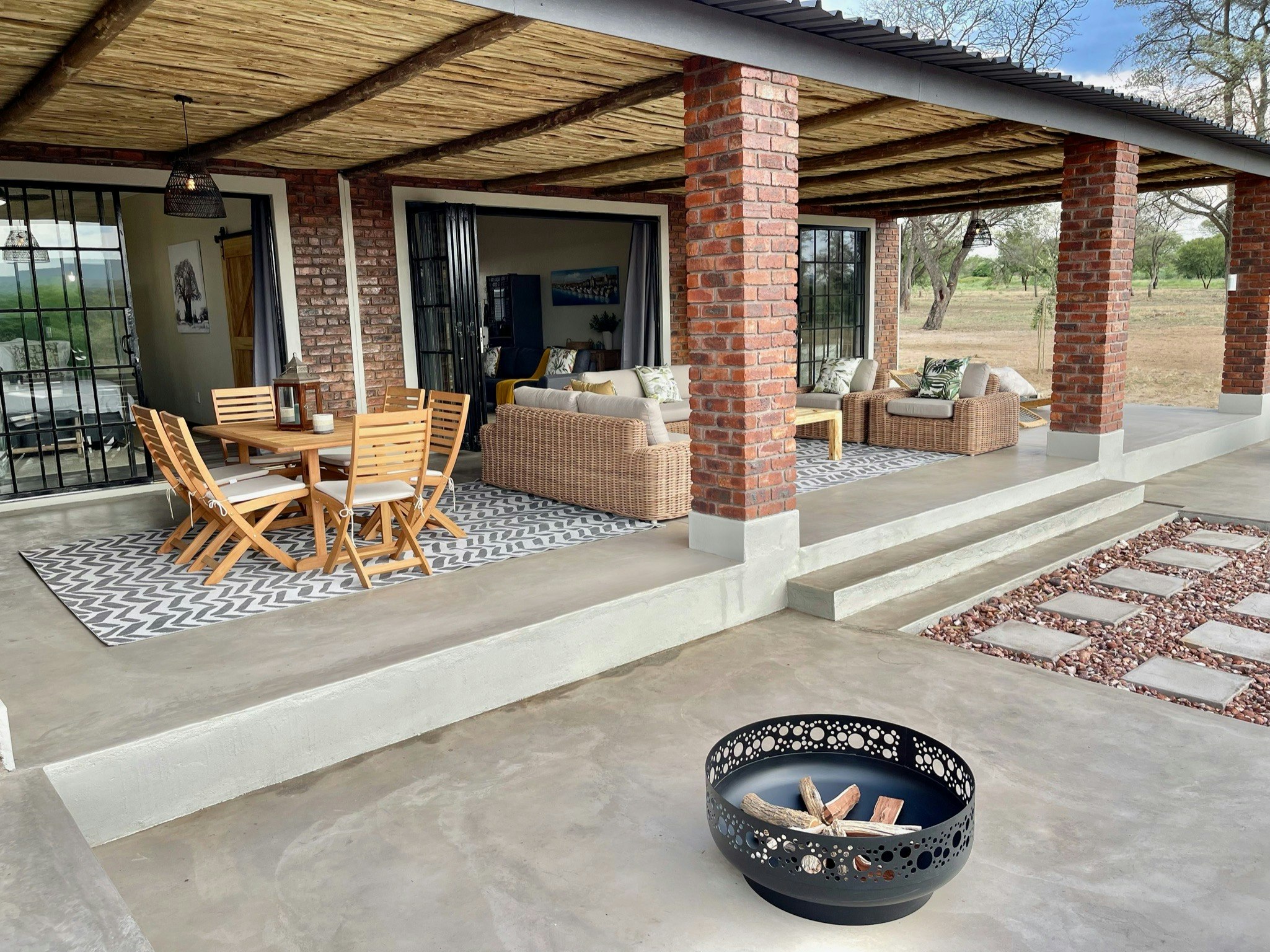 Elke kothuis beskik oor 'n volledig toegeruste kombuis met 'n yskas, stoof en mikrogolfoond. Sommige eenhede is verder toegerus met ekstras soos 'n filterkoffiemasjien of 'n lugbraaier. Die kothuise sluit ook 'n gemaklike leefarea met lugversorging en 'n privaat patio met braaigeriewe in, waar gaste die rustige bosveld-omgewing kan geniet.