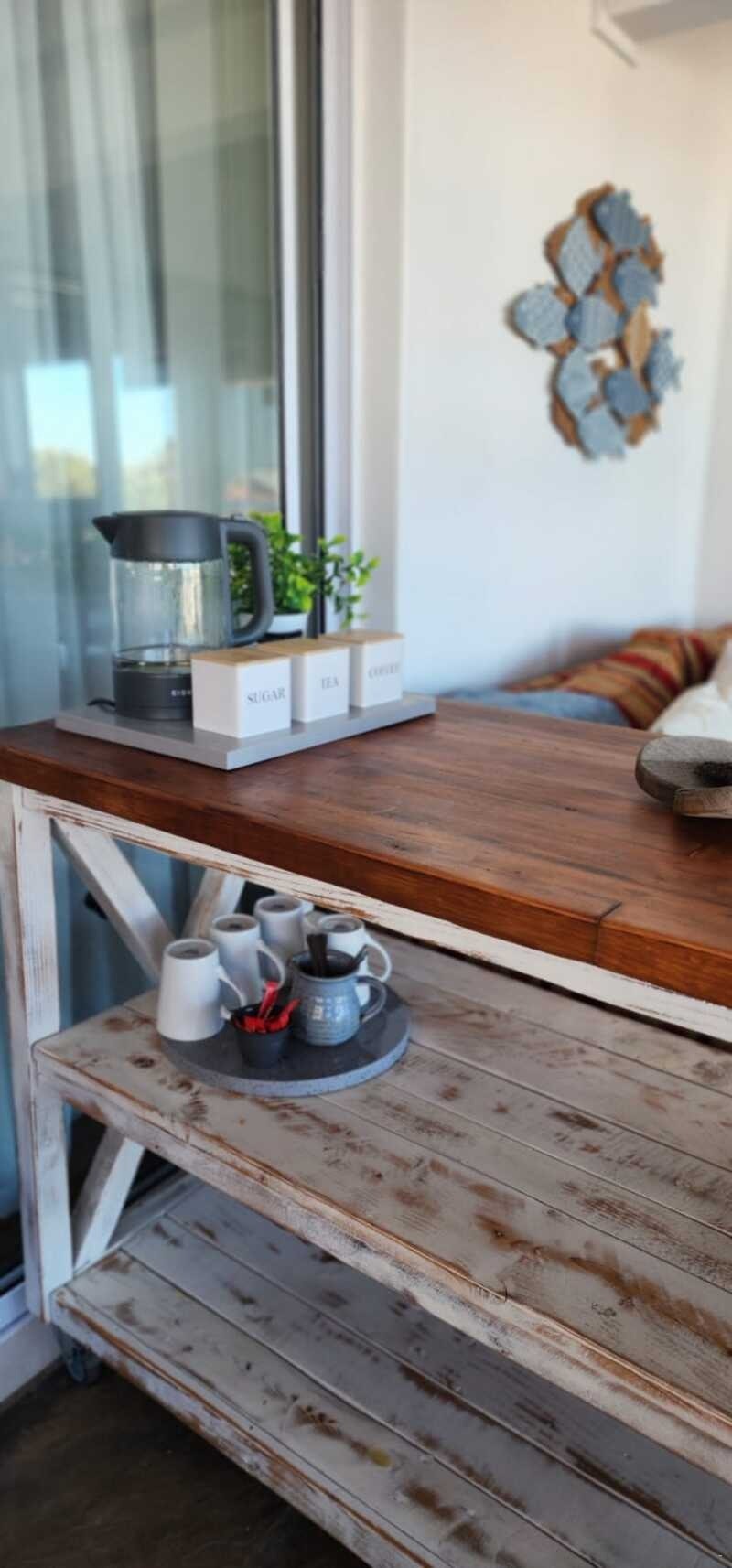 Die oopplan-leefarea en -kombuisarea is toegerus vir selfsorg met 'n yskas, mikrogolfoond, induksie-kookplaat en lugbraaier. Die eetkamertafel bied sitplek vir 4 gaste, en die patio bied 'n perfekte plek om braai-aande te geniet terwyl jy die see-uitsigte inneem. Veilige parkering is beskikbaar, en gaste moet daarop let dat daar trappe is wat na die ingang lei.