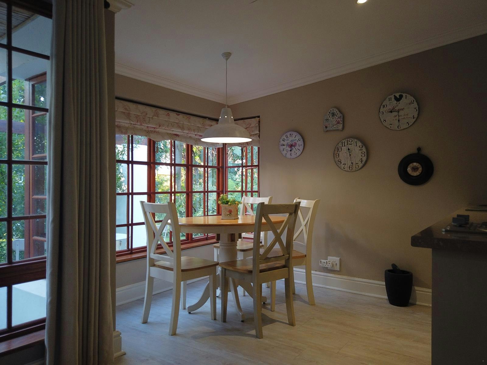 Gaste kan ons tuinkamer geniet met 'n onderdakbraai-area en sitplek. Vir 'n gesellige atmosfeer is daar 'n vuurput waar gaste saans kan bymekaarkom. Die groot, pragtig versorgde tuin beskik ook oor 'n speelarea vir kinders sowel as 'n trampolien.