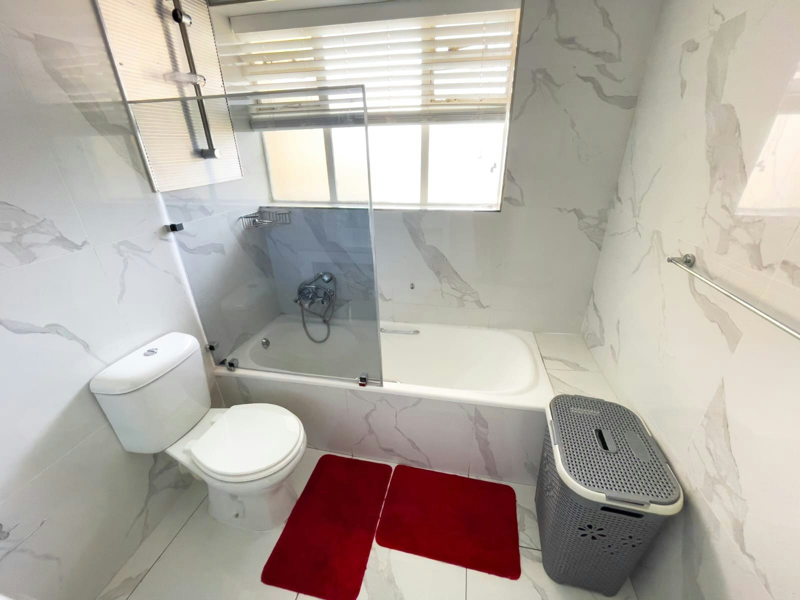 The apartment comprises 2 bedrooms, 2 bathrooms, a kitchen, and an open-plan lounge and dining area. Each bedroom is furnished with a luxurious queen-size bed. Both bath and shower facilities are available. The kitchen is fully equipped with a fridge, oven, stove, dishwasher, coffee machine, microwave, as well as an air fryer.
