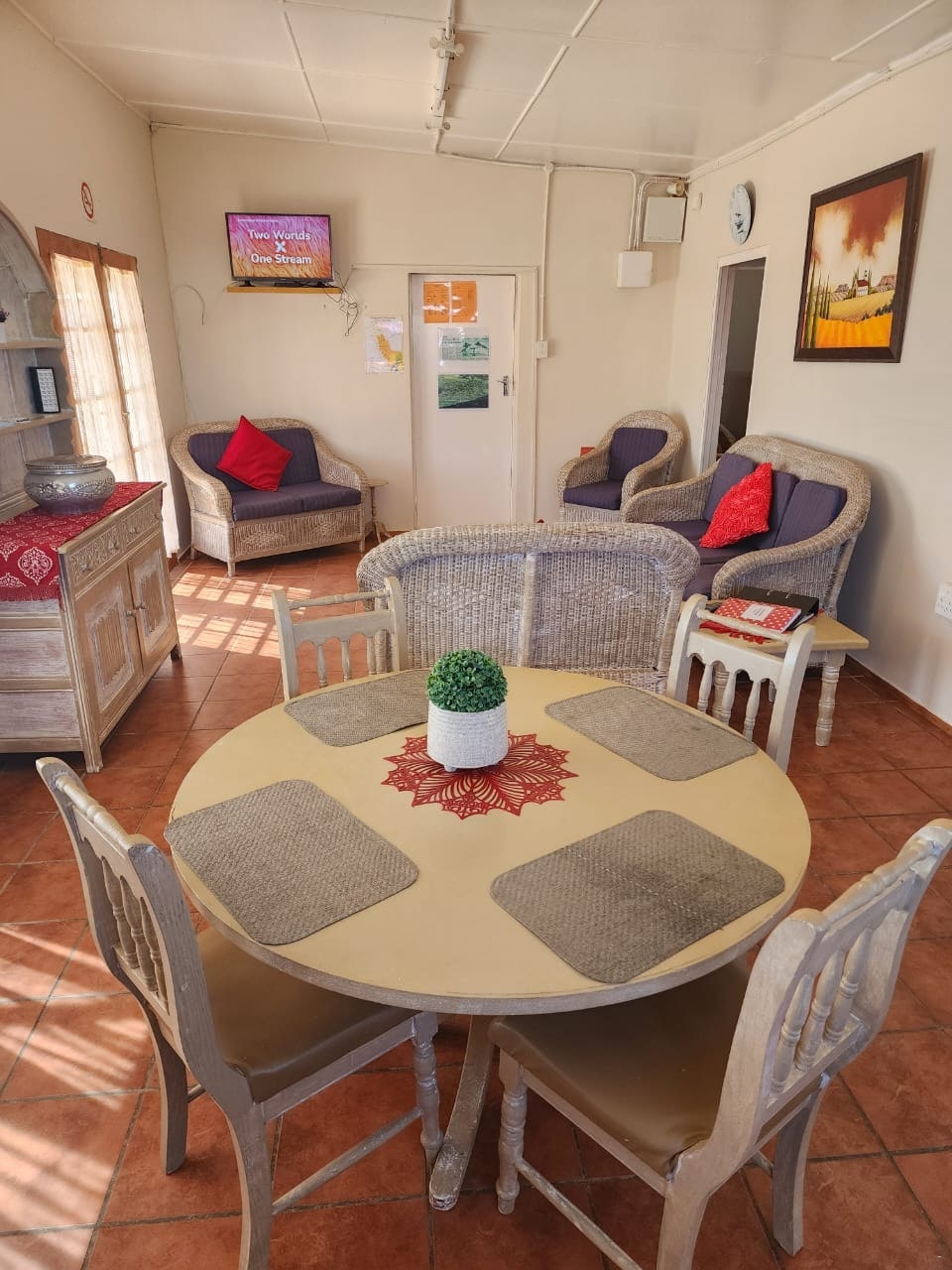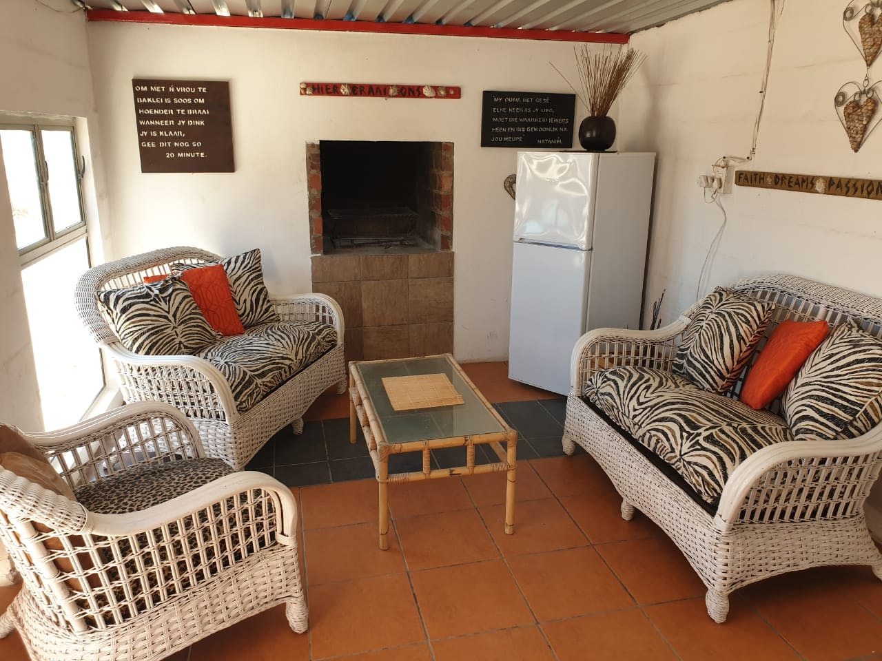 Gaste kan 'n skemerkelkie op die stoep geniet terwyl hulle die pragtige sonsondergang aanskou. Daar is 2 groot bomas by die kampeerarea. Daar is 'n gemeenskaplike eetkamer waar 'n warm ontbyt teen 'n ekstra koste genuttig kan word.