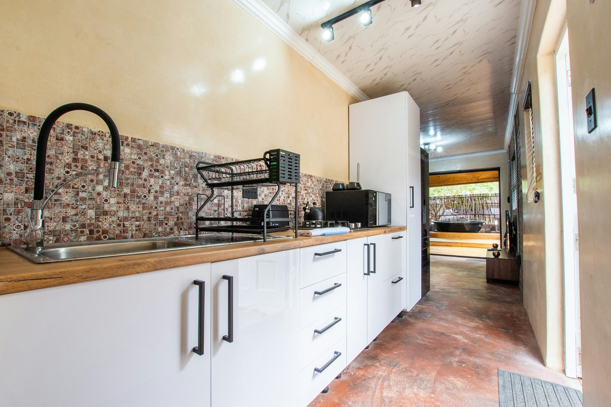 Verblyf word in 2 hutte met slaapplek vir 2 gaste elk aangebied. Elke hut het 'n koninggrootte-bed, 'n buitestort en 'n kombuisie met 'n mikrogolfoond, yskas en tee- en koffiemaakgeriewe. Elke hut het 'n Kol-Kol-warmbad op die dek.