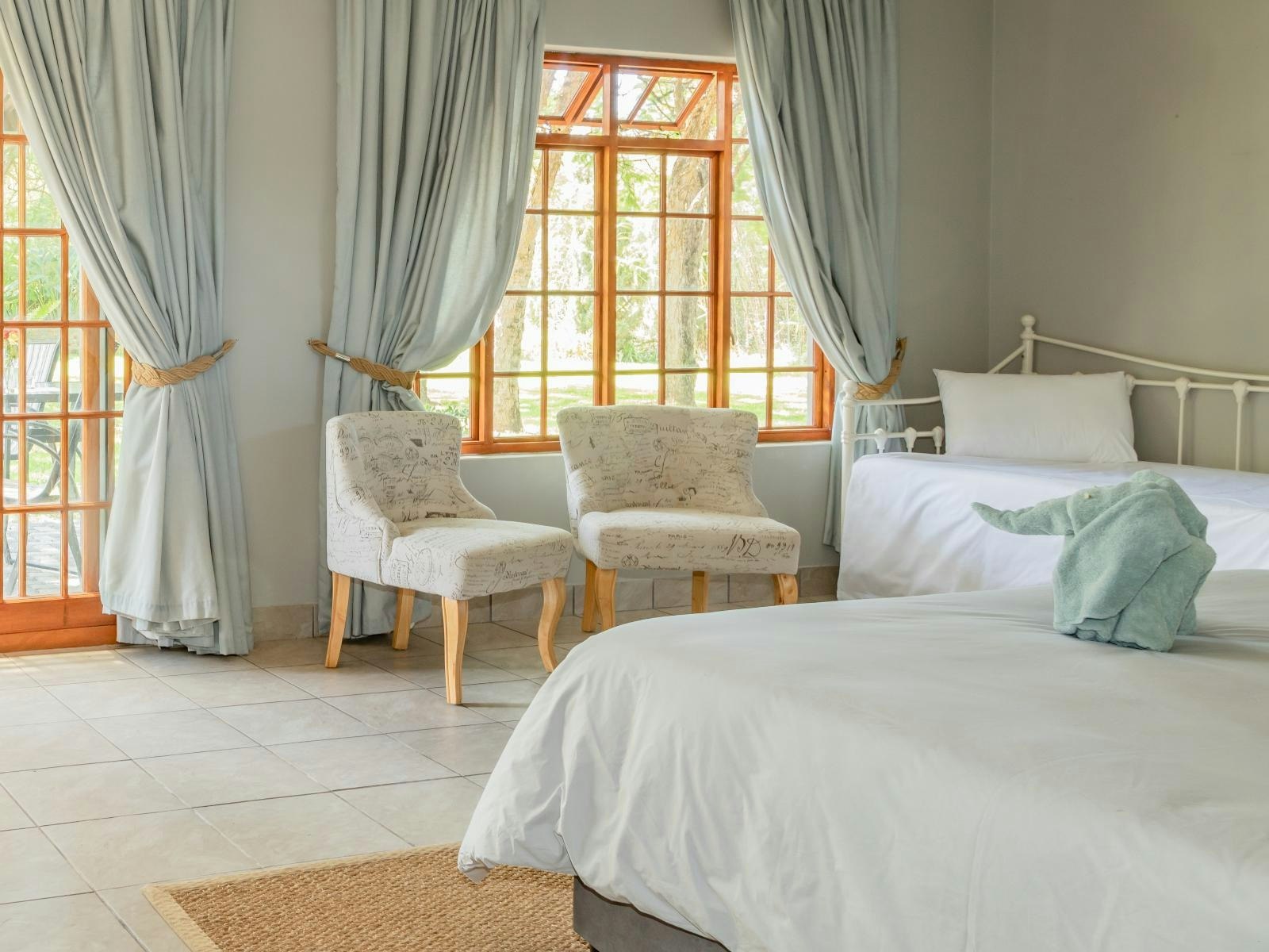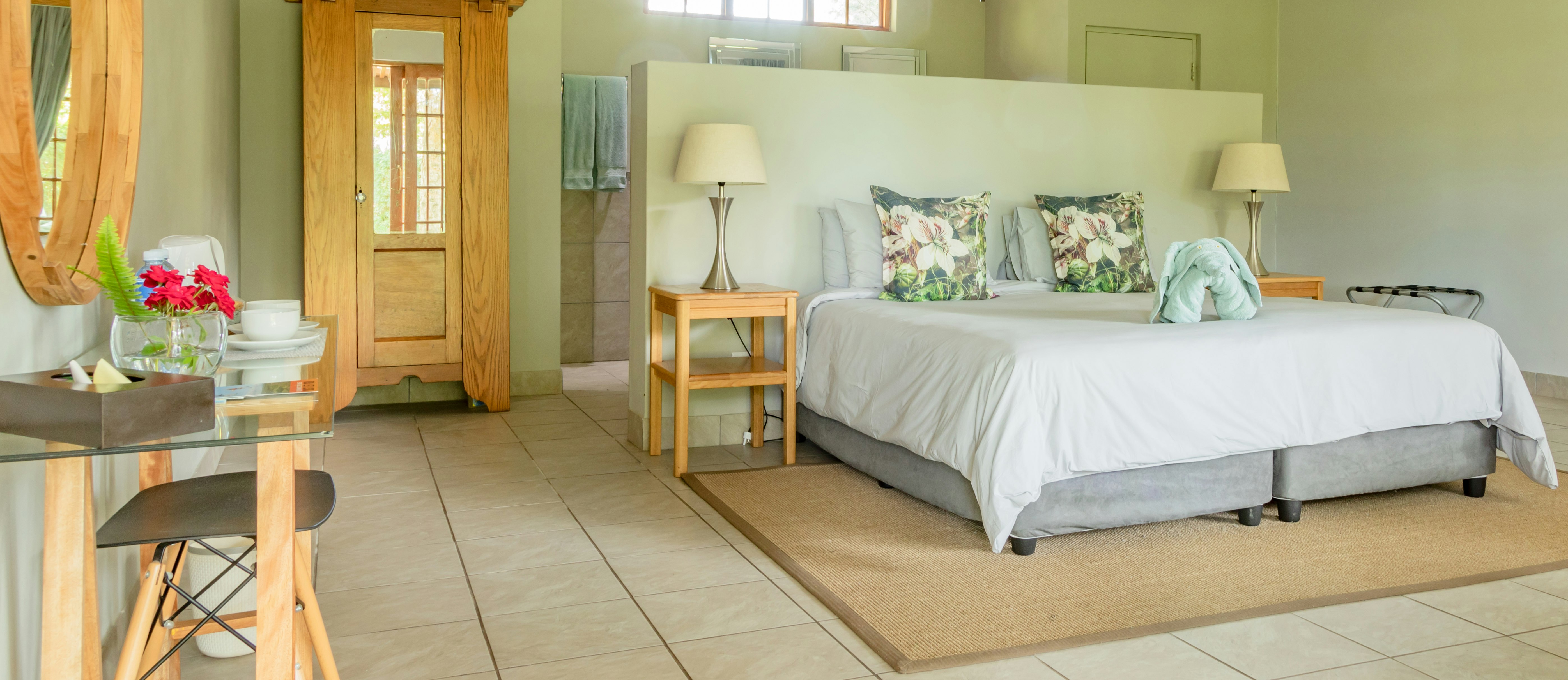 Verblyf word in 9 kamers met lugversorging in 'n tuin gebied. Elke kamer het 'n en suite-badkamer met 'n bad, 'n stort of albei. Die kamers het gemaklike koninggrootte-beddens of 2 enkelbeddens, gehaltelinne en privaat stoepe met pragtige tuin-uitsigte. Elke kamer is met 'n kluis, haardroër, toiletware, lessenaar en tee- en koffiemaakgeriewe toegerus.