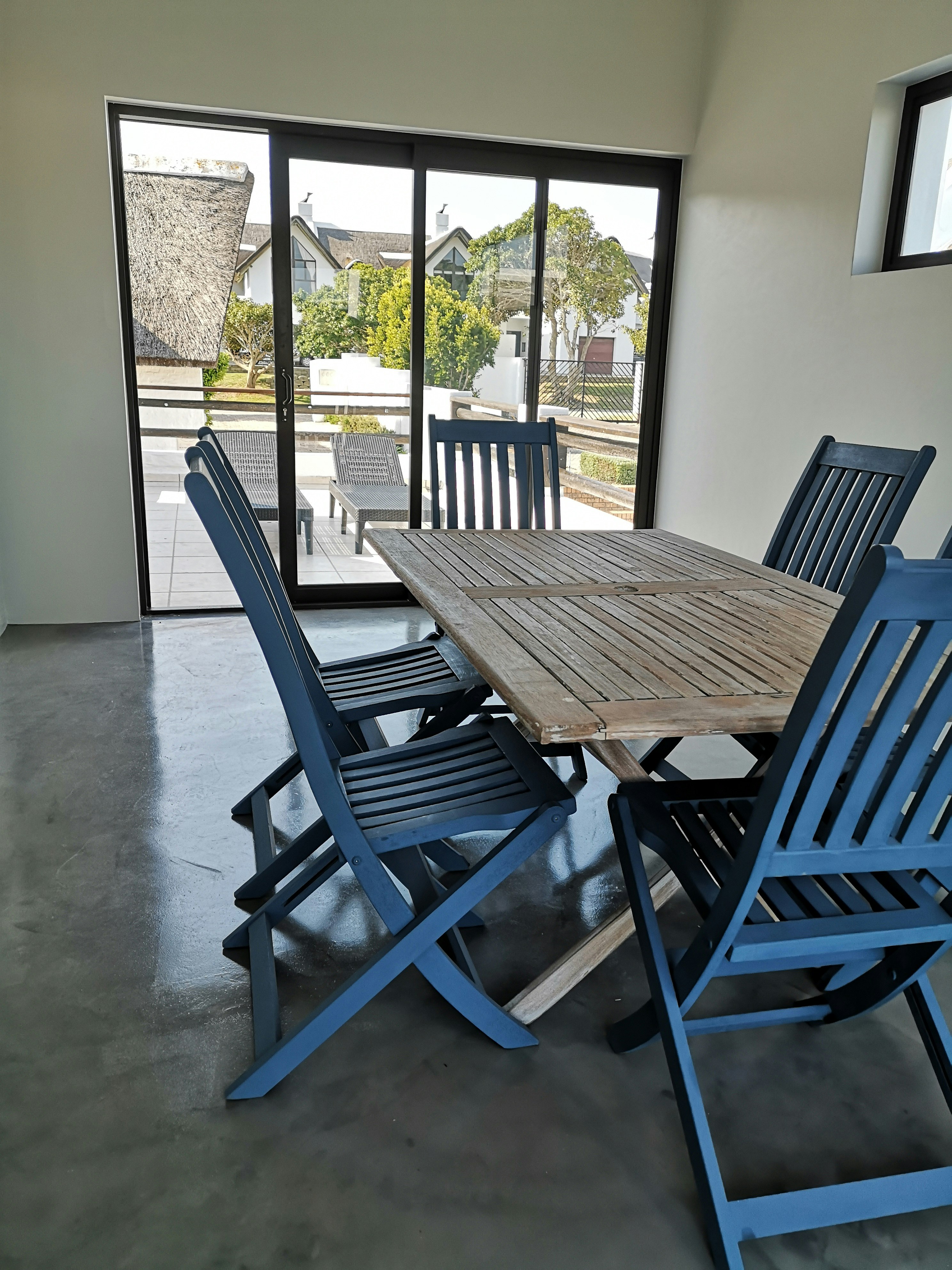 Die kombuis is toegerus met ‘n gaskookplaat, oond, yskas-vrieskas, mikrogolf, eetgerei en breekware. Daar is ook ‘n toonbank met stoele. Die eetarea het sitplek vir 12 en die sitarea het ‘n gemaklike sitkamerstel. ‘n Skuifdeur lei na ‘n tuin met 'n uitsig oor die kanaale. Daar is ook 'n binnekroeg en 'n braai-area.