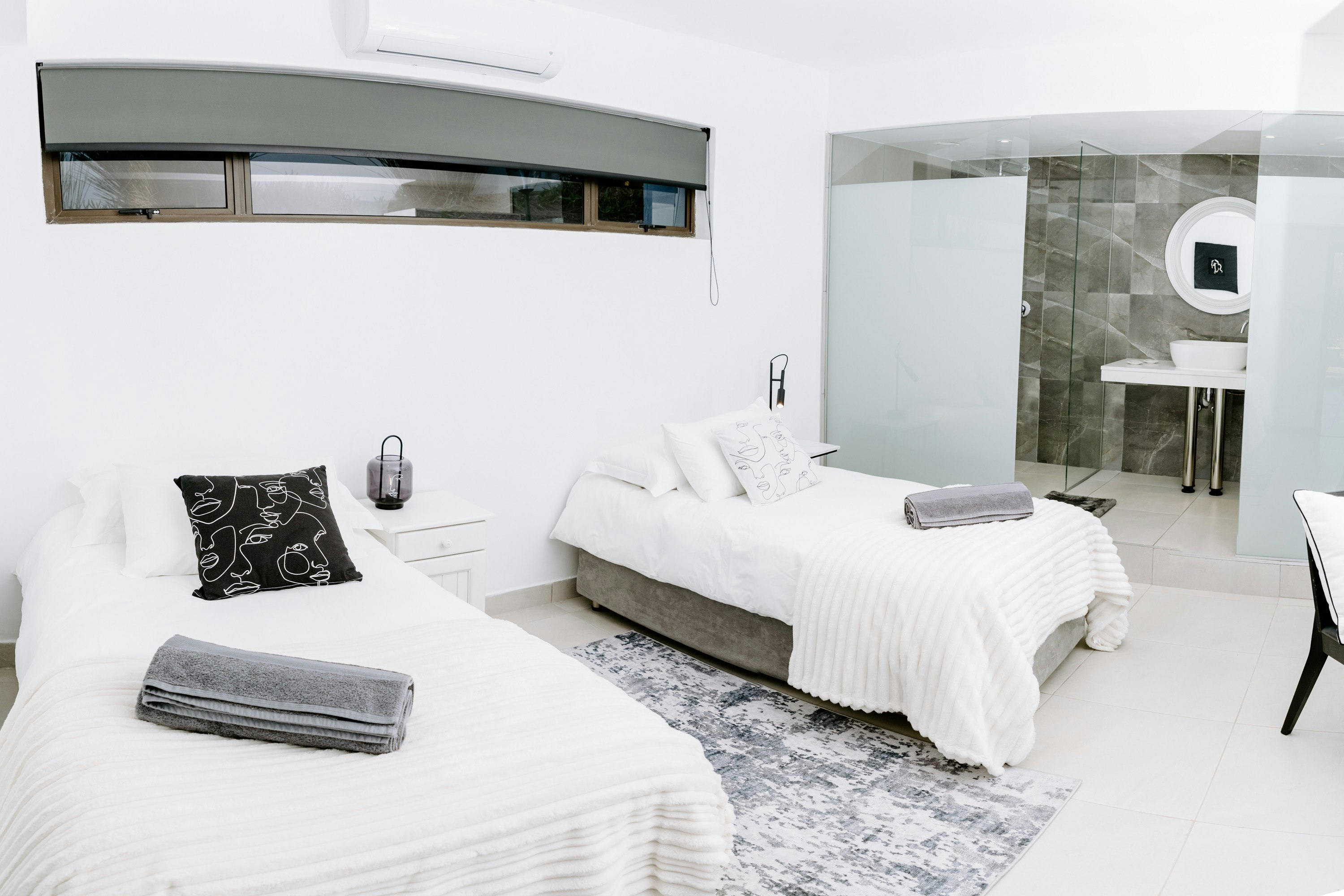 The apartment is located on the lower level of the house and features 2 bedrooms, 2 bathrooms, a kitchen, and a living area. The main bedroom is furnished with twin beds and has an en-suite bathroom with a shower, toilet, and basin. The second bedroom has a king-size bed with an en-suite bathroom. The unit has air conditioning and offers free Wi-Fi.