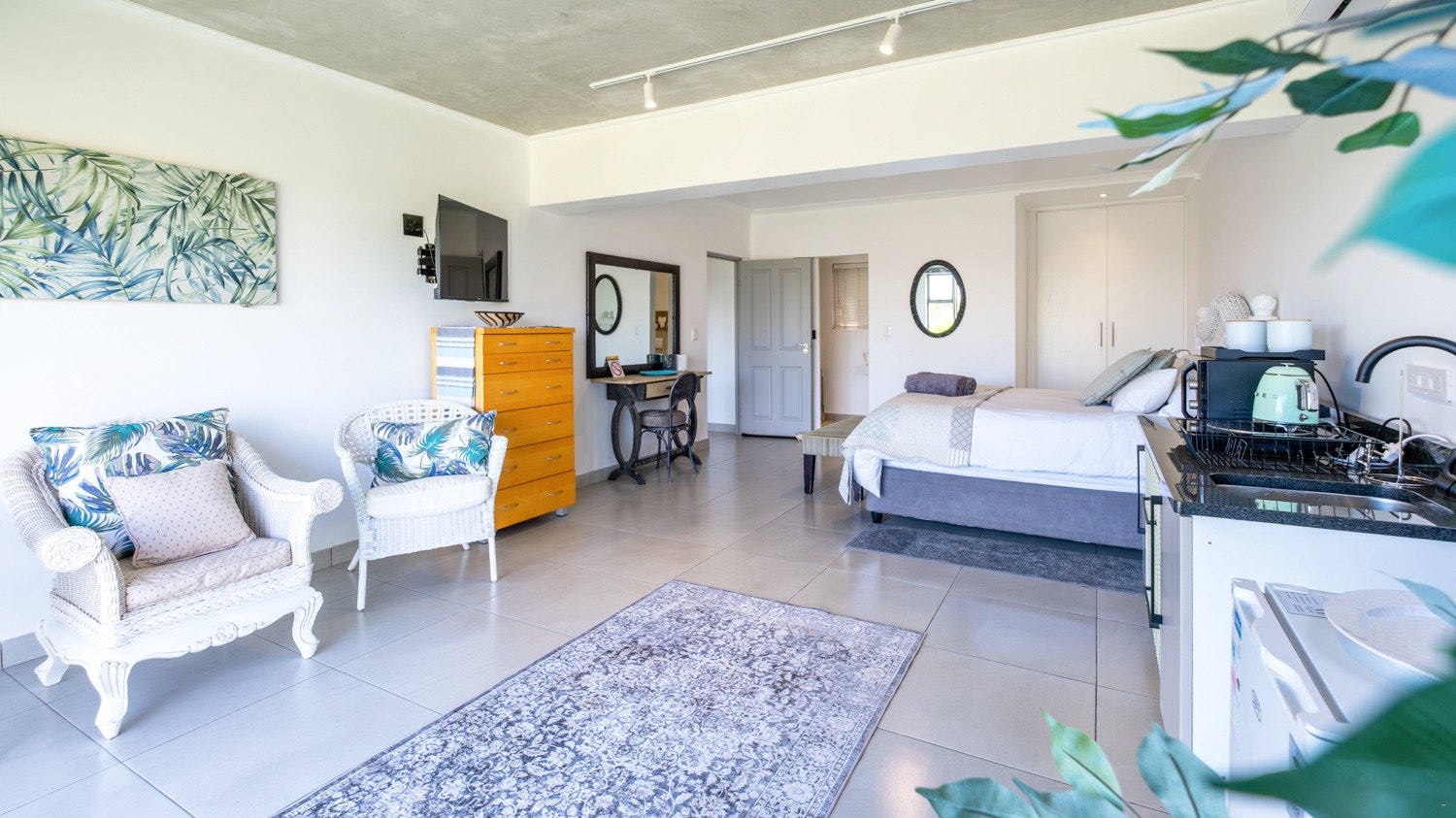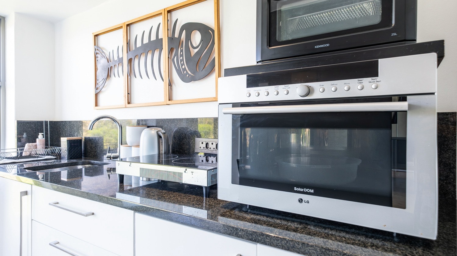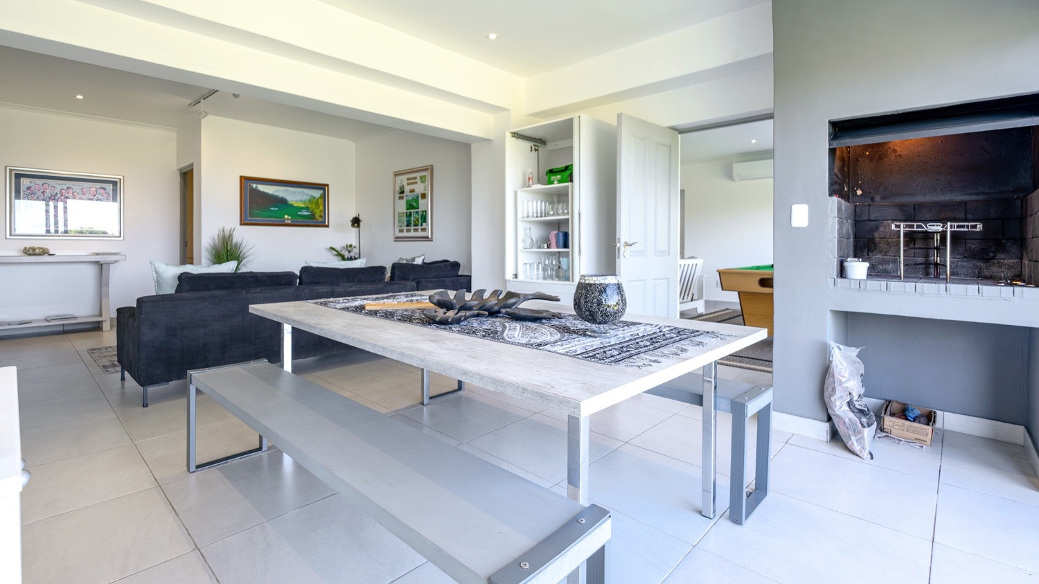 Gaste het toegang tot 'n gemaklike binnenshuise braai-area en 'n aparte sitkamer met 'n dubbelslaapbank en 'n slim-TV. Die kombuis is toegerus met 'n yskas-vrieskas, induksie-kookplaat, konveksie-oond, skottelgoedwasser, mikrogolfoond, eetgerei en breekware, sowel as tee- en koffiemaakgeriewe.