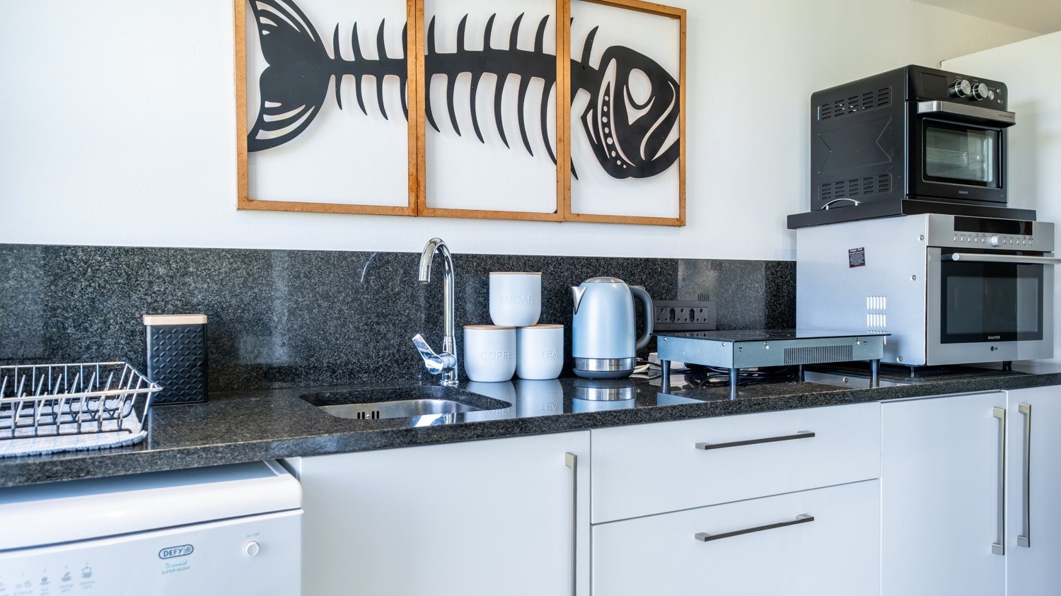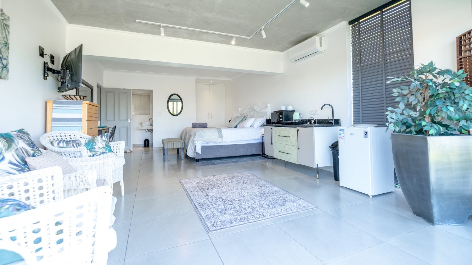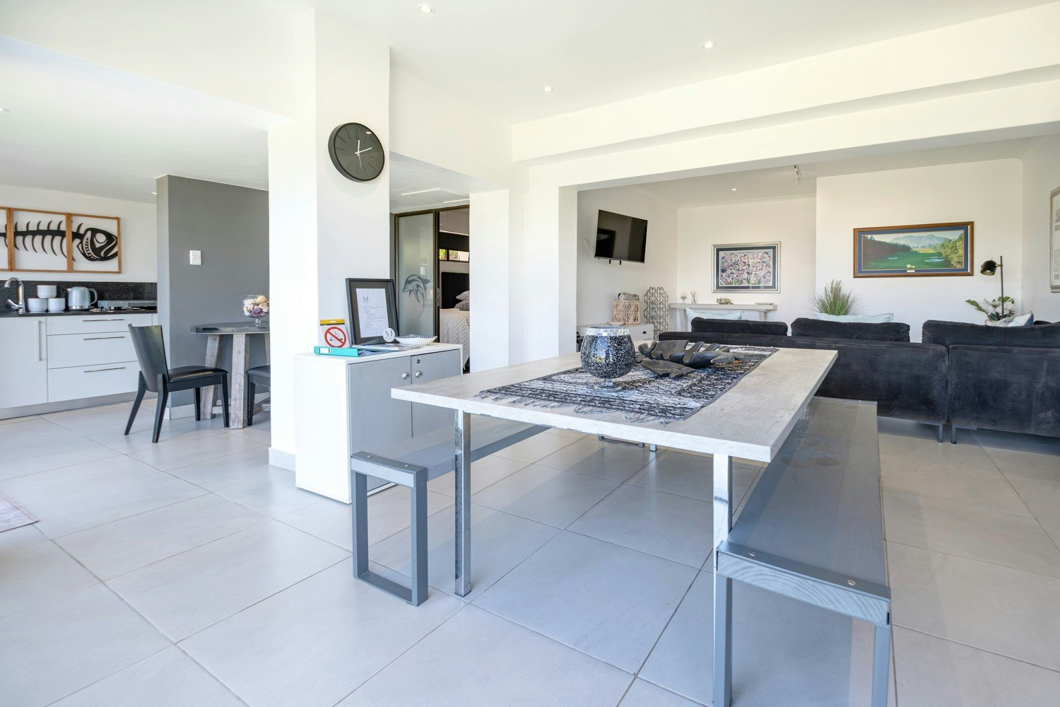 Gaste het toegang tot 'n gemaklike binnenshuise braai-area en 'n aparte sitkamer met 'n dubbelslaapbank en 'n slim-TV. Die kombuis is toegerus met 'n yskas-vrieskas, induksie-kookplaat, konveksie-oond, skottelgoedwasser, mikrogolfoond, eetgerei en breekware, sowel as tee- en koffiemaakgeriewe.