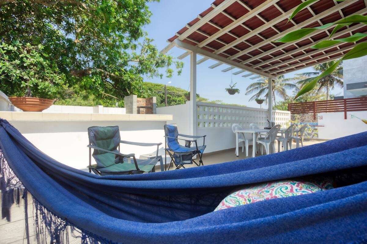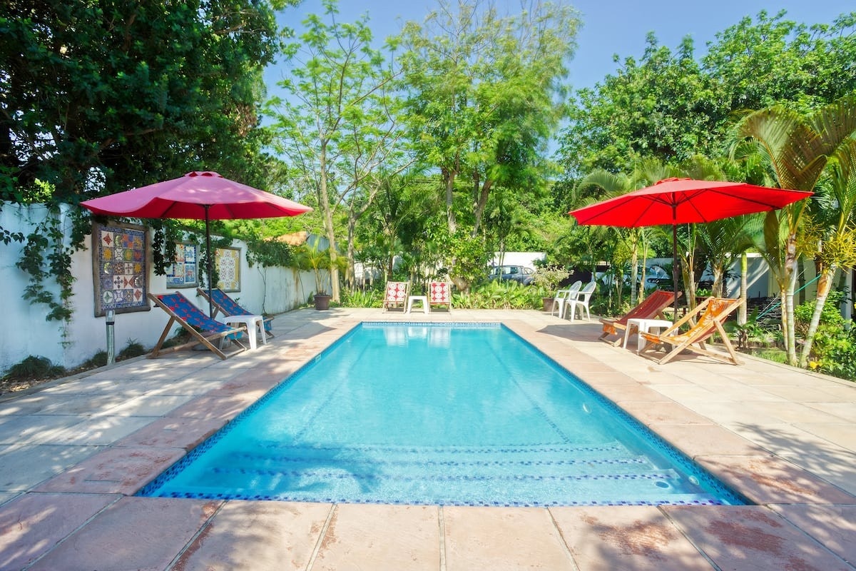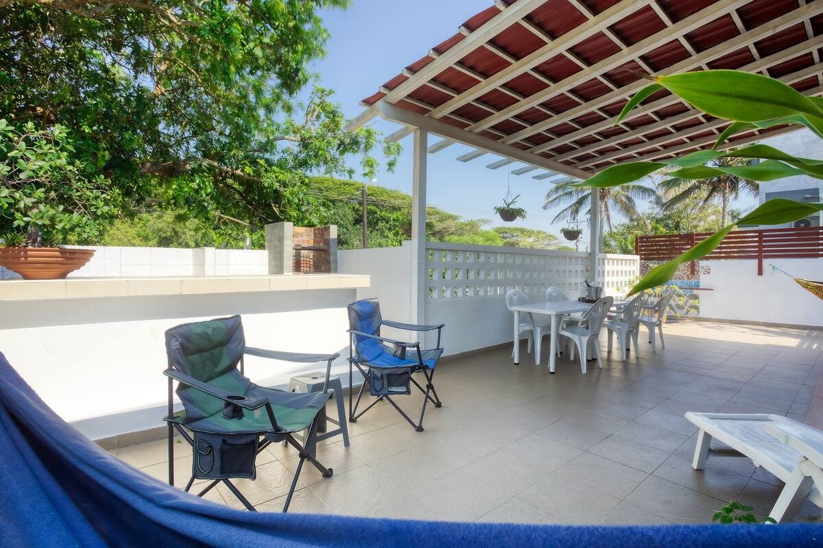 Buite kan gaste ontspan op die oordekte patio met buitemeubels en braaigeriewe of gebruik maak van die aanloklike swembad. Of jy nou die son op die strand geniet, die lewendige plaaslike markte verken, of na 'n dag van avontuur ontspan, Ilha Azul bied die ideale mengsel van gemak, rustigheid en kus-sjarme. Veilige parkering is beskikbaar.