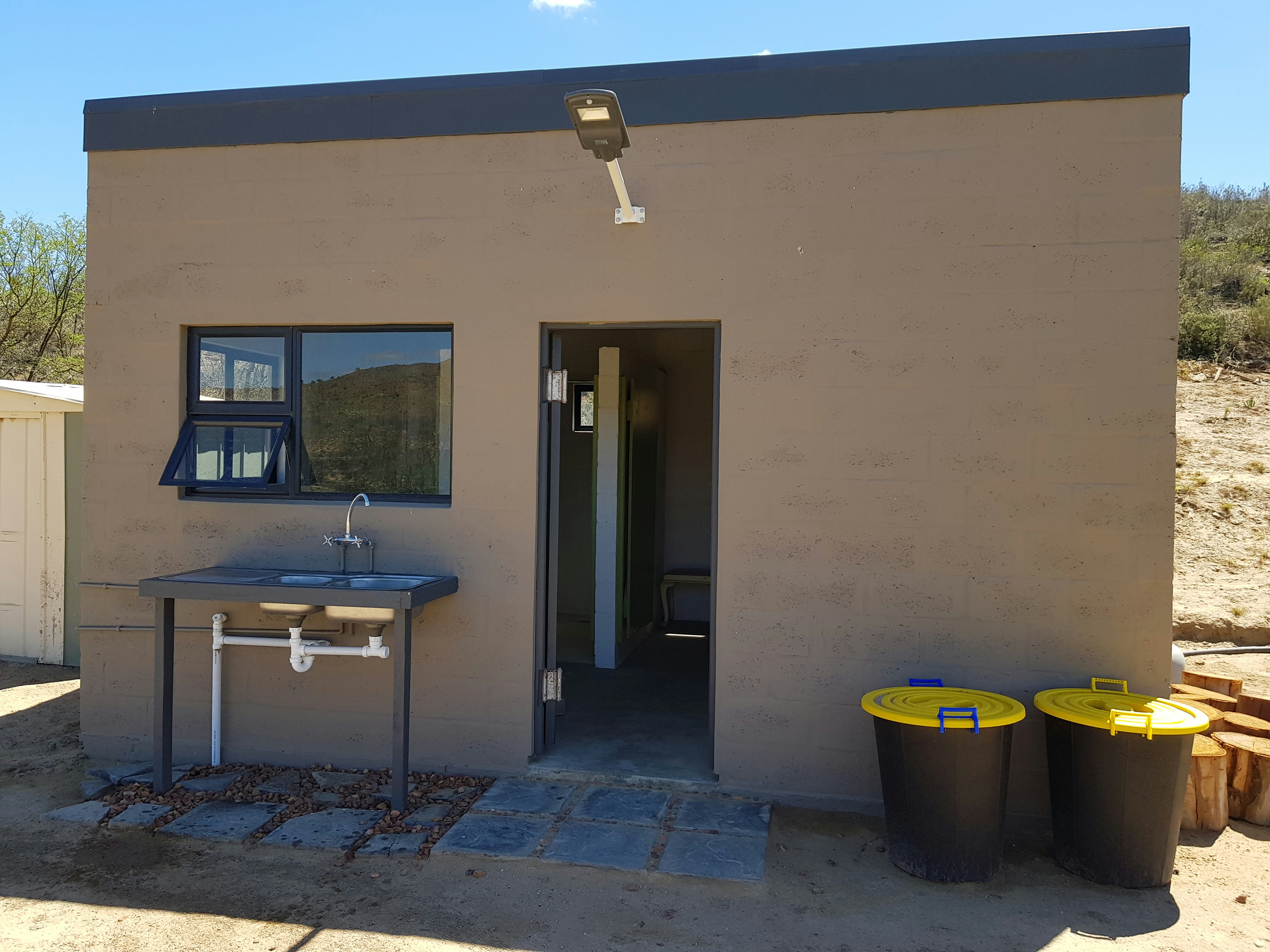 Daar is 9 ruim kampeerplekke met toegang tot ablusiegeriewe met storte en toilette wat deur mans en vroue gedeel word. Elke kampeerplek het draagbare braaigeriewe. Gaste is welkom om van die gemeenskaplike swembad op die plaas gebruik te maak.