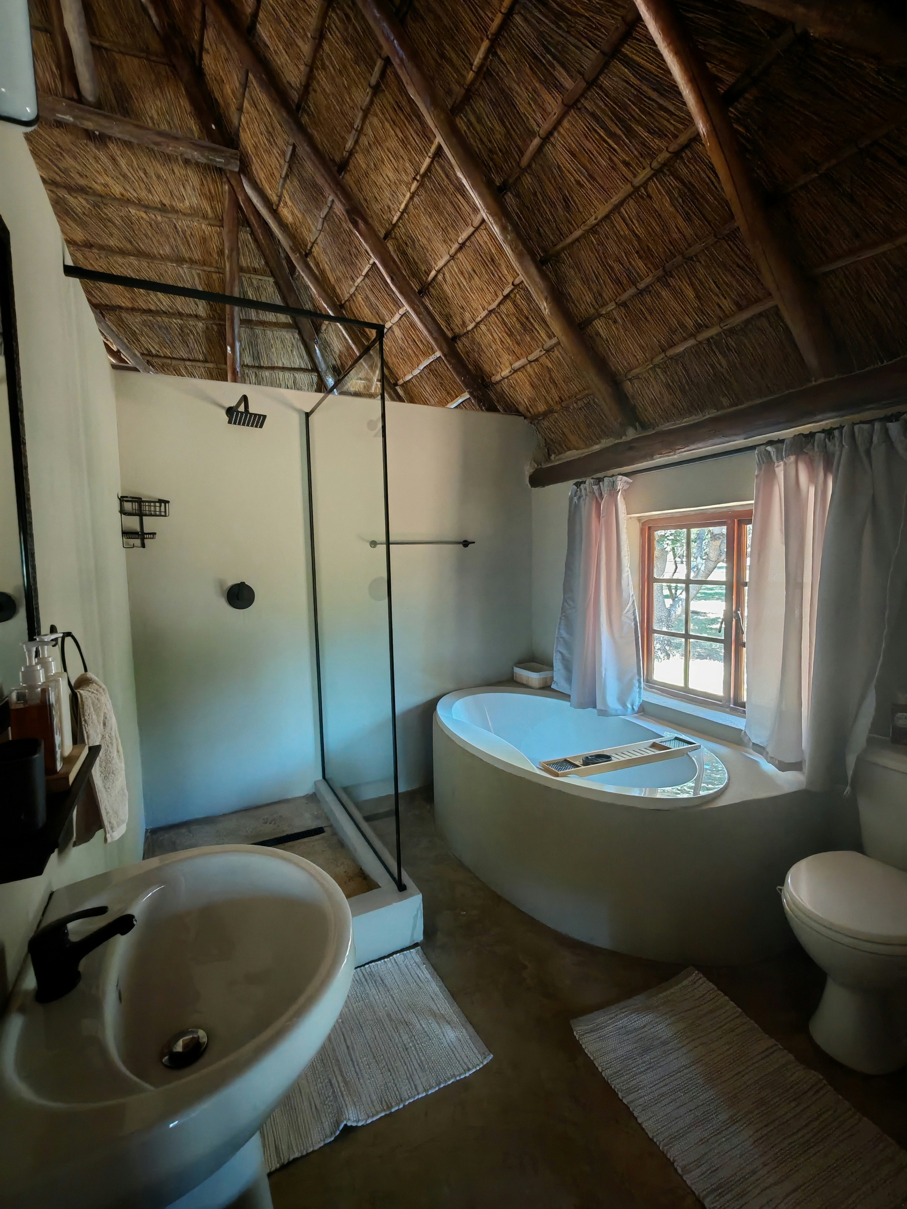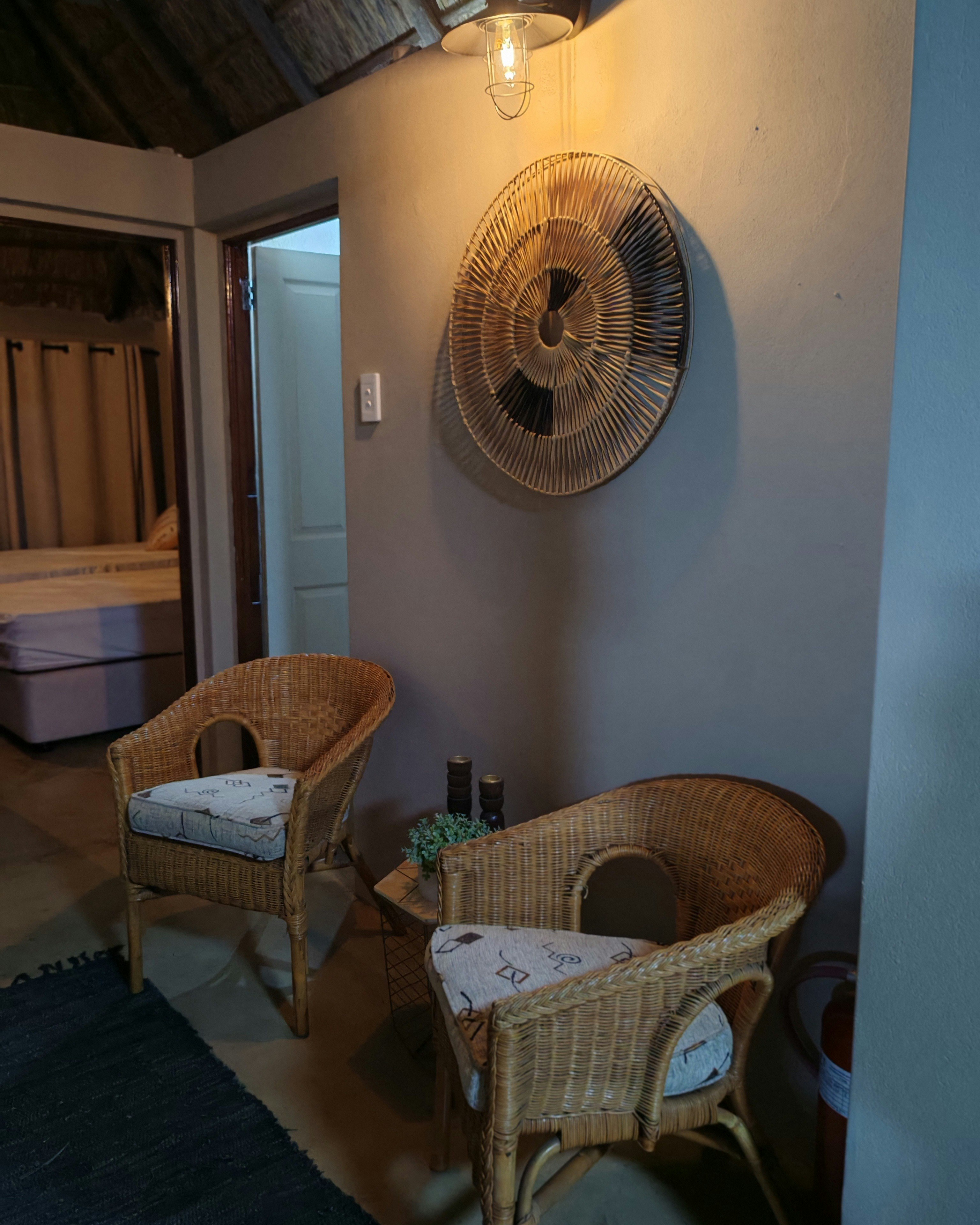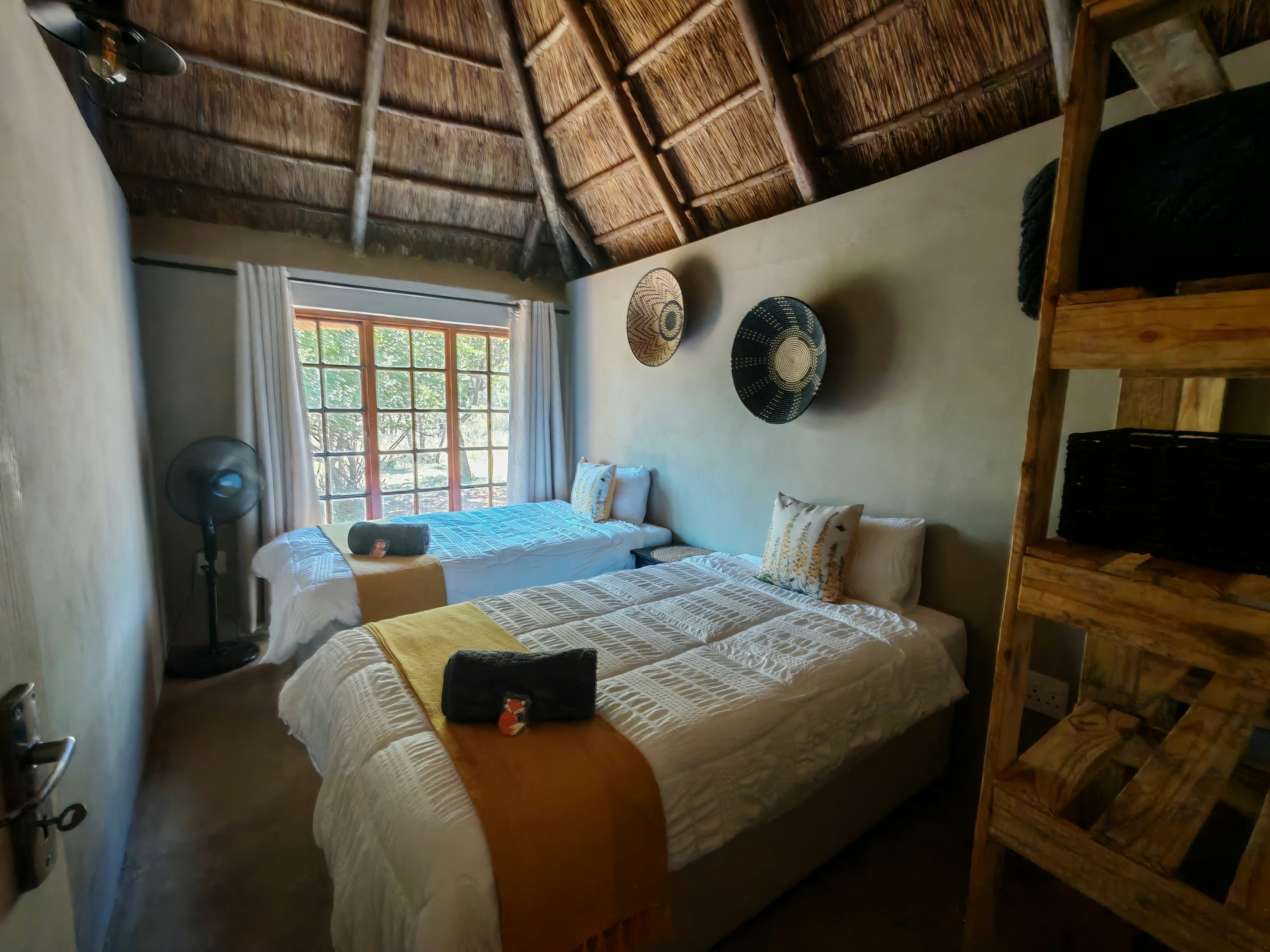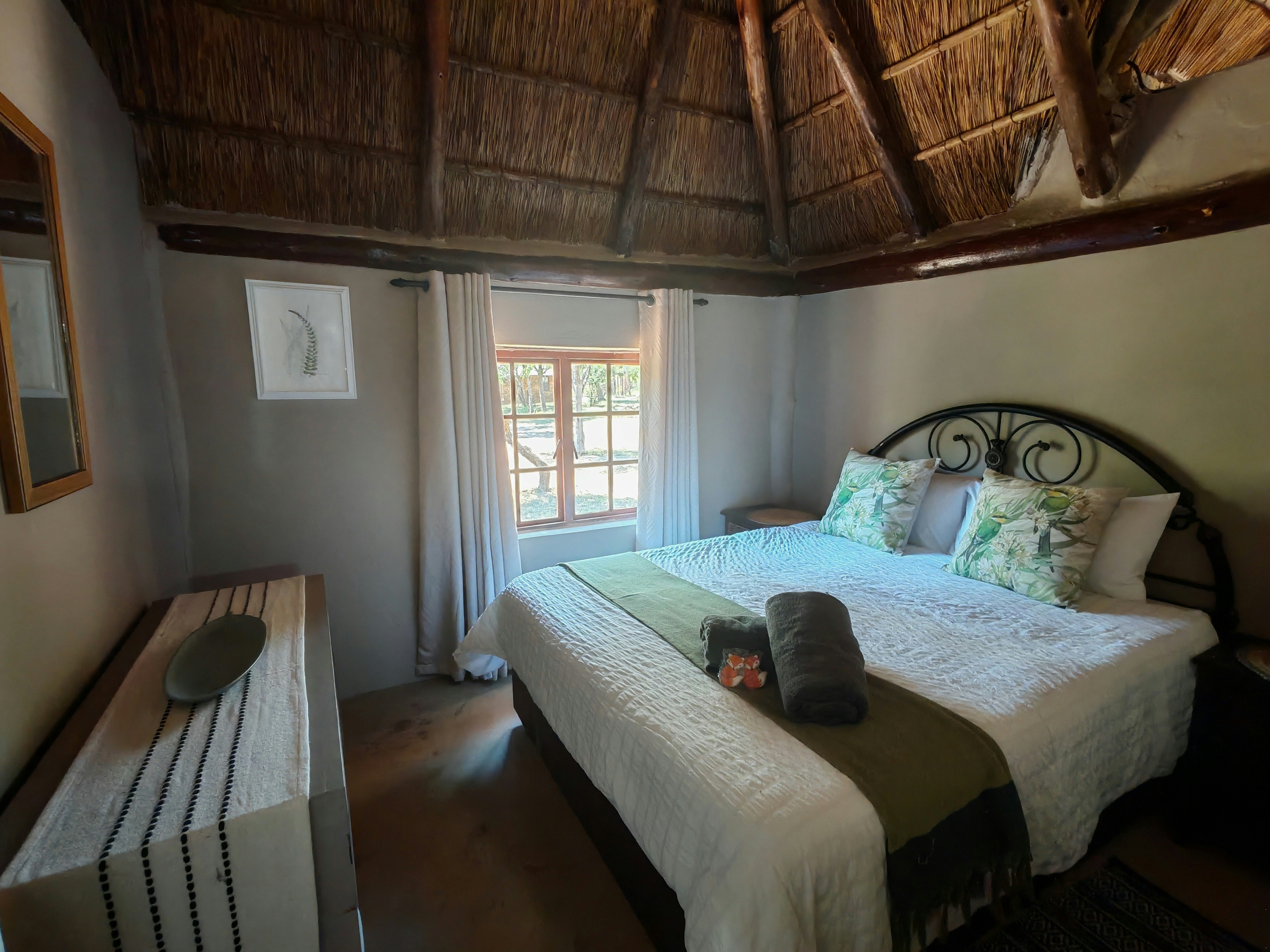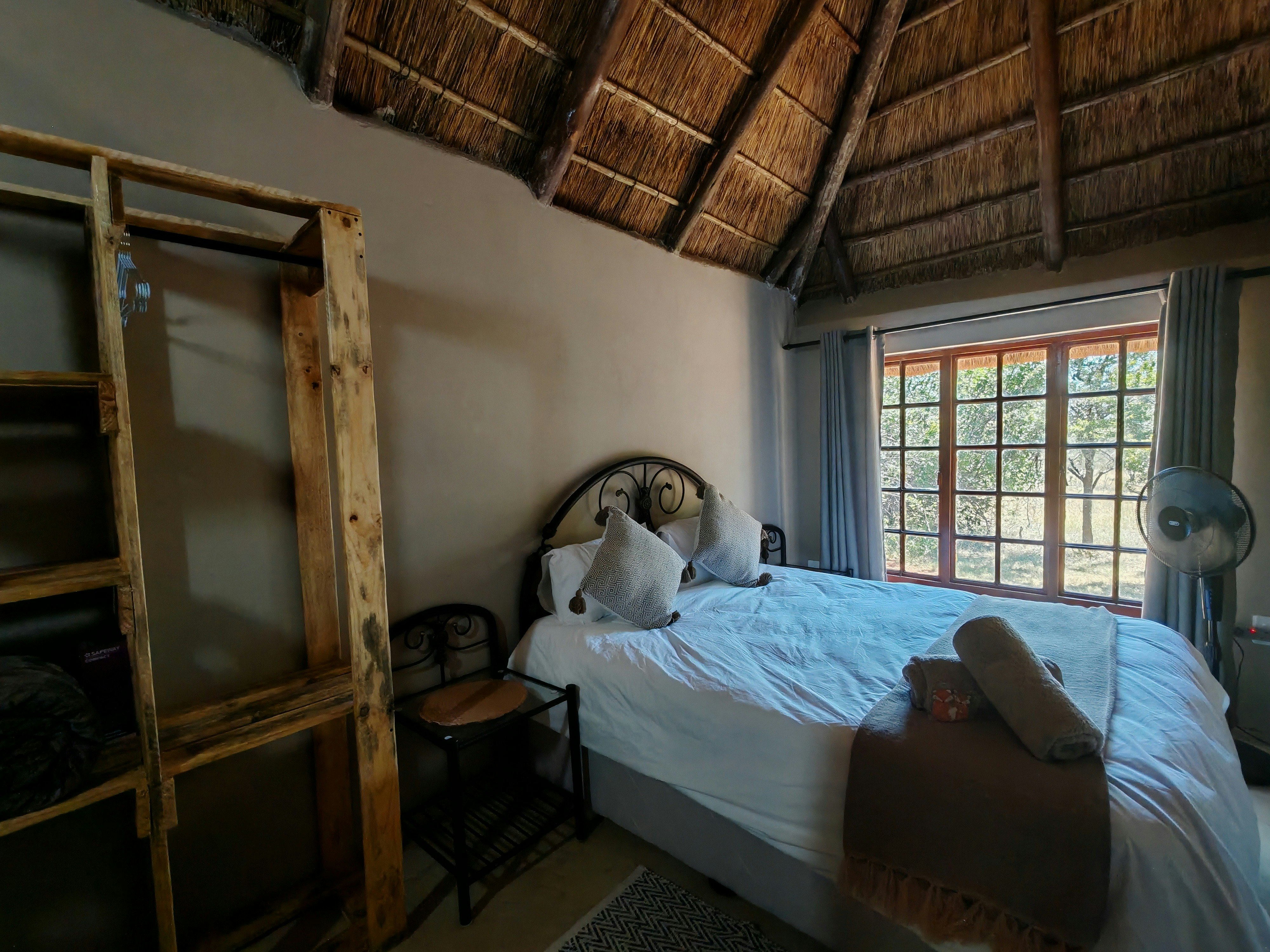Lodge Huis: twee slaapkamers beide met ensuite vol badkamers, hoof slaapkamer het koninging grootte bed en twee driekwart beddens, tweede slaapkamer het koninging bed, oopplan sit-kombuis area, gas stoof met oond, heerlike kuier stoep met boma braai area, privaat swembad. Onderdak parkering.