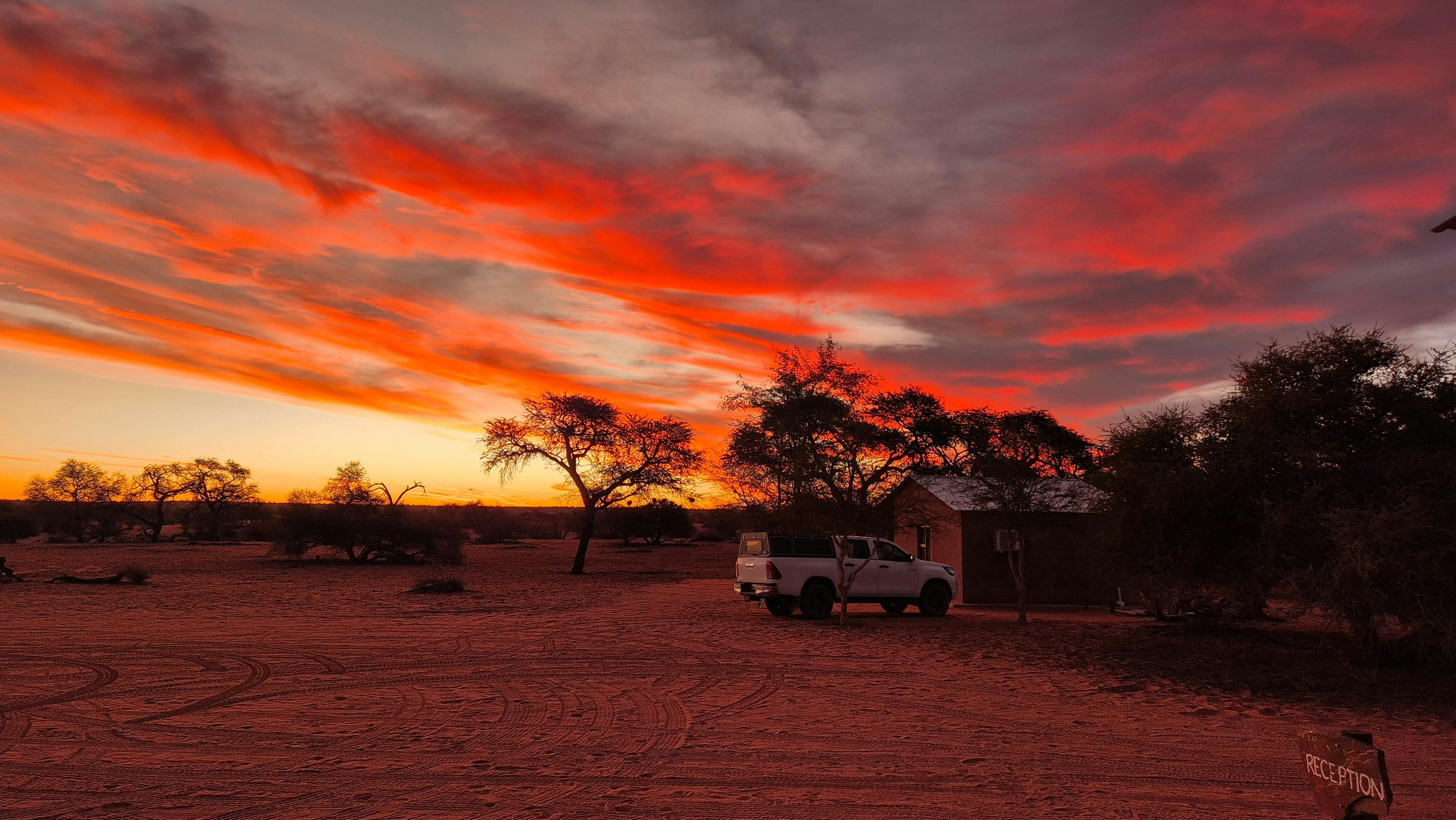 By Jansen Kalahari Guest Farm kan gaste die uitgestrekte landskap met ‘n uitsig oor die sandduine tussen die verspreide kameeldoringbome in die Kalahariwoestyn geniet.
