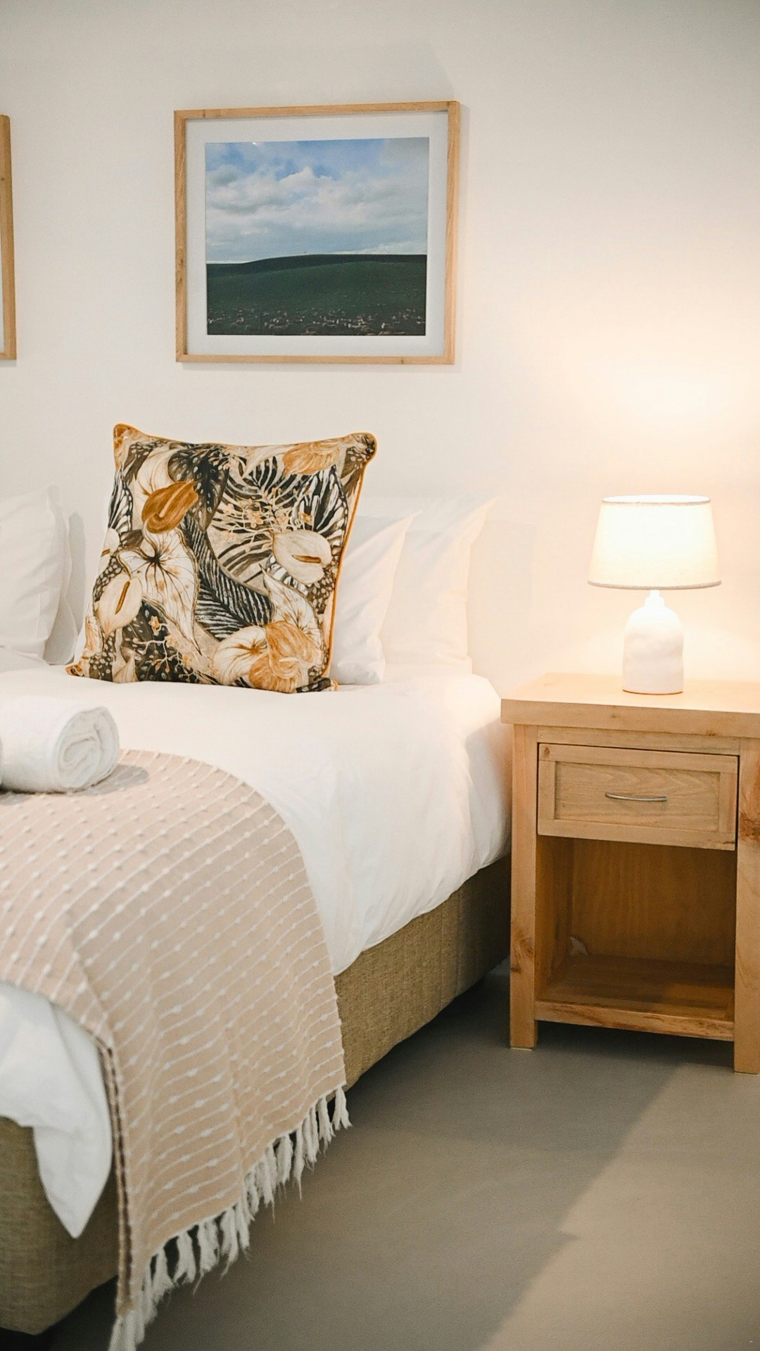 Die kothuis bied slaapplek vir tot 4 gaste en bestaan uit 2 slaapkamers en 2 badkamers. Die hoofslaapkamer is gemeubileer met 'n koninggrootte bed, en die en suite-badkamer is toegerus met 'n stort, wasbak en toilet. Die tweede slaapkamer bevat 2 enkelbeddens en het ook 'n en suite-badkamer met 'n stort, wasbak en toilet. Linne en handdoeke word voorsien.
