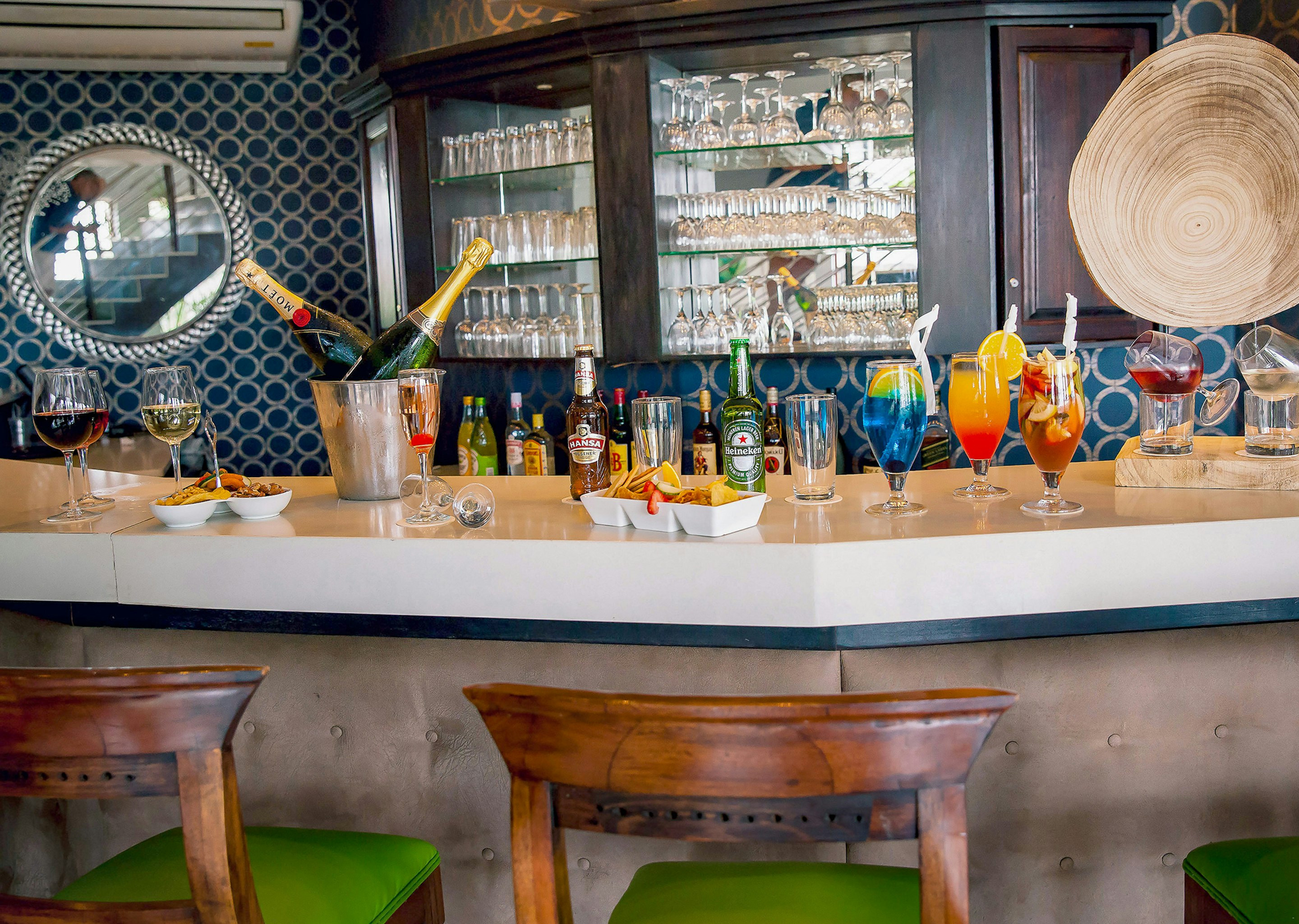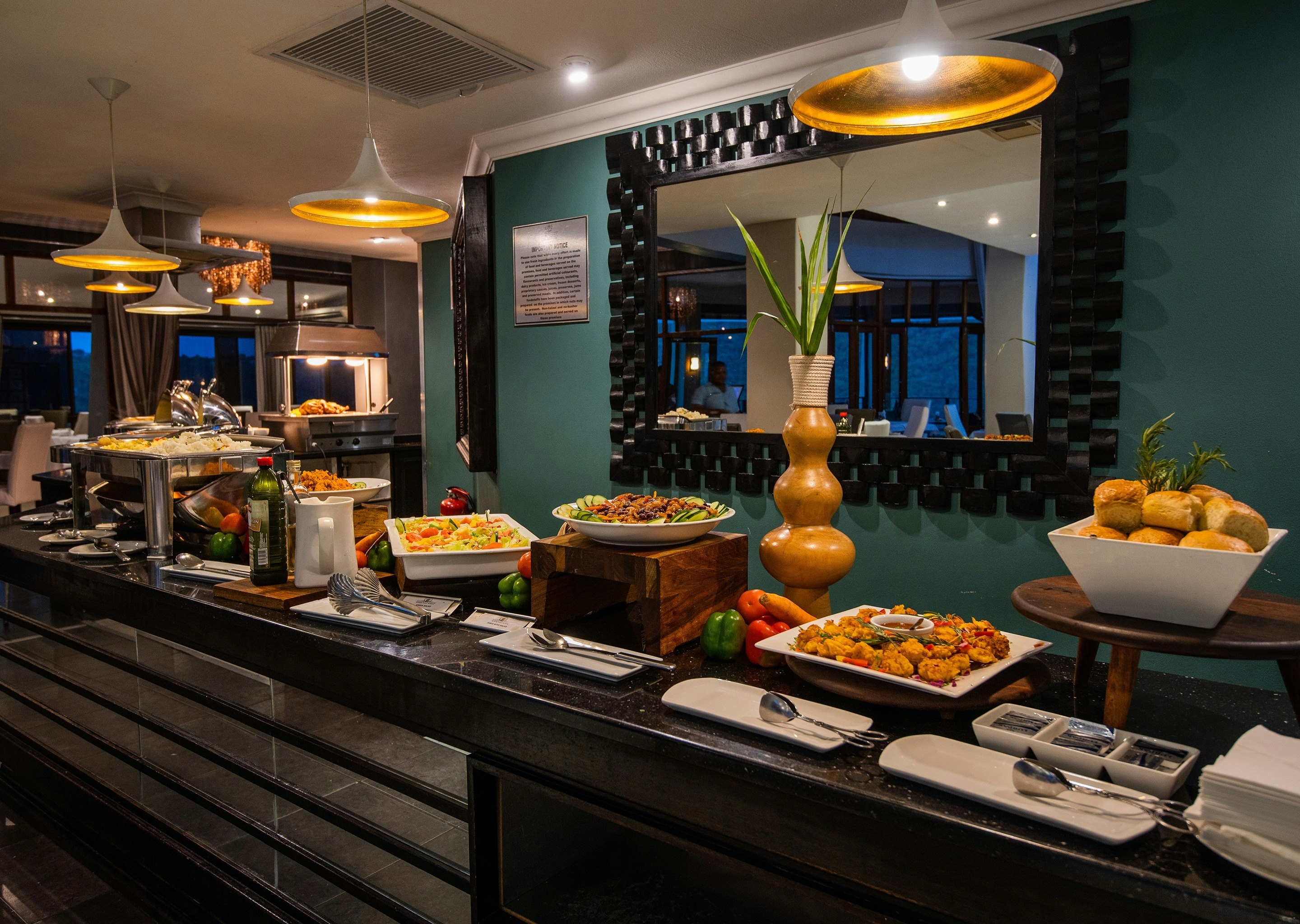 Die restaurant spog met 'n uitgebreide spyskaart en 'n uitstekende uitsig. Die boma-etes buite is wonderlik vir groepe.
