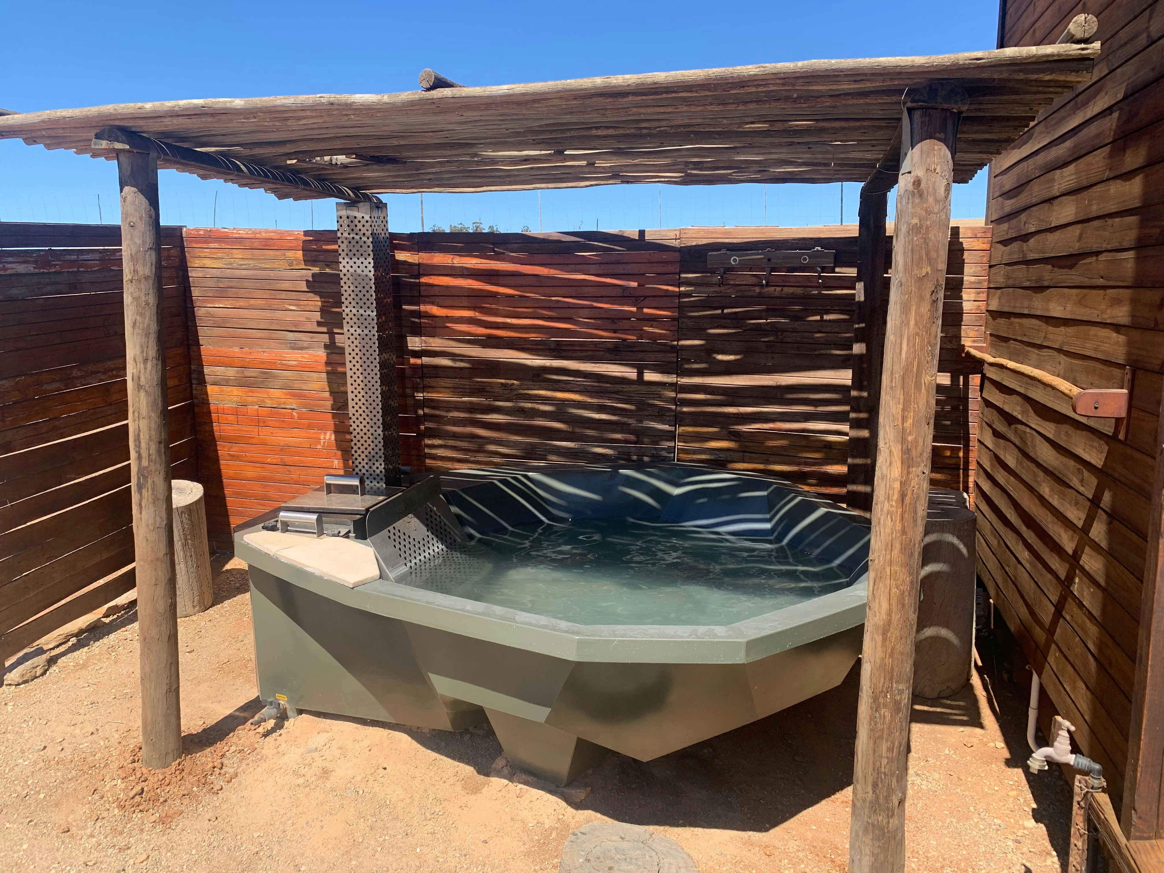 'n Sjarmante patio wag op gaste, kompleet met gemaklike sitplek om ontspanning te bied terwyl hulle die rustige en vreedsame uitsigte geniet. Justbe Cabin 2 is die perfekte keuse vir paartjies wat op soek is na 'n ontspannende wegbreek in 'n rustige en skilderagtige omgewing.
