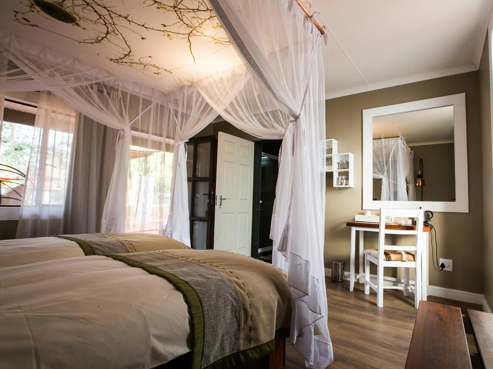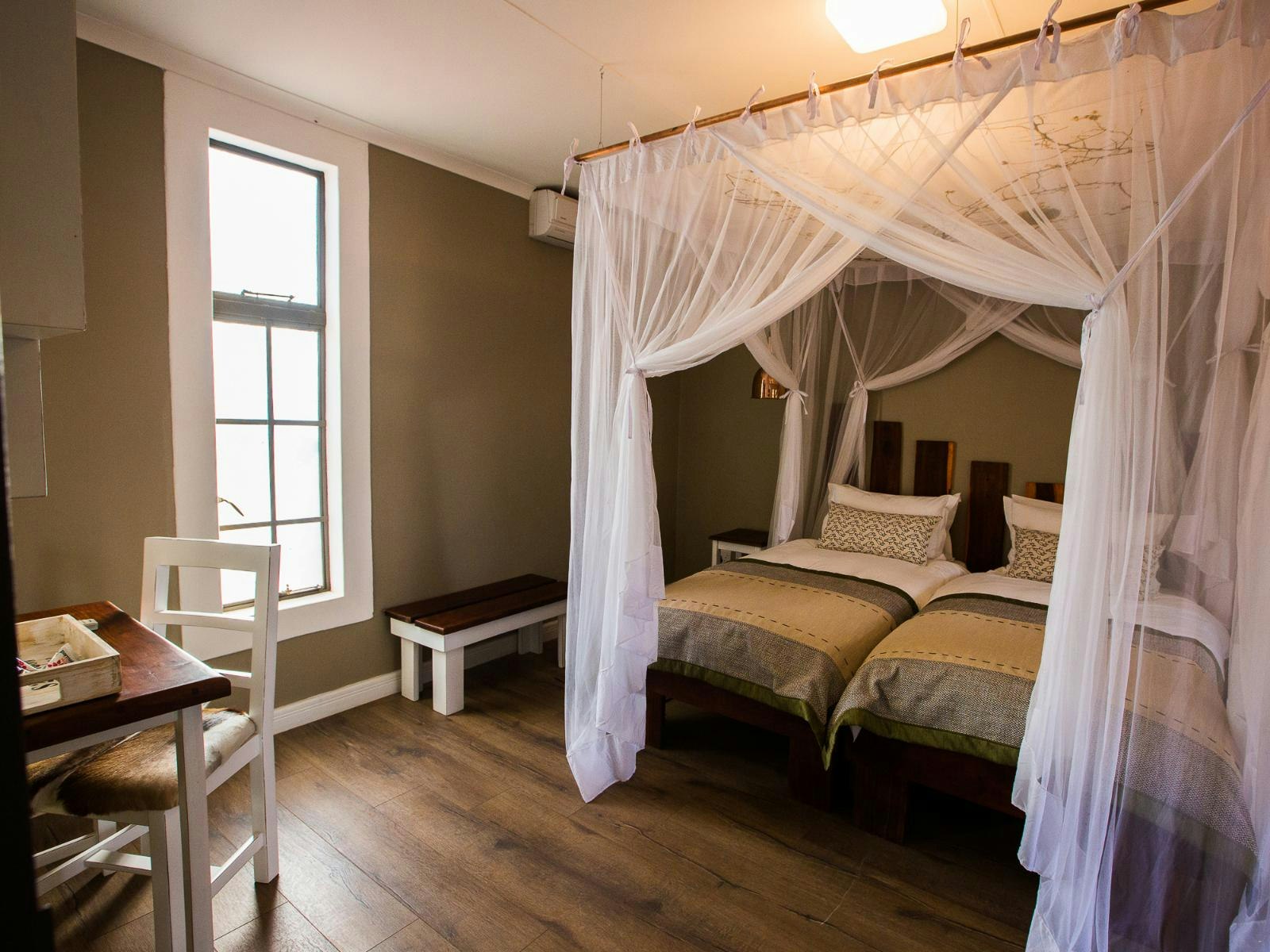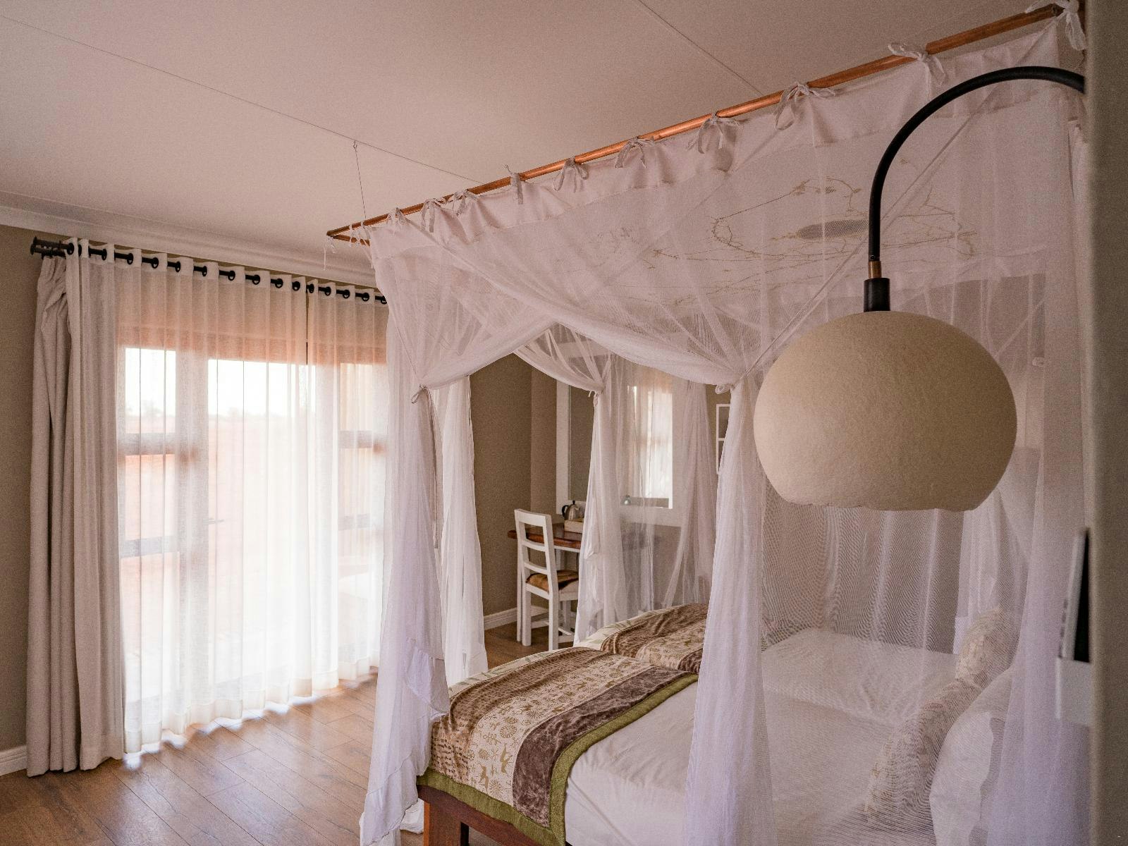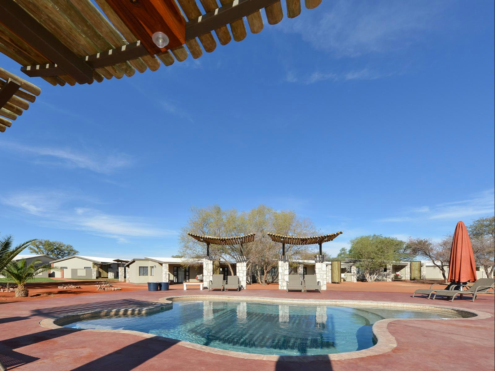 Gerieflike B&B-verblyf word aangebied in 30 standaardkamers met slaapplek vir 2 gaste, 5 gesinskamers, 15 kamers vir 2 gaste elk, 'n kamer met slaapplek vir 3 gaste en 'n kampterrein. Sommige van die kamers grens aan die binnehof en ander kyk uit oor die Kalahari-grasvlakte. Elke kamer het 'n privaat stoep, met uitsig oor die grasvlakte of uitsig oor die sentrale swembad. Elke kamer het 'n en suite-badkamer met 'n stort en het lugversorging, ideaal vir die warm somerdae.