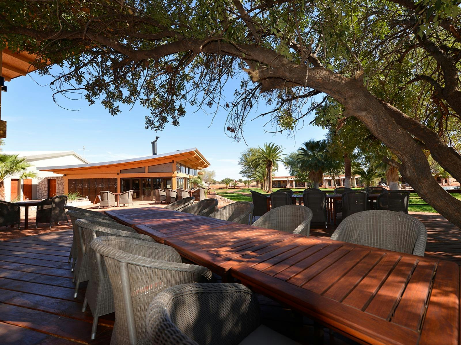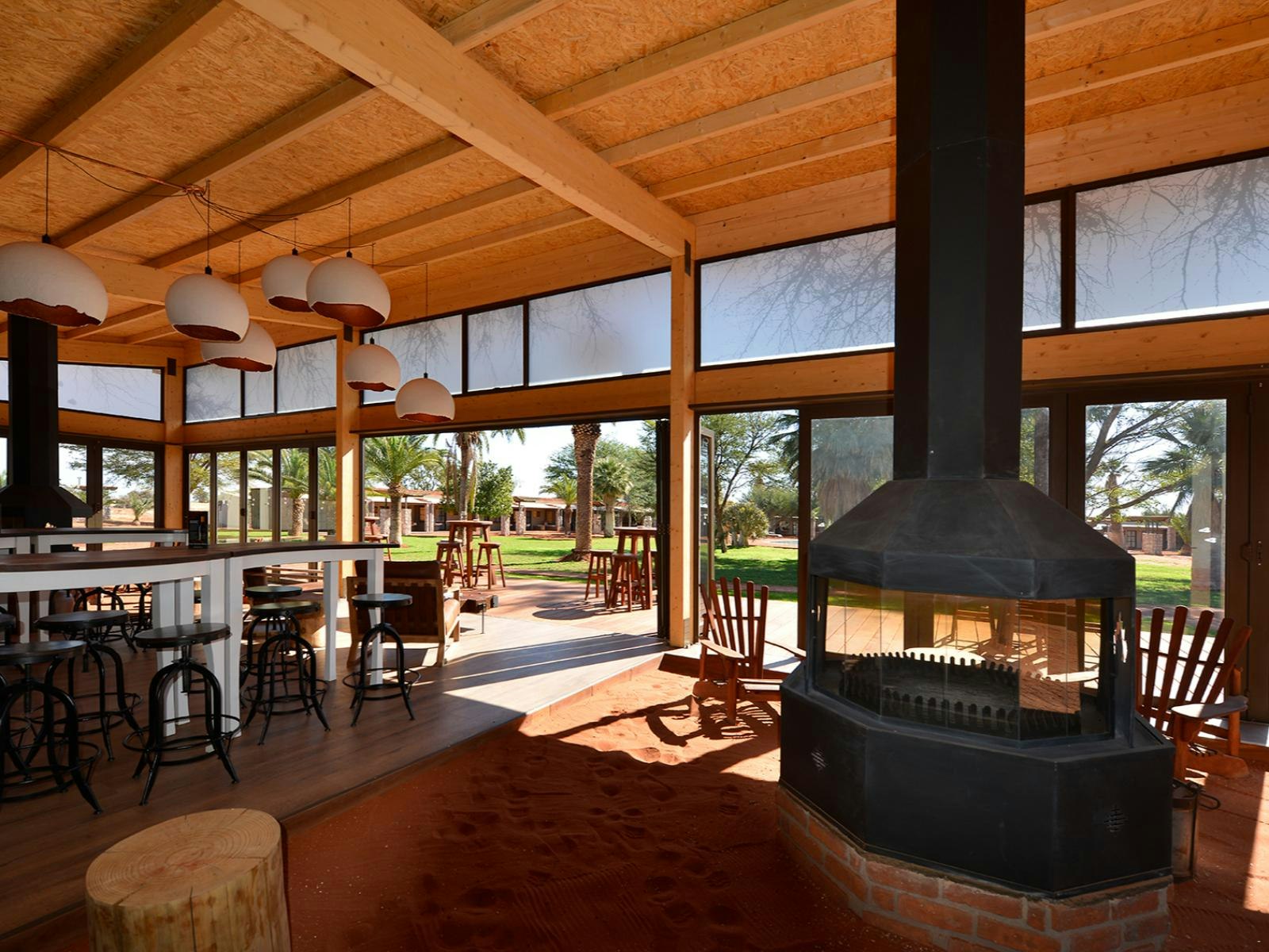 Die restaurant en chalets is rondom 'n binnehof geleë, met 'n swembad. Daar is 2 swembaddens vir gaste om van te gebruik. Oggend- en sonsondergang-wildritte is beskikbaar, waar gaste die pragtige panoramiese uitsig vanaf die duin kan geniet. 'n Roetekaart is beskikbaar by die onthaal vir staproetes.