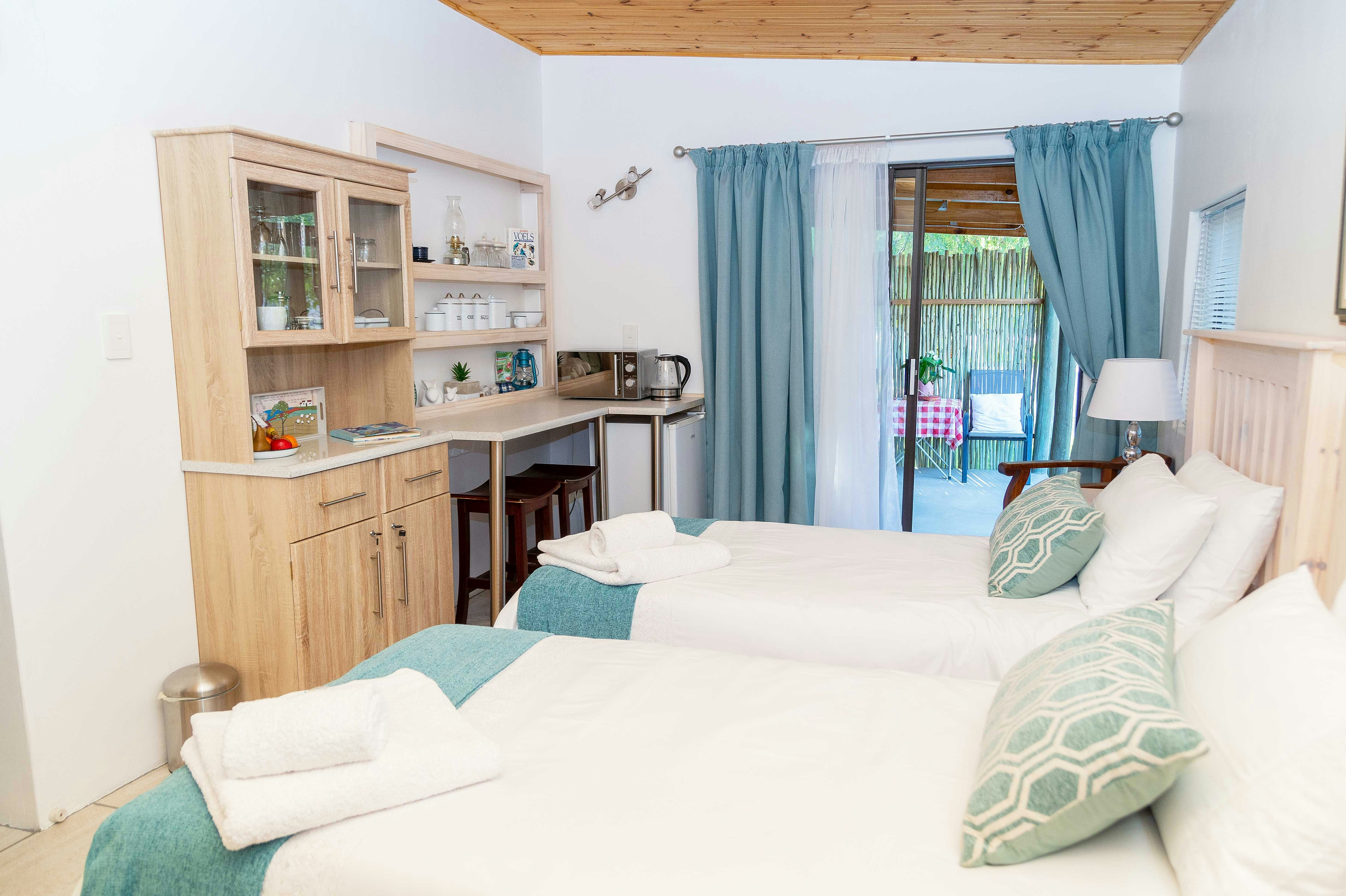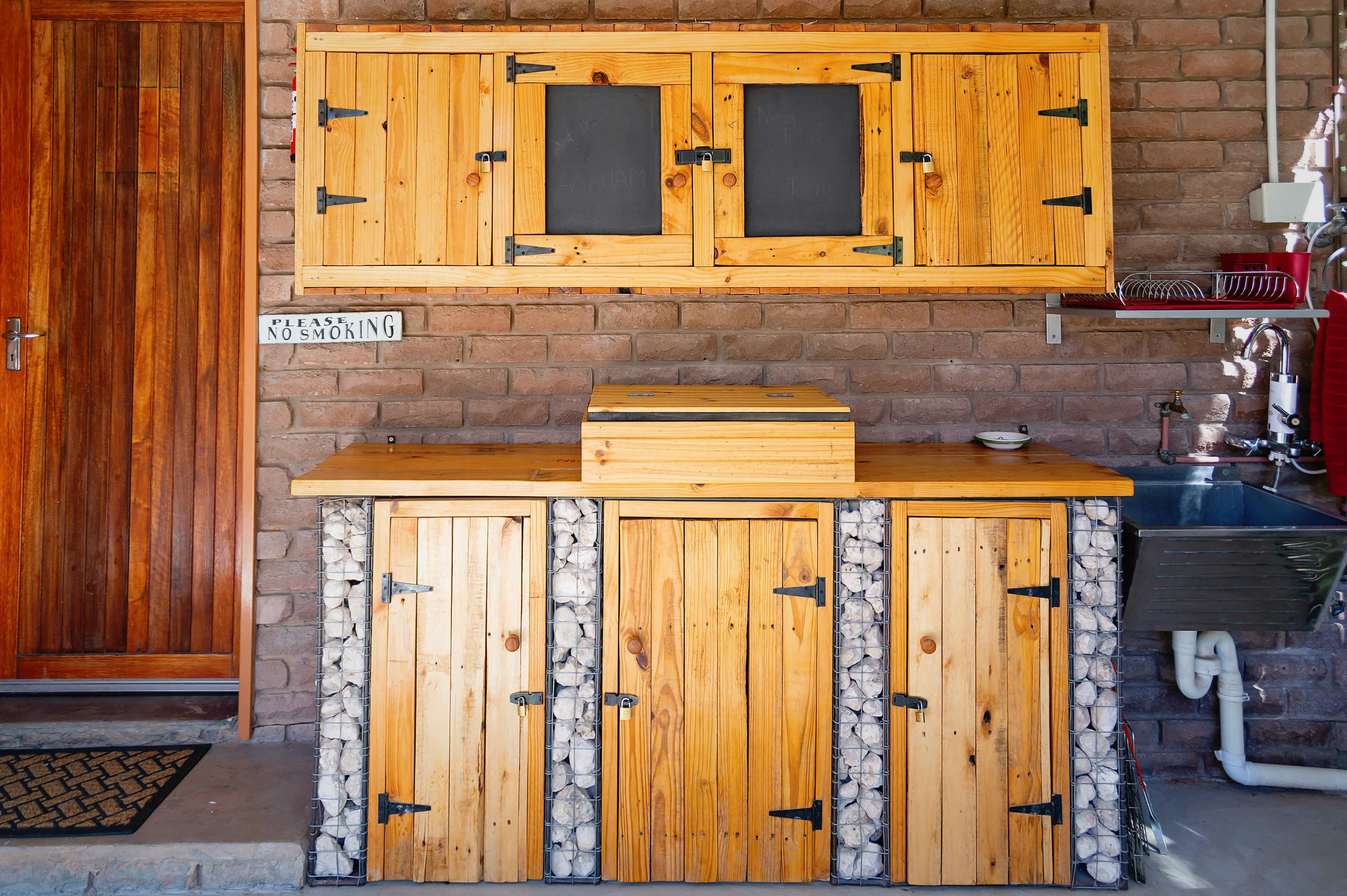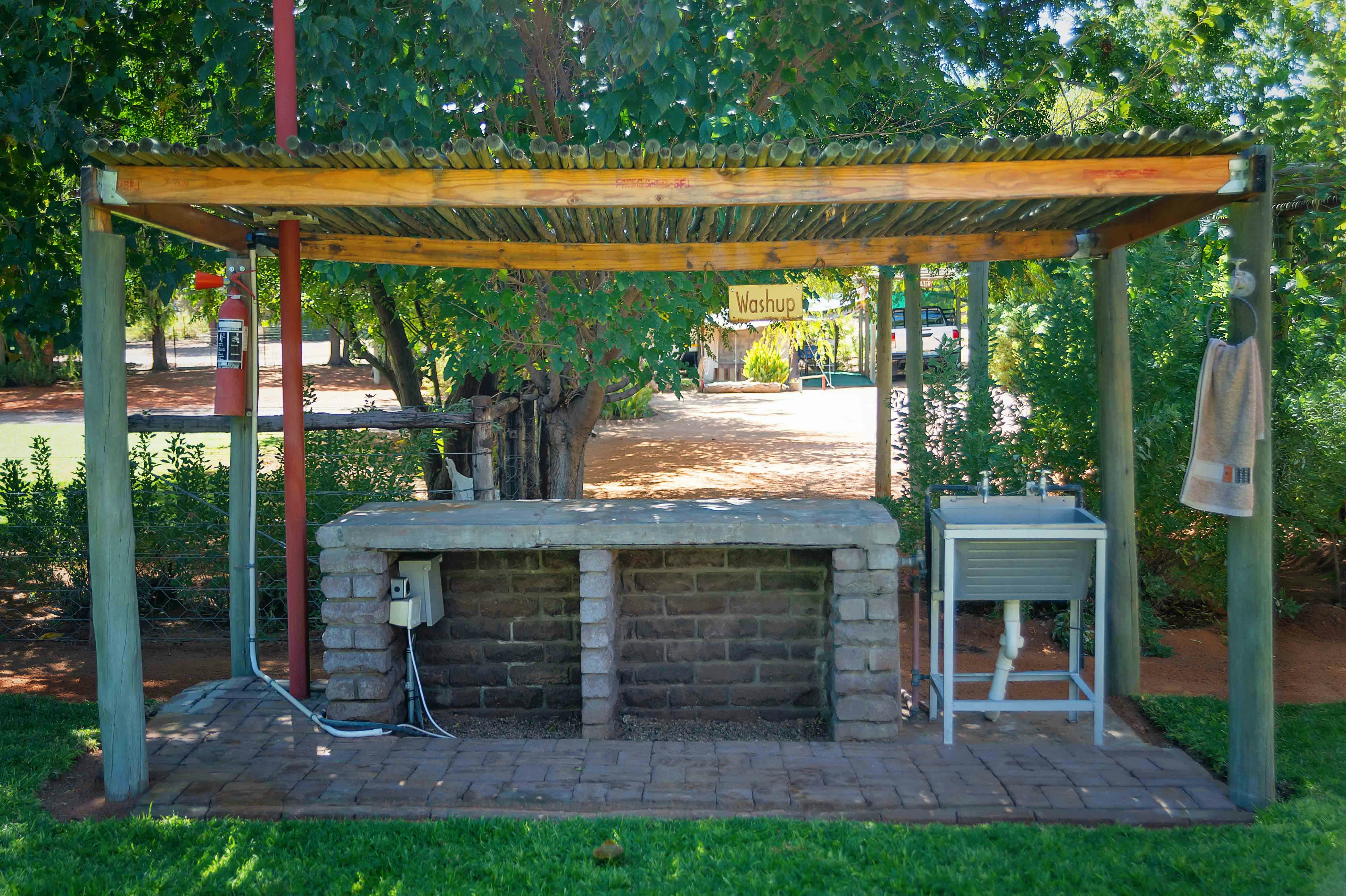 Kalahari Unit 2 has a king-size bed that can be converted into 2 three-quarter beds upon request. The bathroom has a shower, basin and toilet. The unit has a kitchenette equipped with the basic heating and eating facilities, as well as a small dining area. Covered braai facilities with an outdoor cooking and washing-up area are available. It is surrounded by shady trees.
