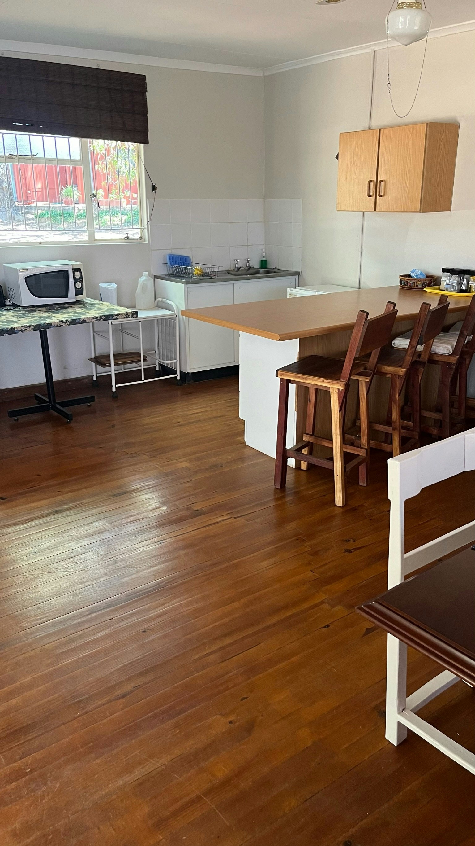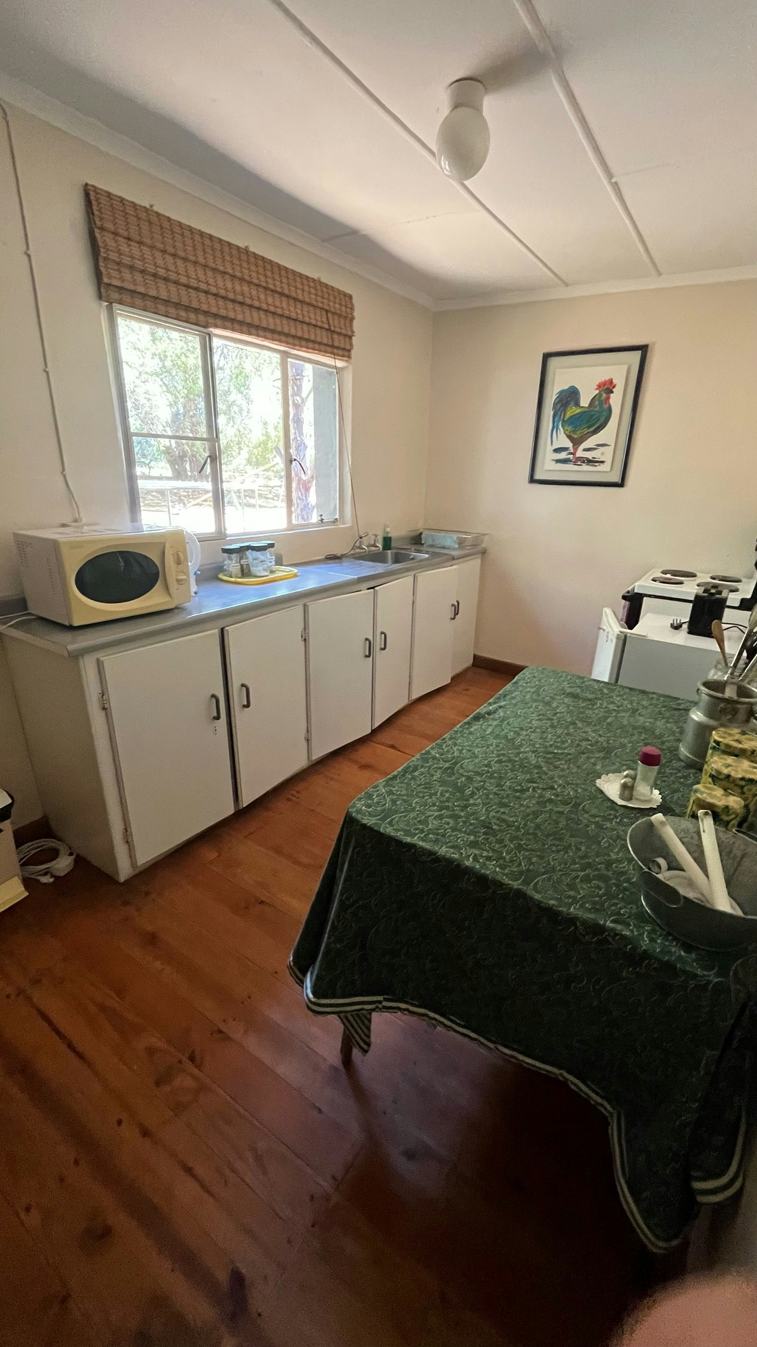 Buite is daar 'n onderdak-braaiplek en braaipakke is te koop. Daar is 'n regte ou plaasdam om in af te koel. Veilige onderdakparkeerplek is vir tot 12 mediumgrootte voertuie beskikbaar.
