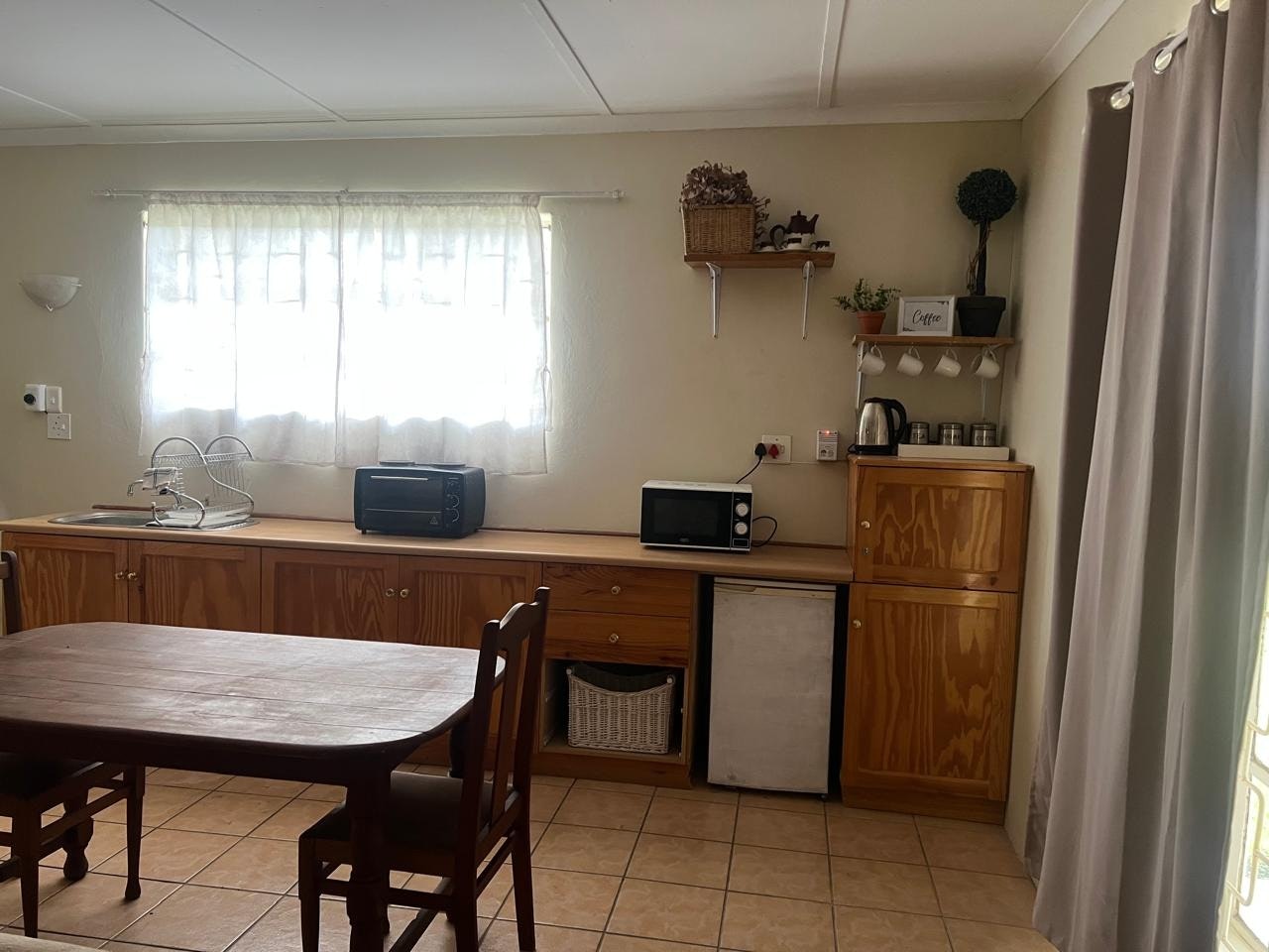 Die kombuisie is toegerus met 'n yskas-vrieskas, gasstoof, mikrogolfoond, broodrooster en tee- en koffiemaakgeriewe. Gratis WiFi is ook beskikbaar.