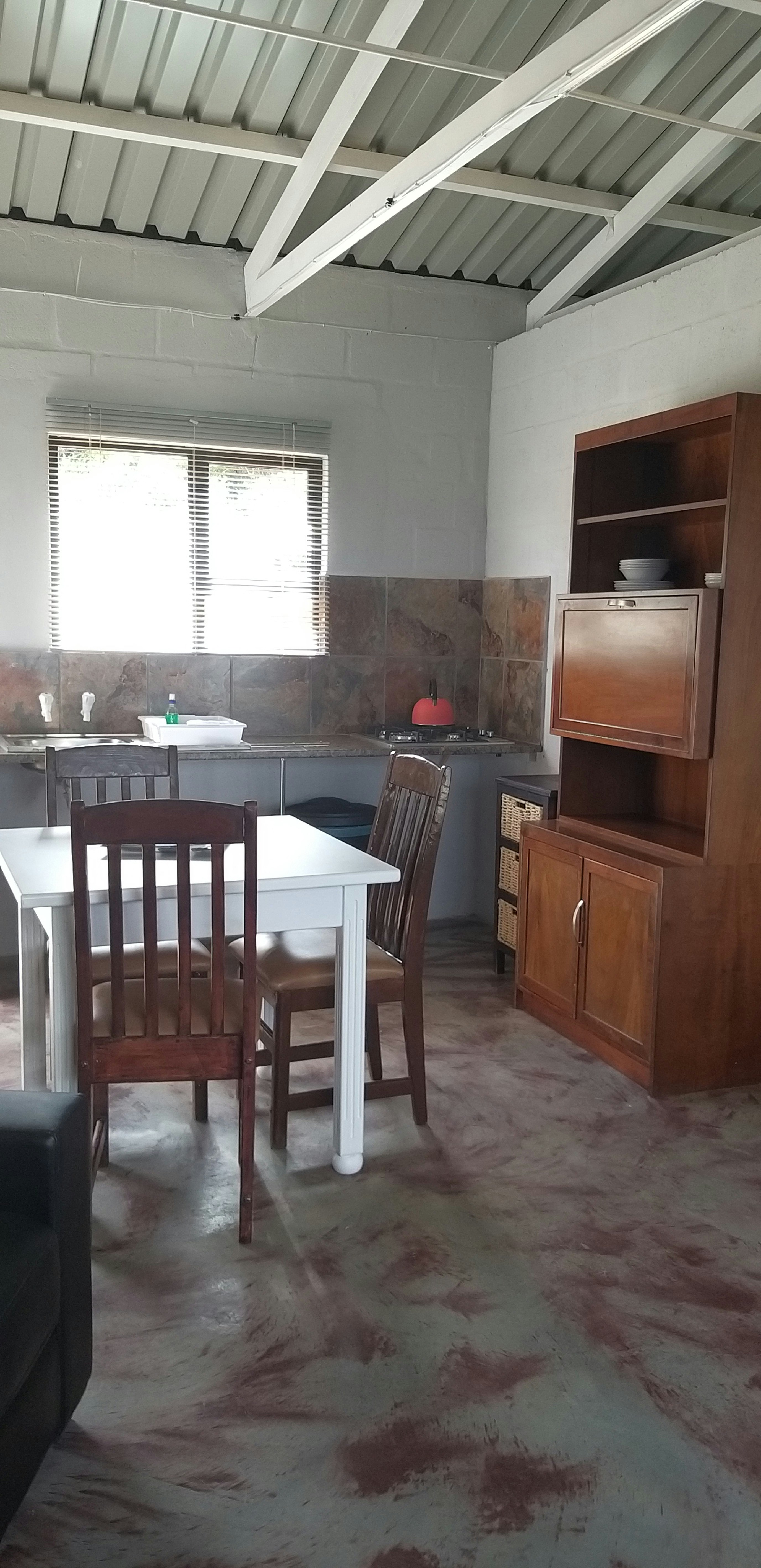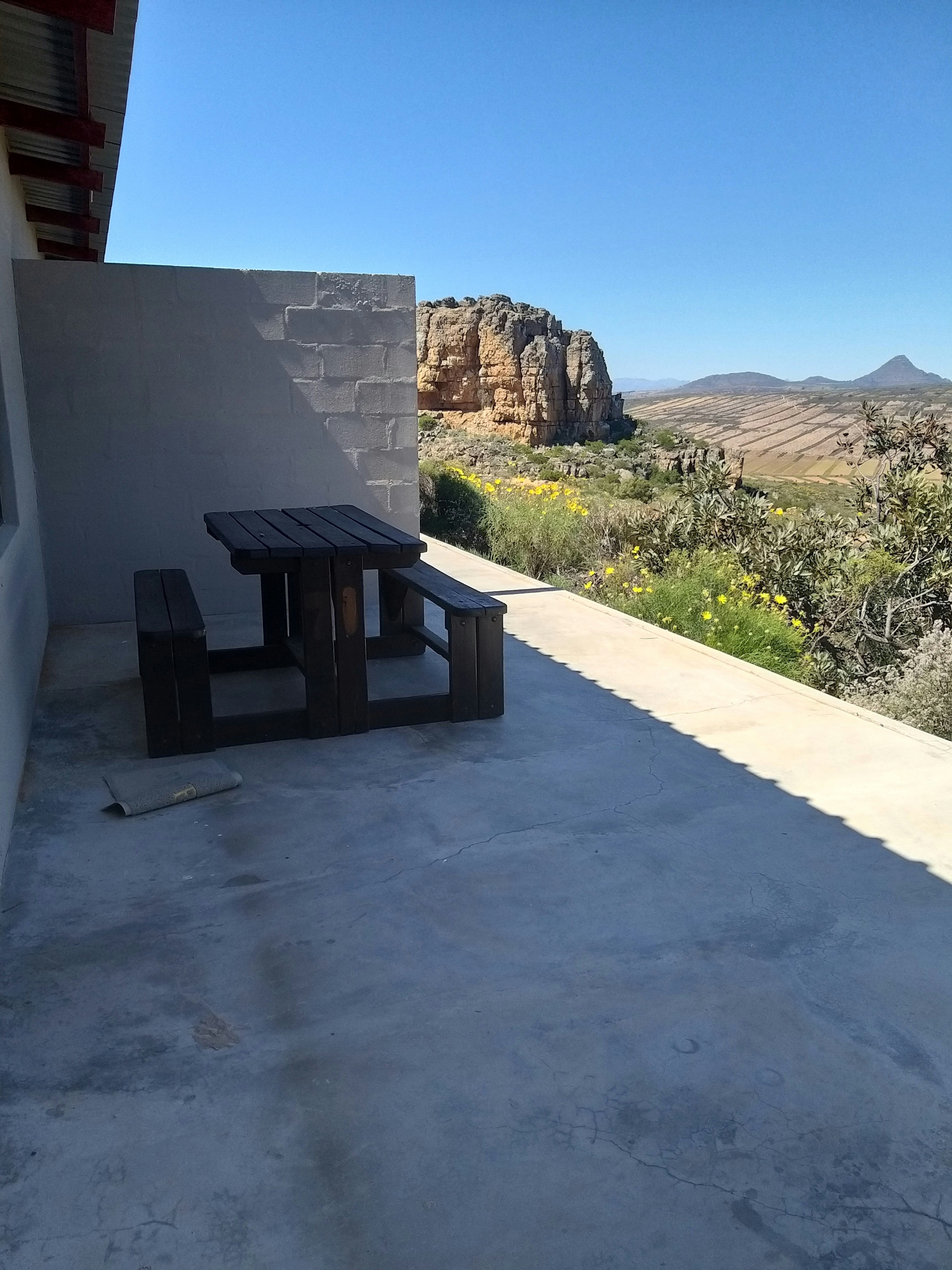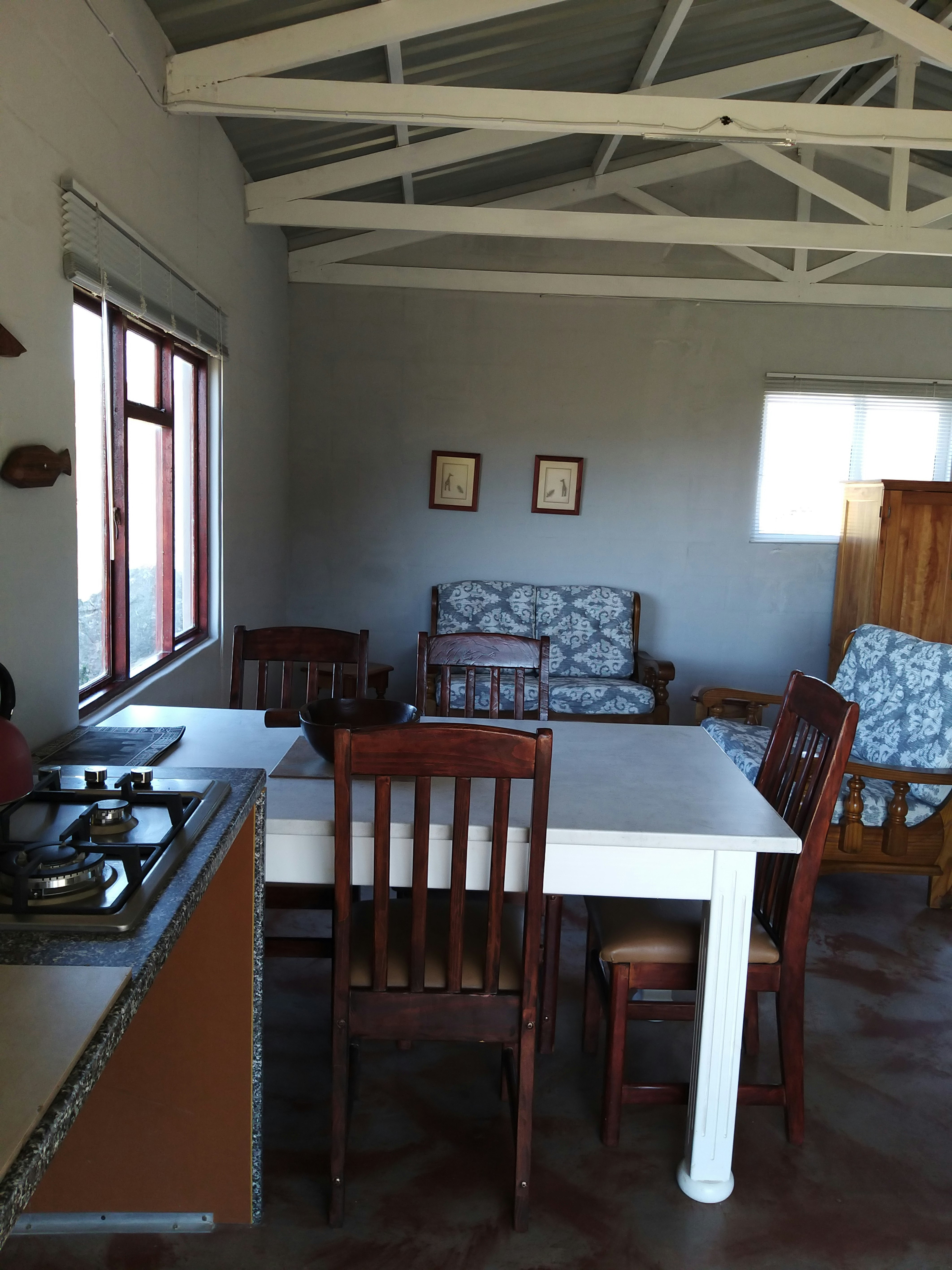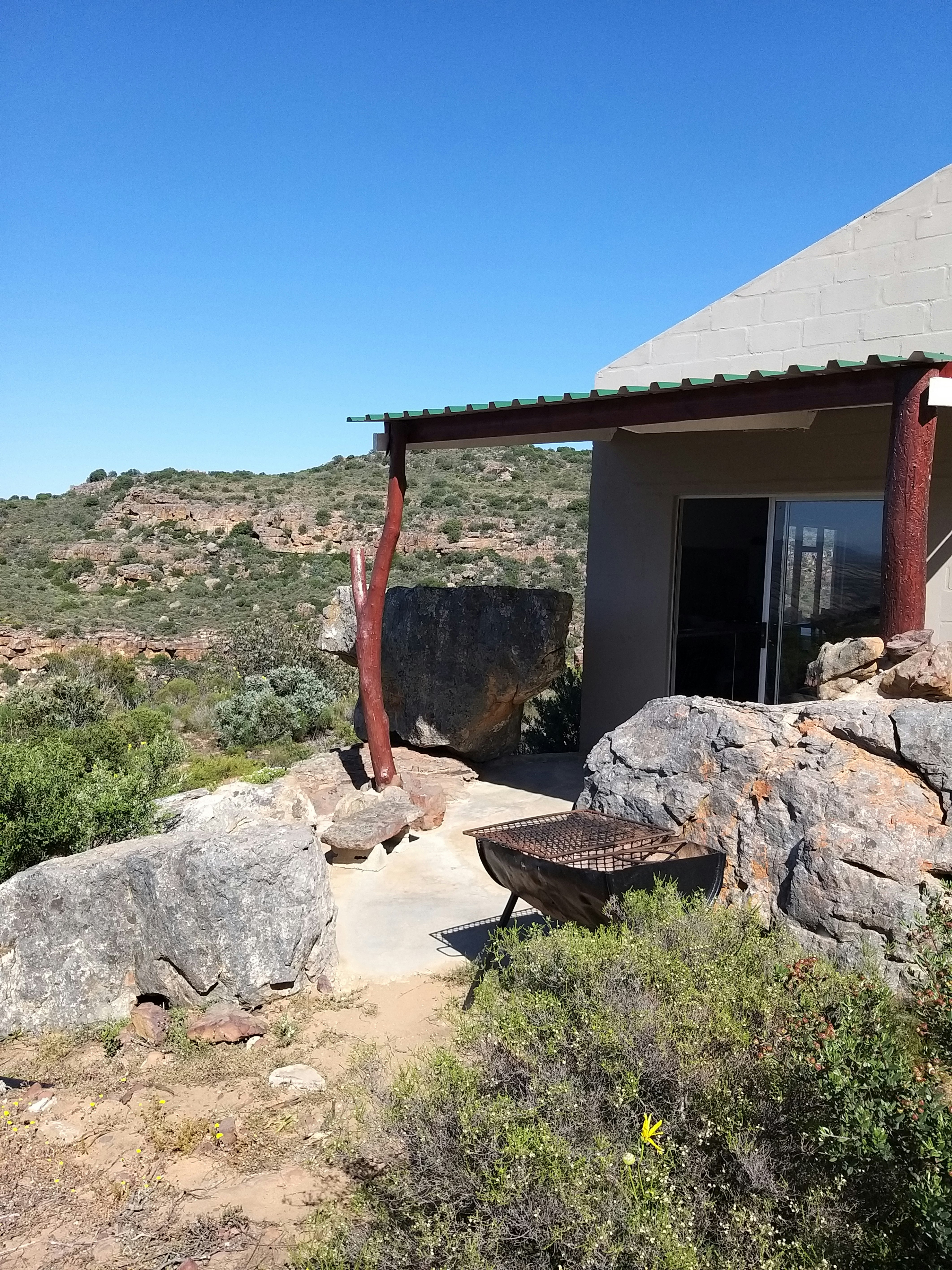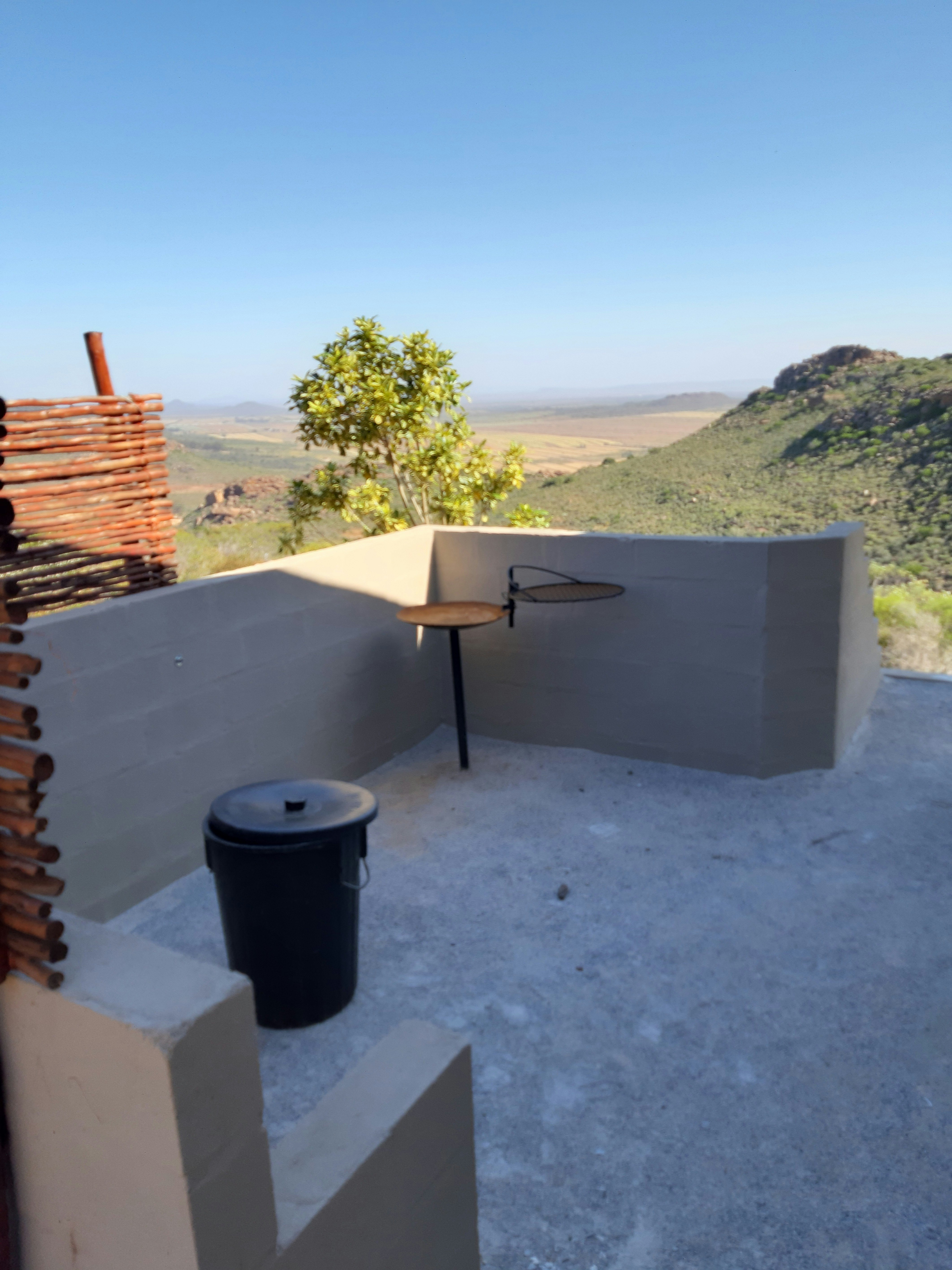 Die selfsorgkothuis het 'n oopplan-uitleg en slaapplek vir 3. Daar is 3 enkelbeddens en 'n en suite-badkamer met 'n stort, toilet en wasbak. Die slaaparea is oopplan met die leefarea. Die kombuis is met 'n yskas, gasstoof, tee- en koffiemaakgeriewe, eetgerei en breekware toegerus. Daar is 'n privaat braai-area en 'n stoep met 'n pragtige panoramiese uitsig op die berg en oor die velde. Die ligte en yskas is sonkrag-aangedrewe. Skootrekenaars en selfone kan gelaai word.
