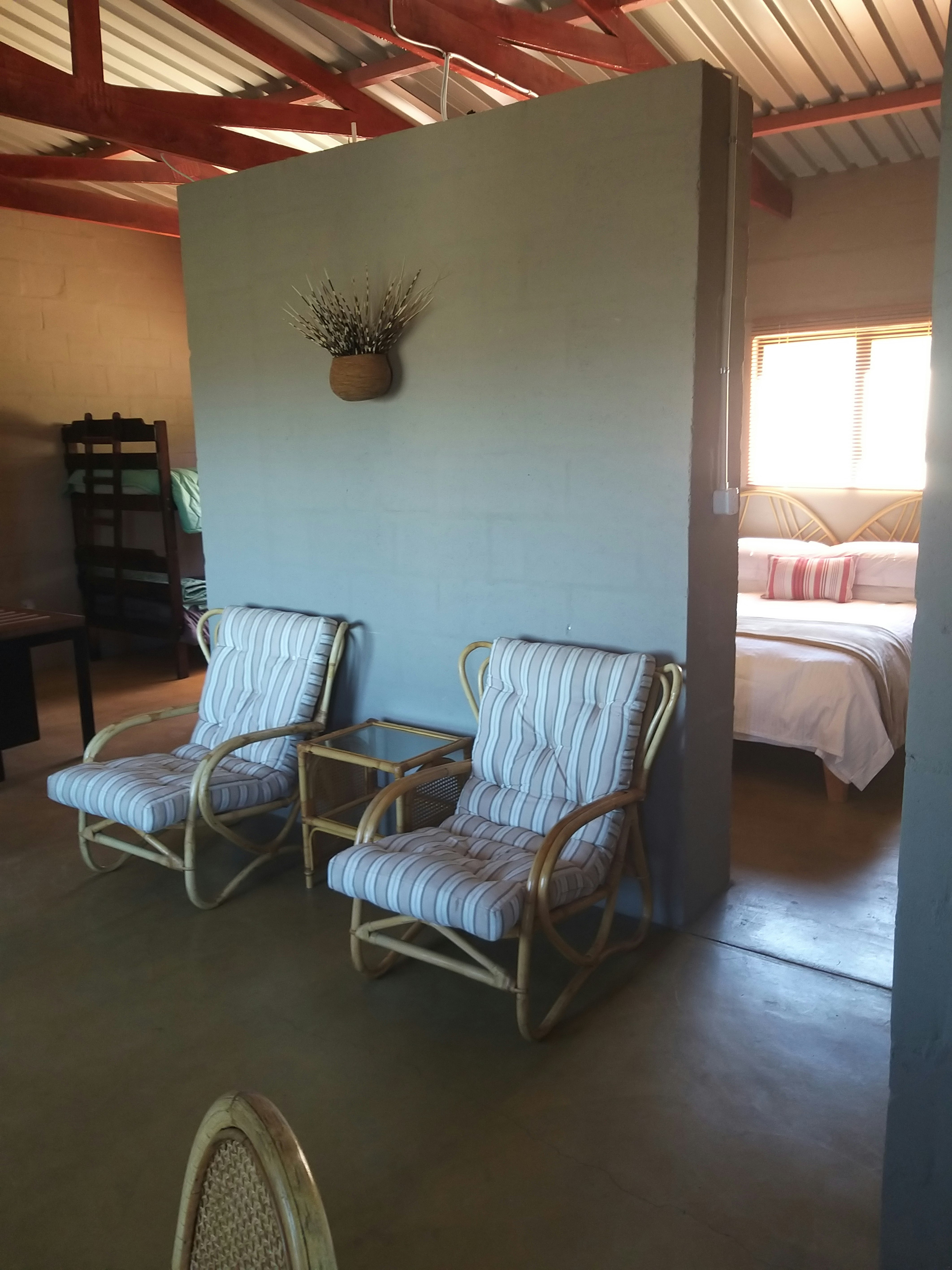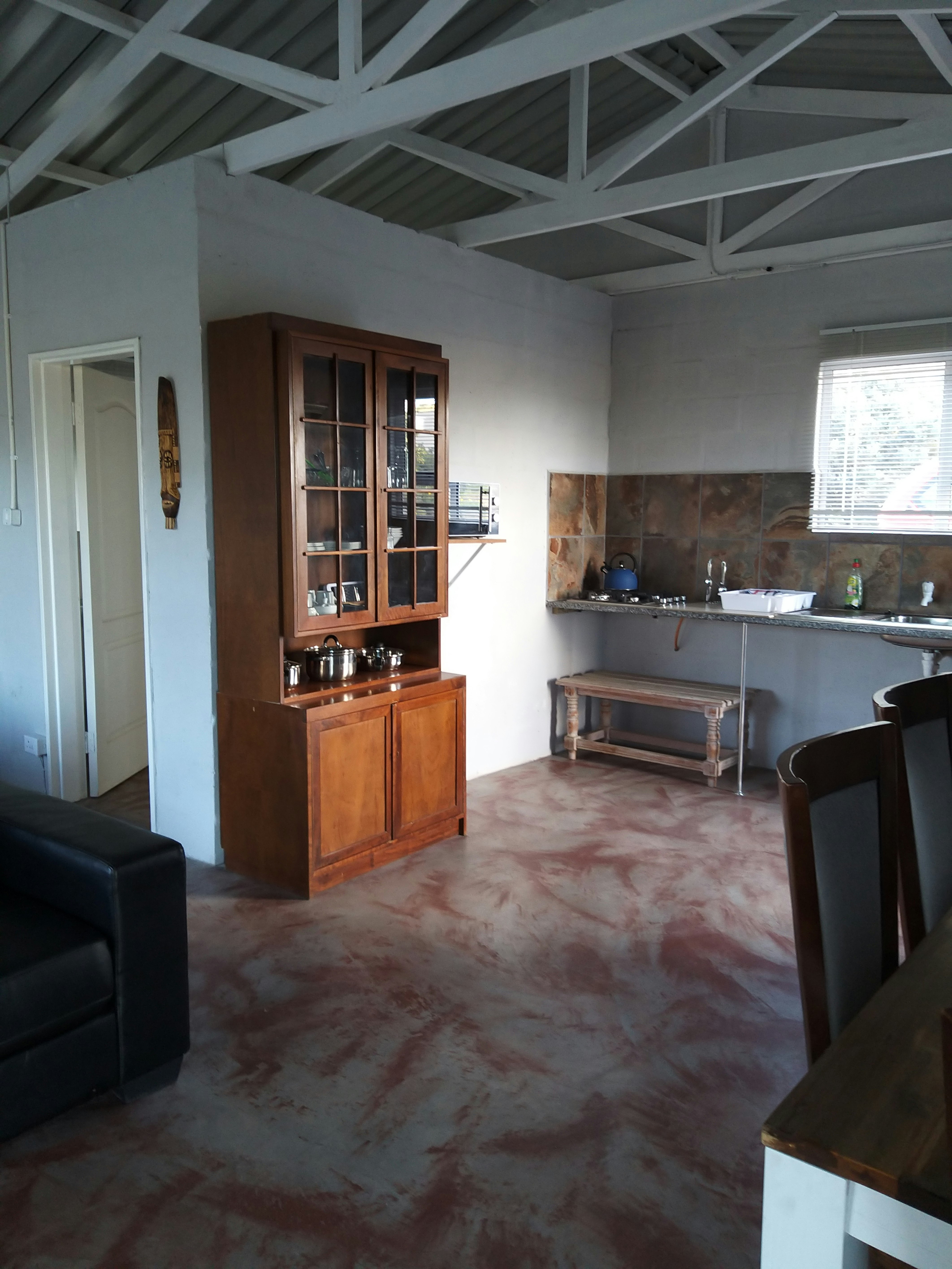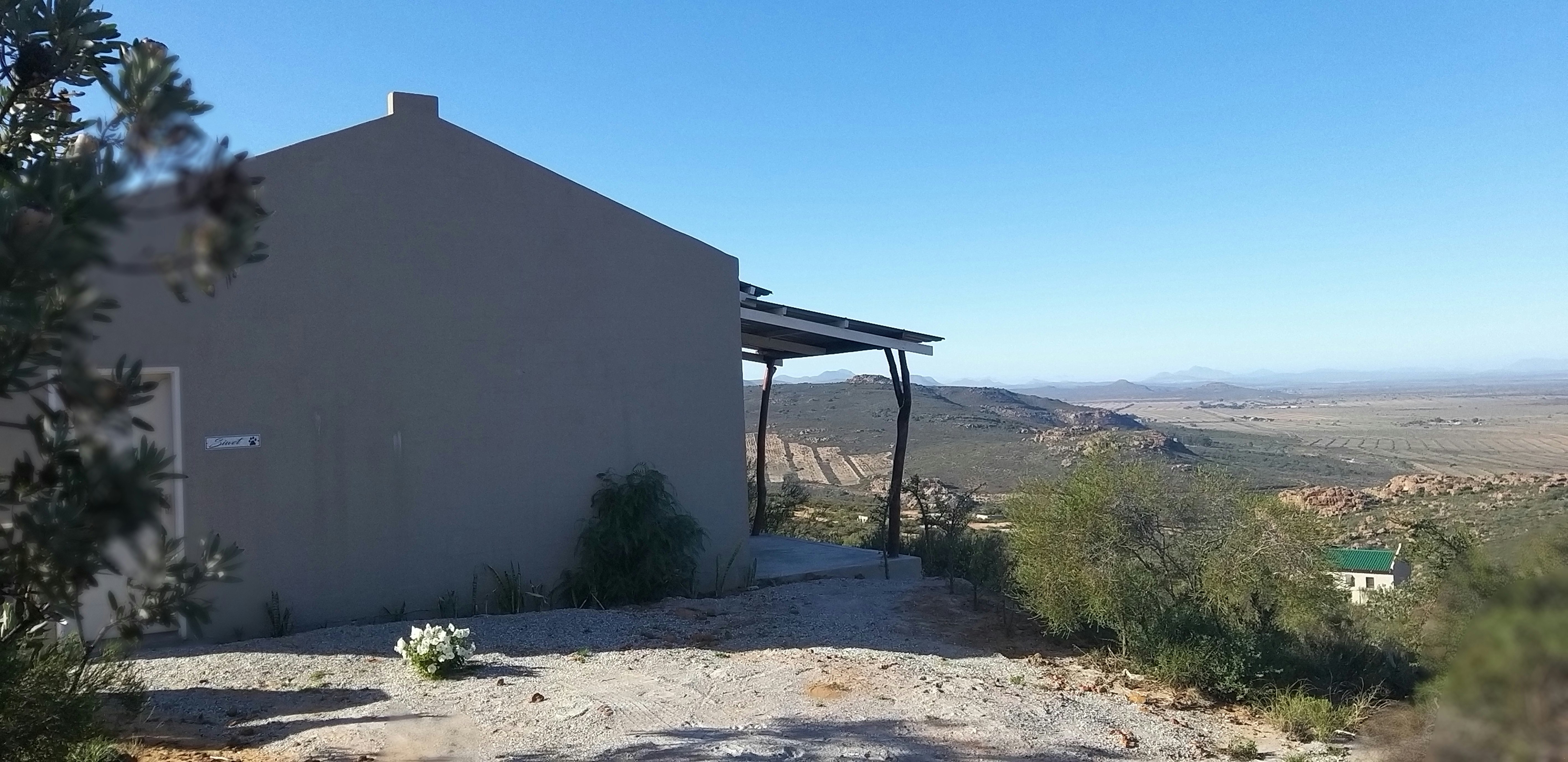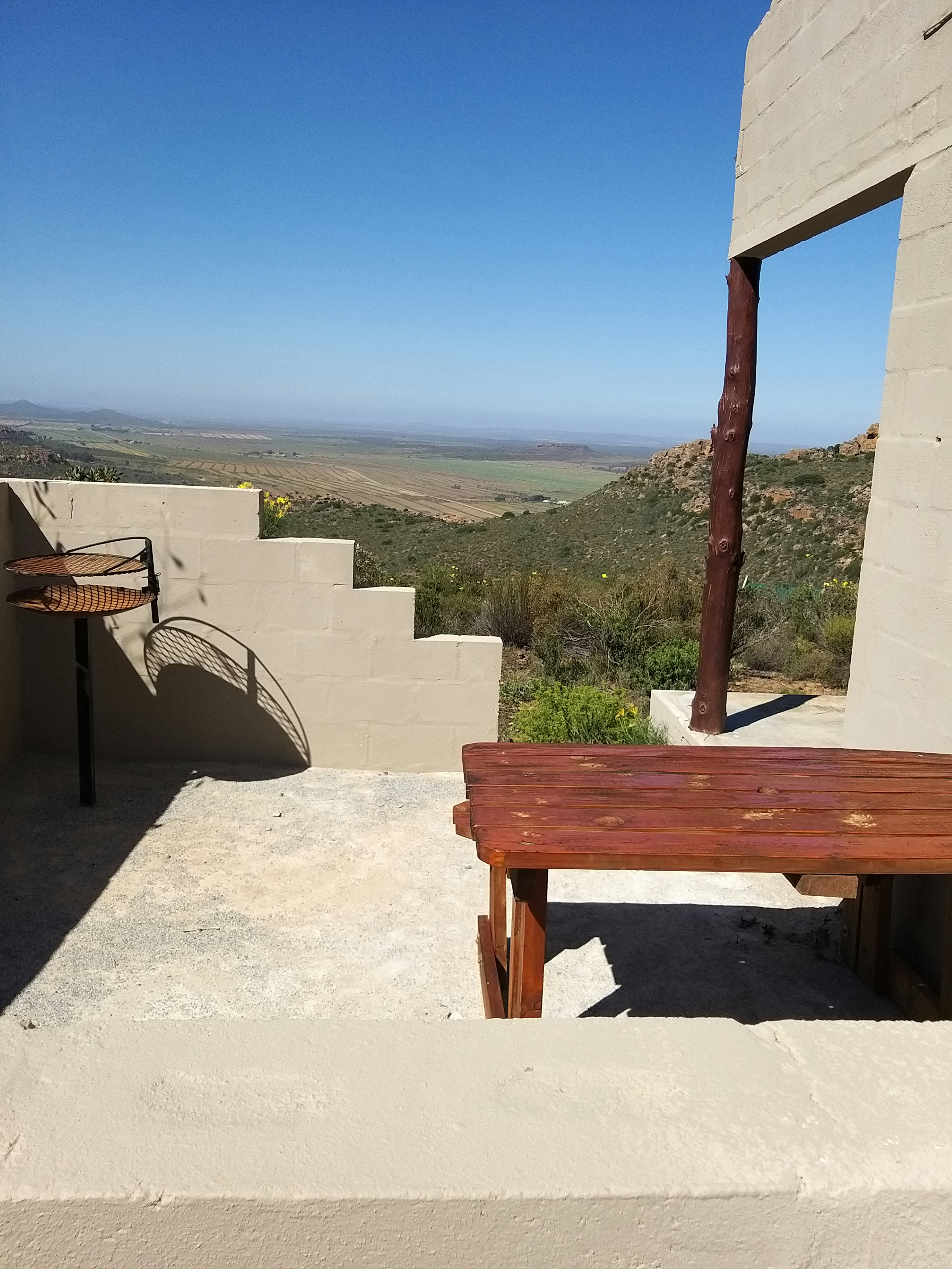 Die selfsorgkothuis het 'n oopplan-uitleg en slaapplek vir 3. Daar is 3 enkelbeddens en 'n en suite-badkamer met 'n stort, toilet en wasbak. Die slaaparea is oopplan met die leefarea. Die kombuis is met 'n yskas, gasstoof, tee- en koffiemaakgeriewe, eetgerei en breekware toegerus. Daar is 'n privaat braai-area en 'n stoep met 'n pragtige panoramiese uitsig op die berg en oor die velde. Die ligte en yskas is sonkrag-aangedrewe. Skootrekenaars en selfone kan gelaai word.