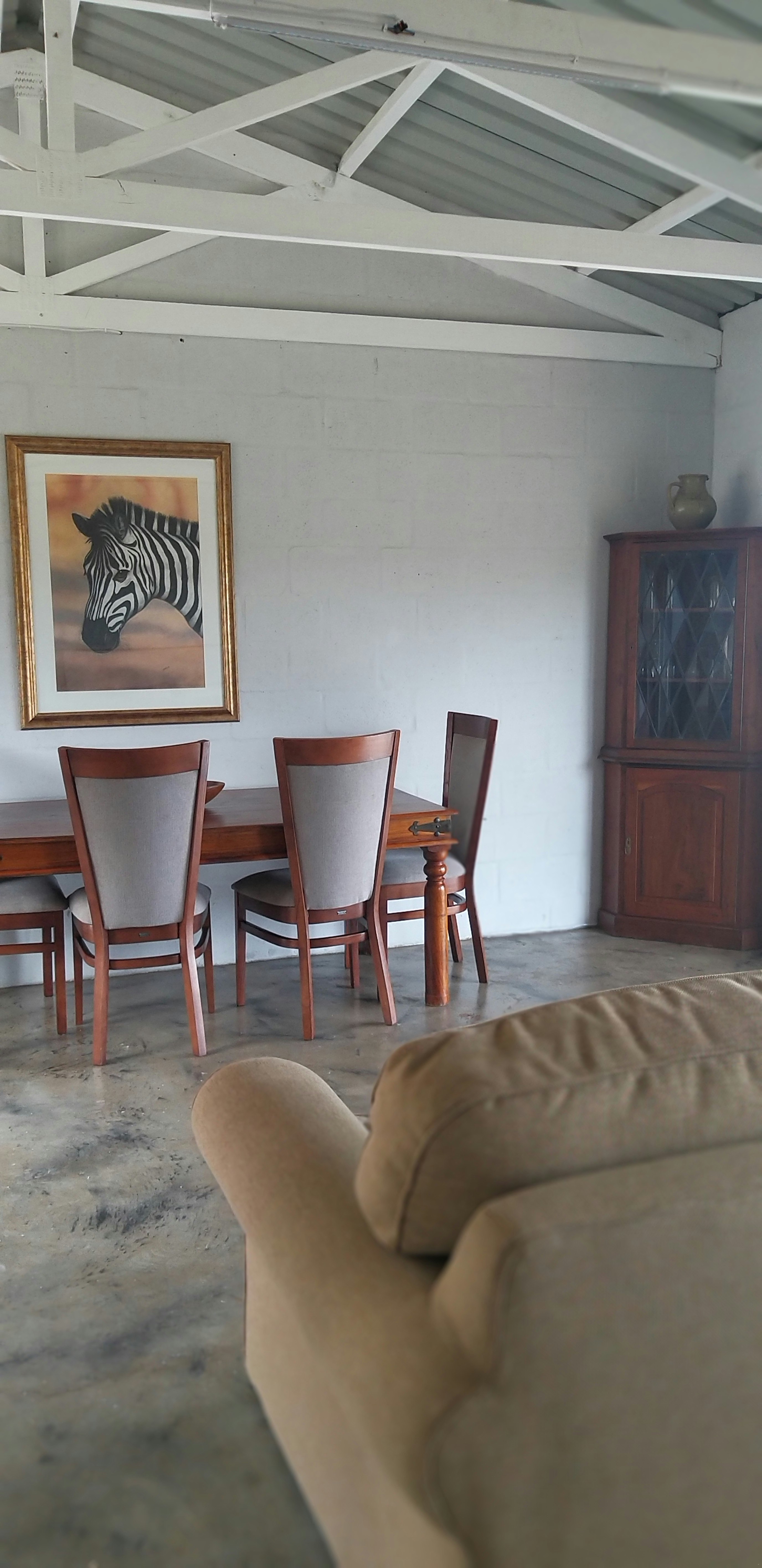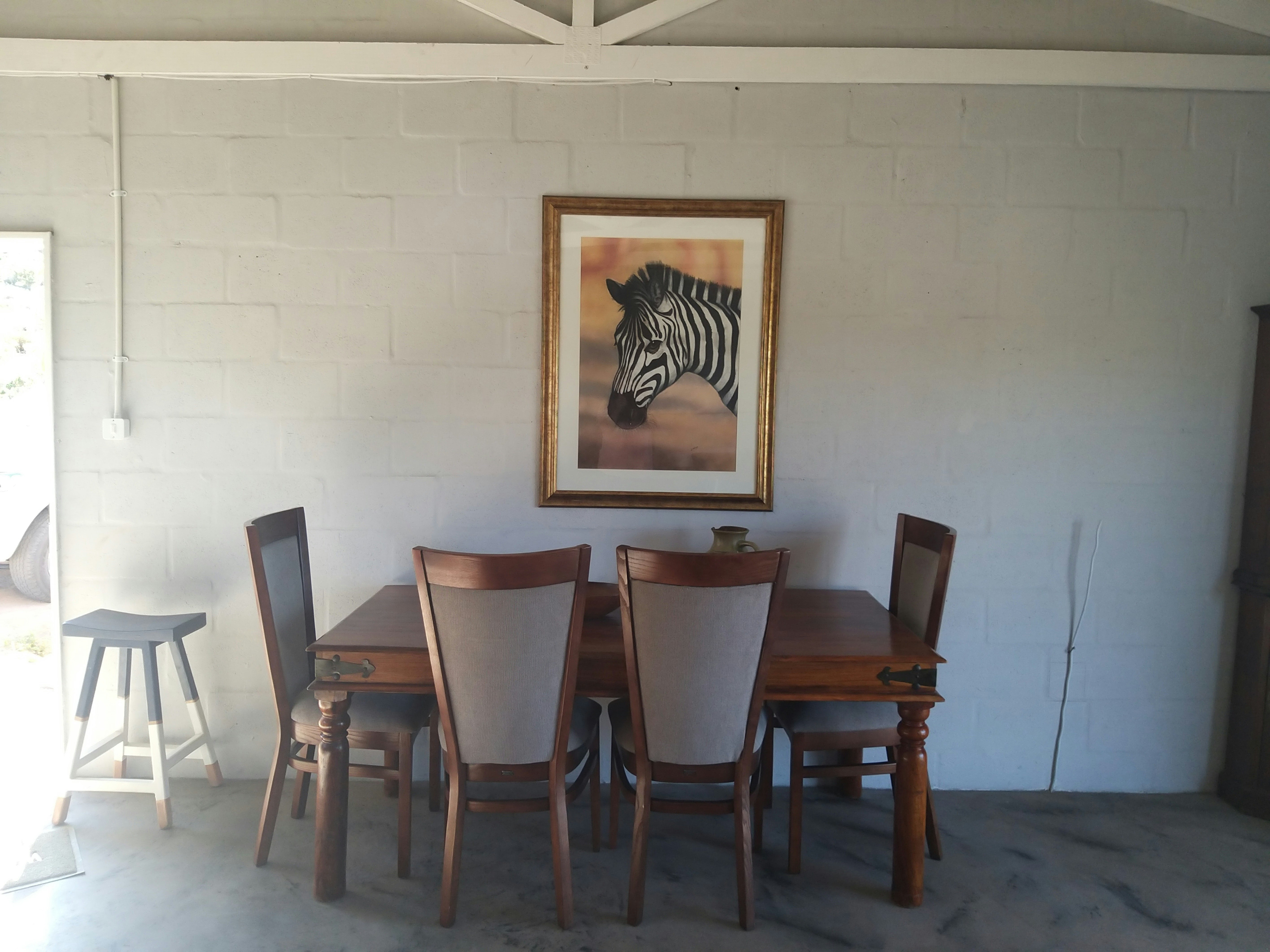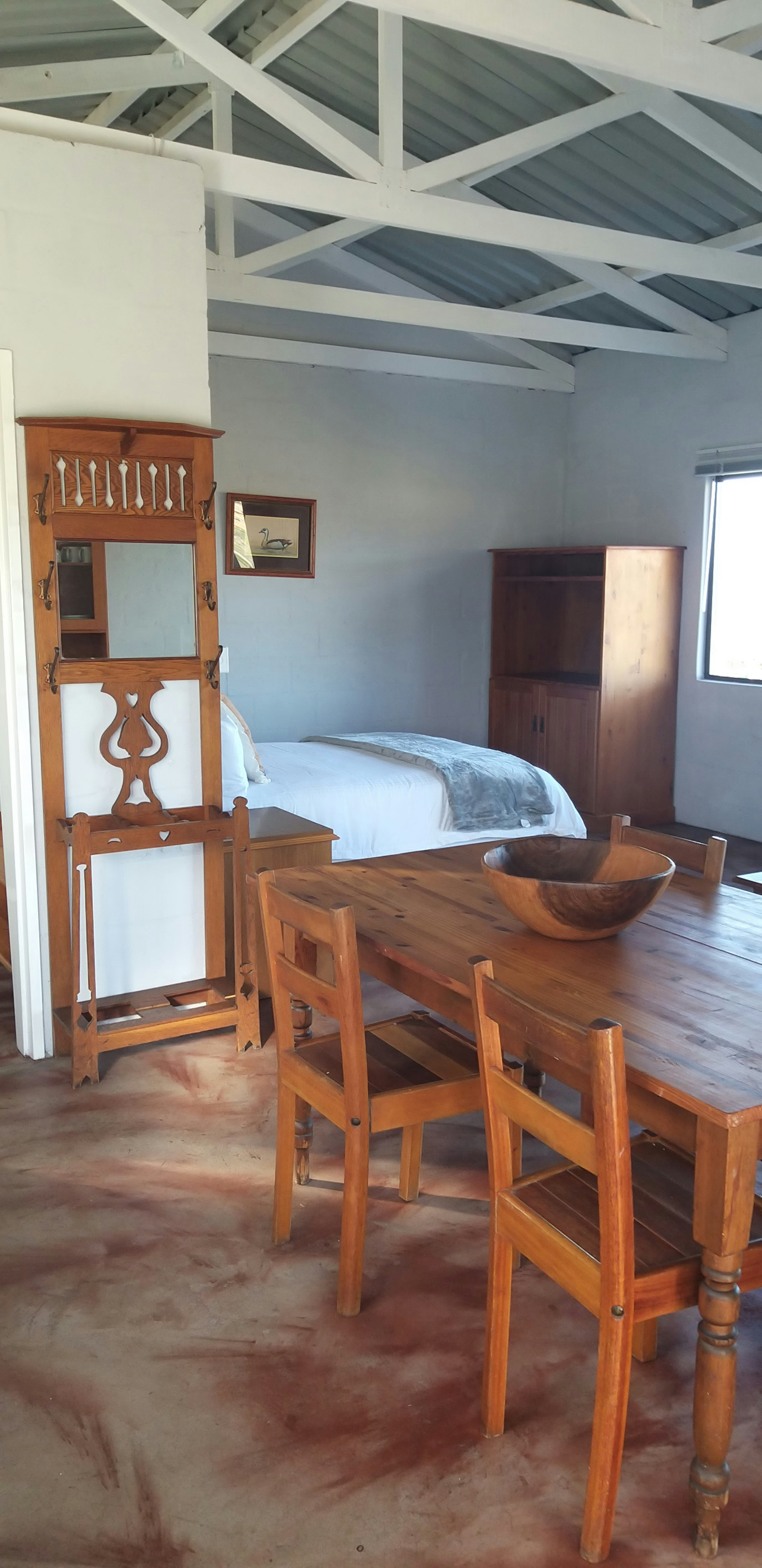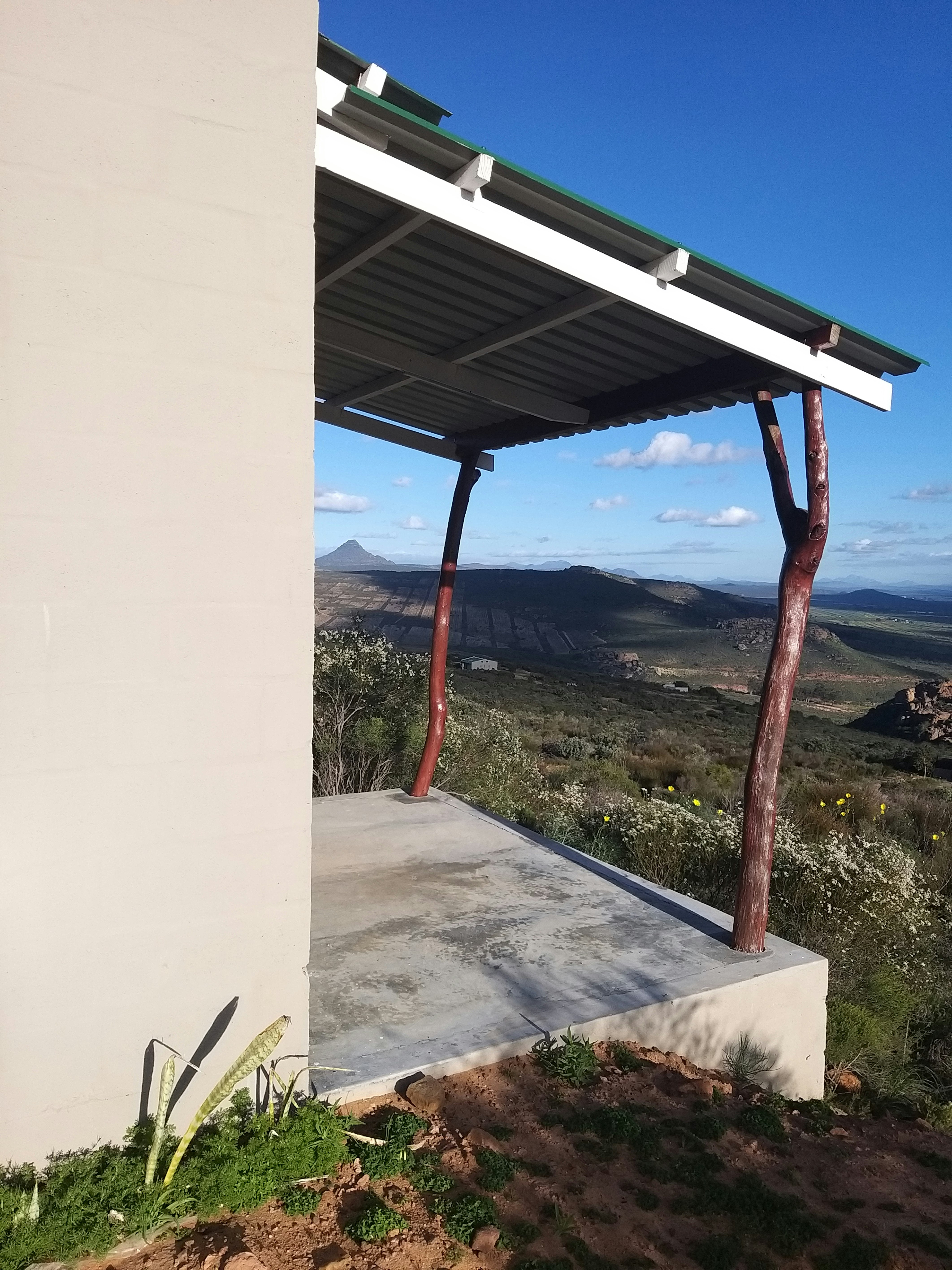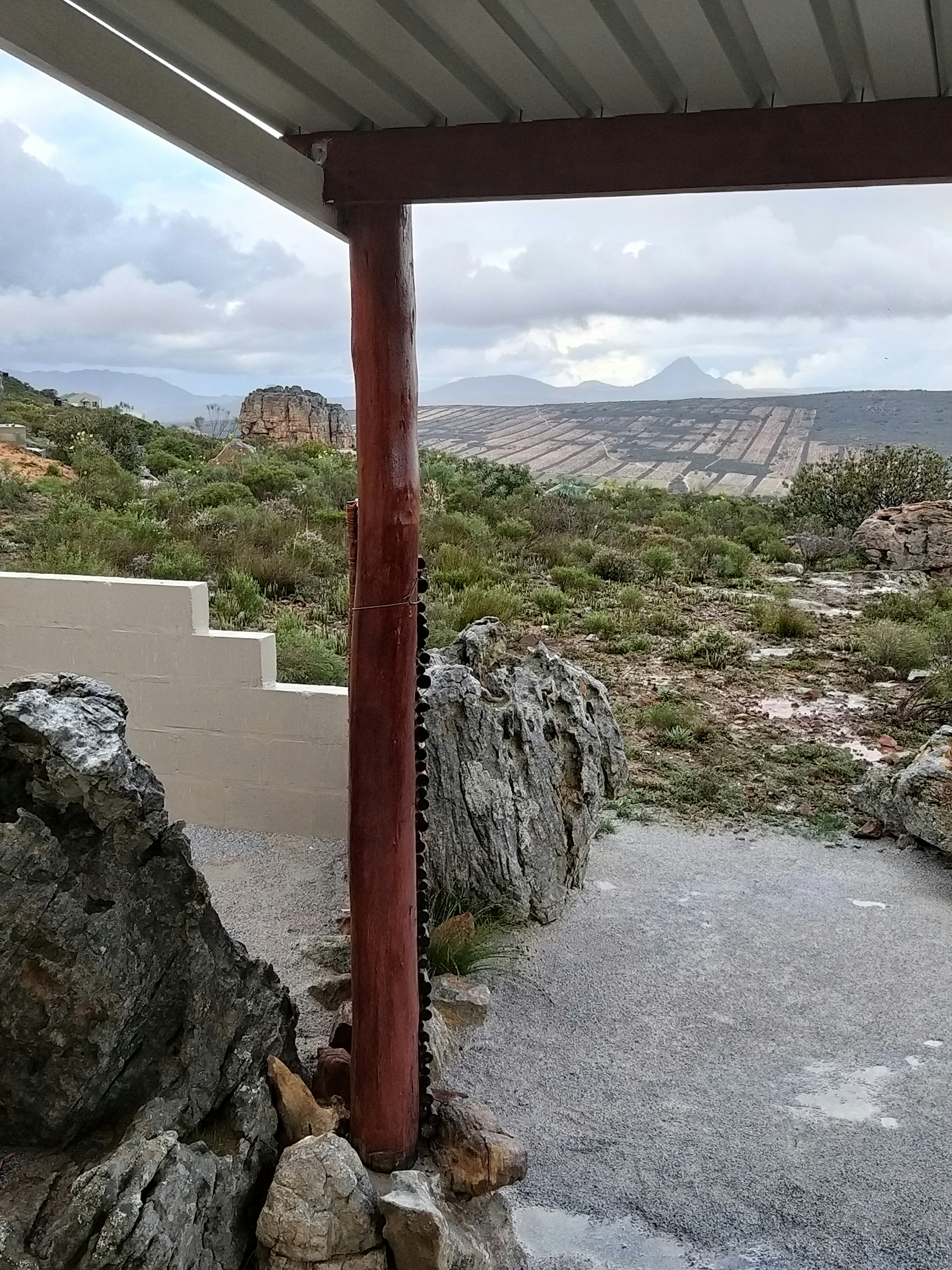 Die selfsorgkothuis het 'n oopplan-uitleg en slaapplek vir 3. Daar is 3 enkelbeddens en 'n en suite-badkamer met 'n stort, toilet en wasbak. Die slaaparea is oopplan met die leefarea. Die kombuis is met 'n yskas, gasstoof, tee- en koffiemaakgeriewe, eetgerei en breekware toegerus. Daar is 'n privaat braai-area en 'n stoep met 'n pragtige panoramiese uitsig op die berg en oor die velde. Die ligte en yskas is sonkrag-aangedrewe. Skootrekenaars en selfone kan gelaai word.