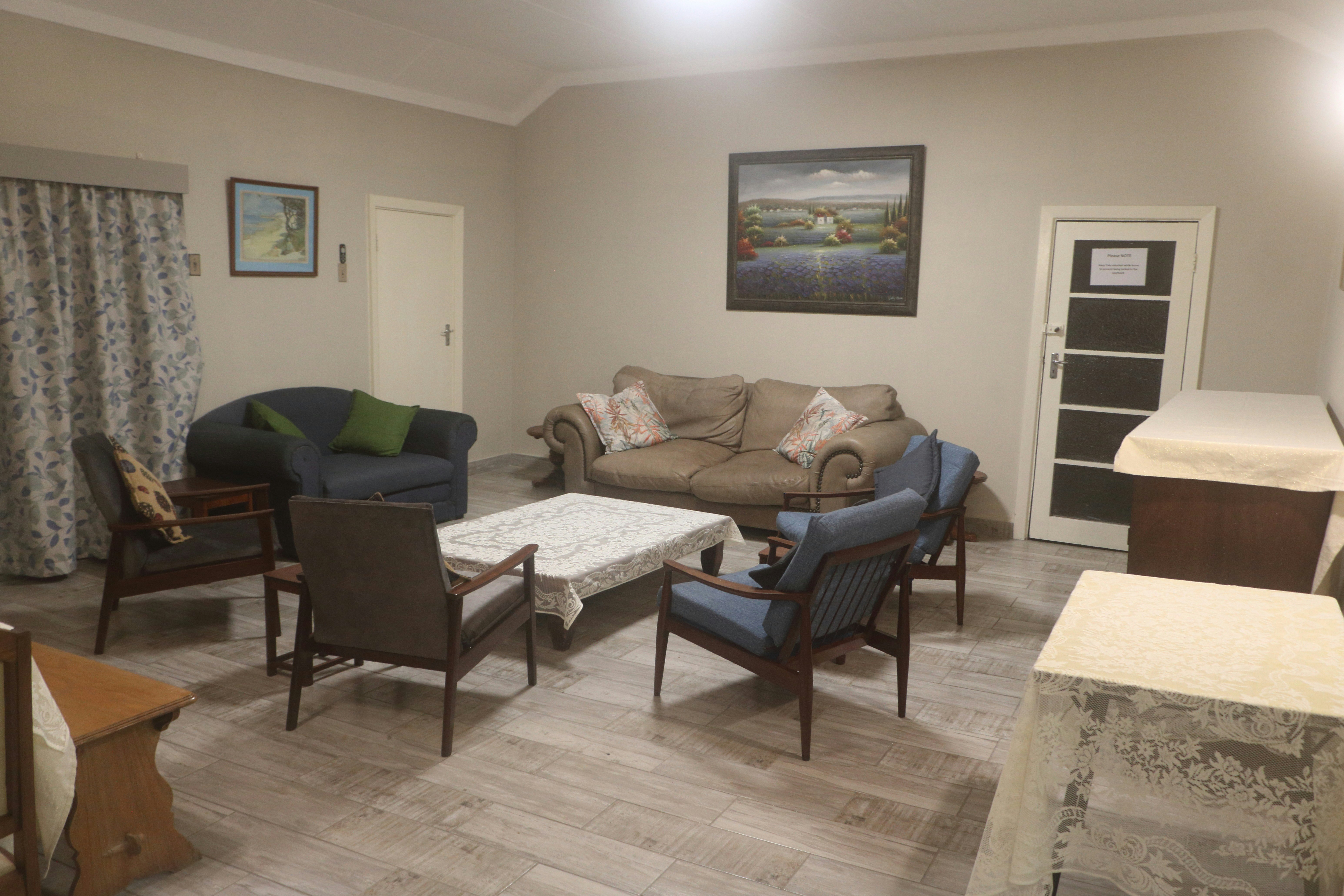 Die groot kombuis sluit 'n dubbel elektriese oond, 'n gasstoof met 5 branders en 'n gemeenskaplike ronde tafel met eetgerei vir 10 in. Die ruim oopplan-leefarea sluit eet- en sitkamerspasies in, met kaste wat bordspeletjies bevat, 'n slim-TV met OVHD, 'n DVD-speler, en spaarkabels om 'n DStv-dekodeerder aan te sluit. WiFi is op die perseel beskikbaar.