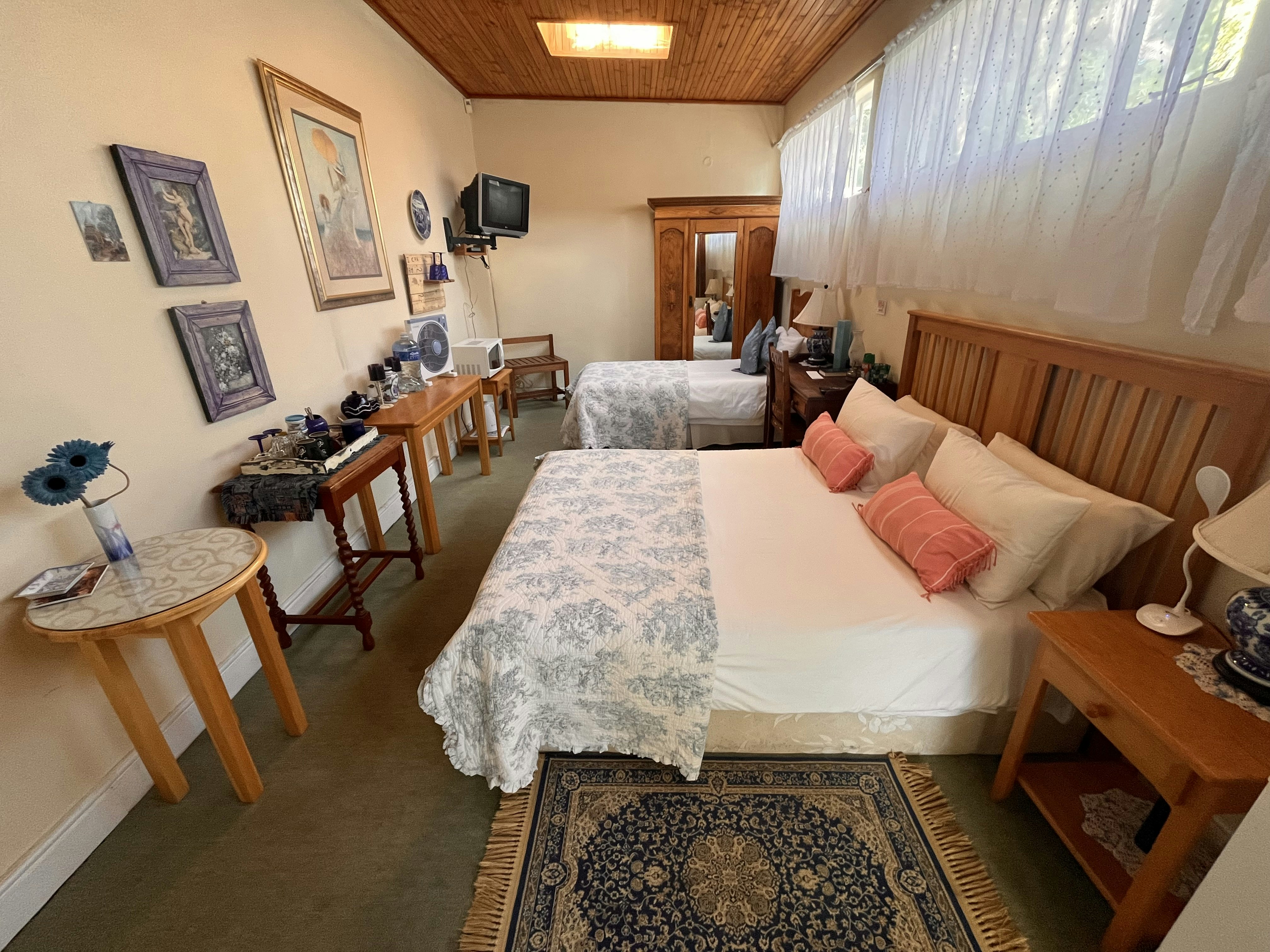 Die akkommodasie bestaan uit 8 stylvolle en volledig gemeubileerde kamers met en suite-badkamers. Elke kamer het sy eie ingang wat direk na die binnehof lei. Geriewe in die kamer sluit 'n TV met DStv-kanale en koffie- en teemaakgeriewe in. Ontbyt word daagliks voorgesit en die vriendelike personeel, Katie en Freda, sal seker maak jy begin jou dag op 'n hoë noot.