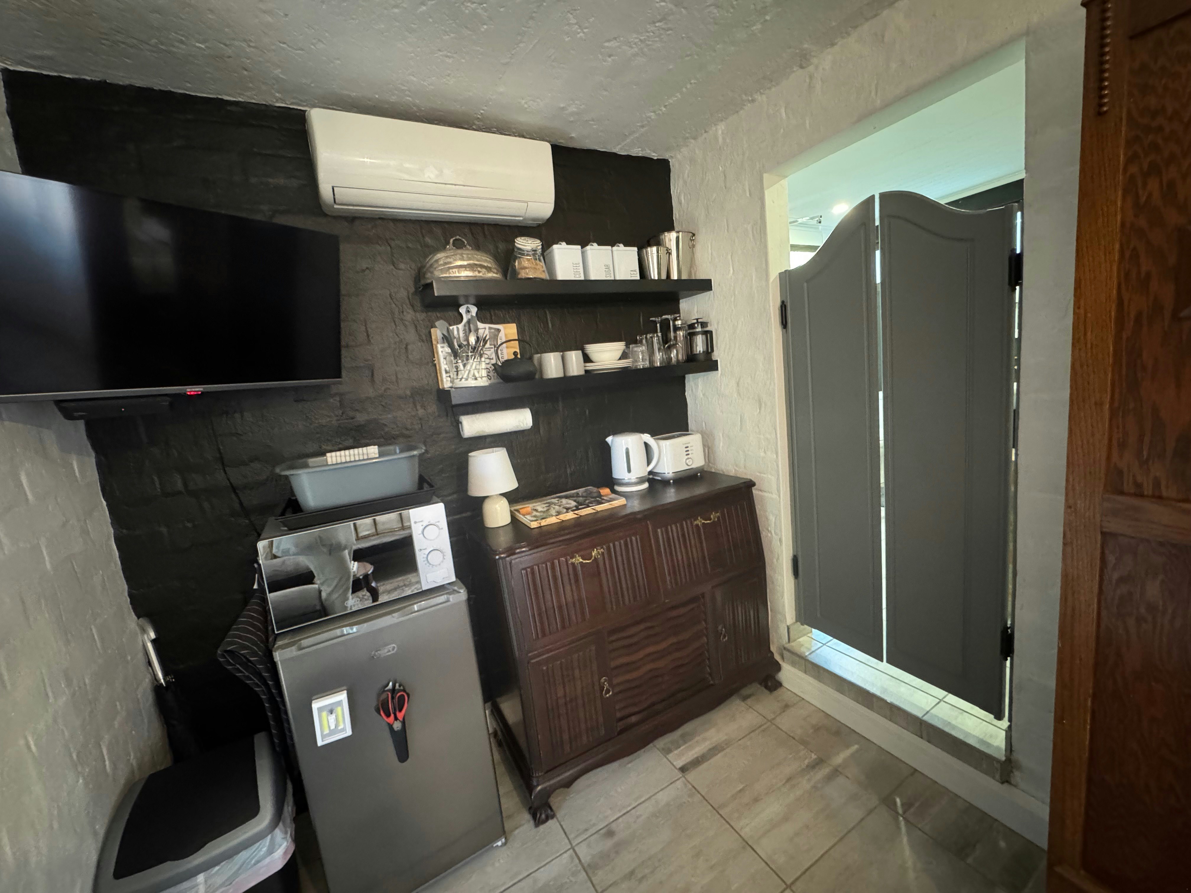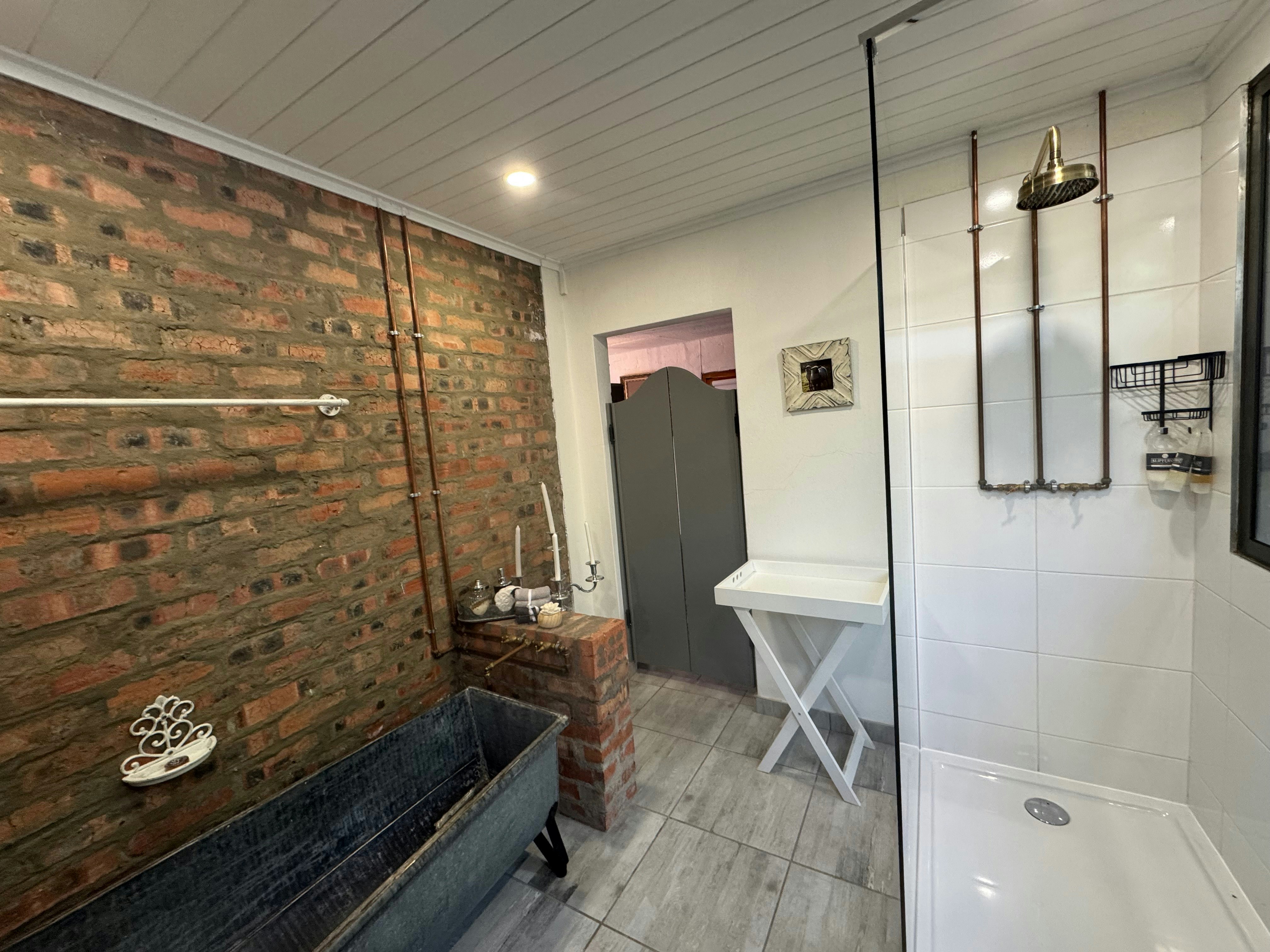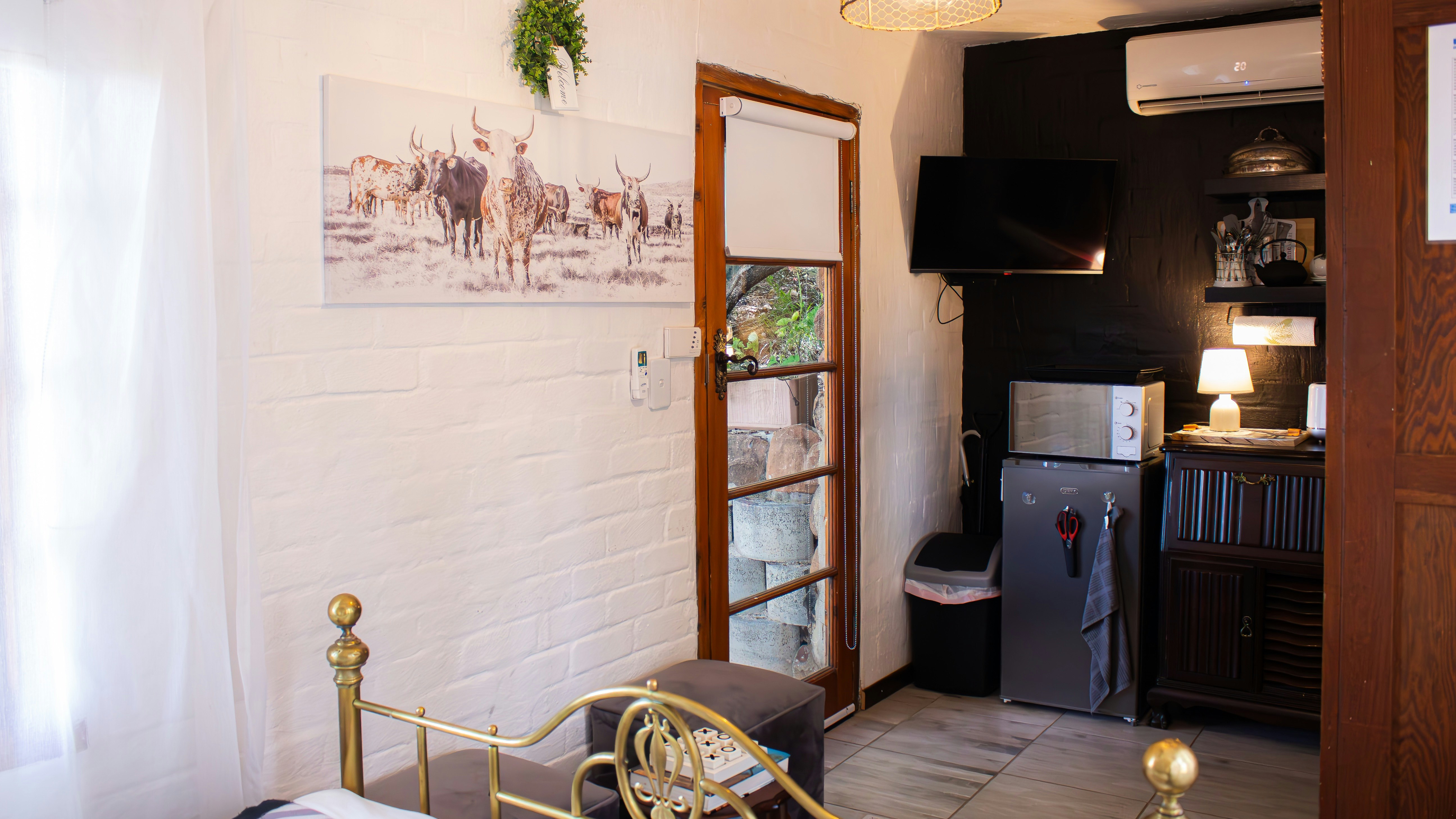 Plaasjapie bied slaapplek vir 4 gaste, ideaal 'n gesin, met die opsie om 'n matras vir 'n ekstra kind onder 12 teen 'n ekstra koste by te voeg. Daar is 2 driekwartbeddens in 'n oop solderarea en 'n koningingrootte-bed in die hoofleefarea. Die aparte badkamer het 'n bad, stort, toilet en 'n wasbak. Hierdie lugverkoelde eenheid het ook 'n verwarmerwaaier en 'n volledig toegeruste kombuis met 'n yskas-vrieskas. Die sitarea het 2 stoele en 'n slim-TV met Netflix- en Stay Essential DStv-kanale. Gratis WiFi is beskikbaar. Die privaat ingeslote patio met vouvensters en 'n plafonwaaier sluit braaigeriewe, 'n tafel met 6 stoele, 'n sitarea met 'n bank en 2 stoele, en 'n uitsig oor die tuin in. Handdoeke en 'n haardroër word voorsien.