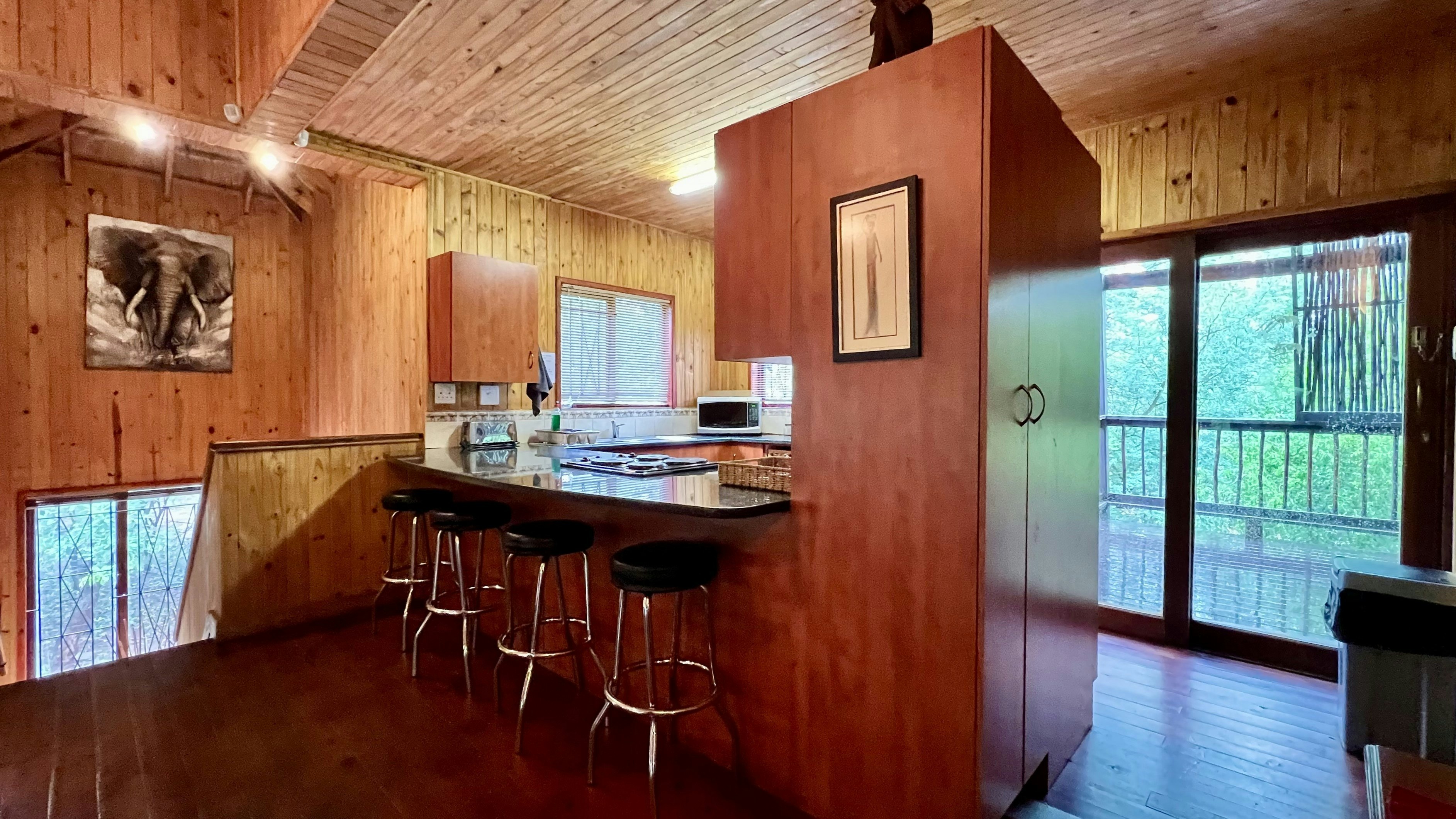 The house can accommodate 6 guests and comprises 3 air-conditioned bedrooms. The main bedroom is situated on the third floor and contains a queen-size bed. This room opens onto a balcony with spectacular views of the Kruger National Park and has an en-suite bathroom fitted with a shower. The second and third bedrooms each contain a double bed. All bedrooms open onto wooden decks. The second bathroom is shared between bedrooms 2 and 3 and is fitted with a shower, toilet and basin.