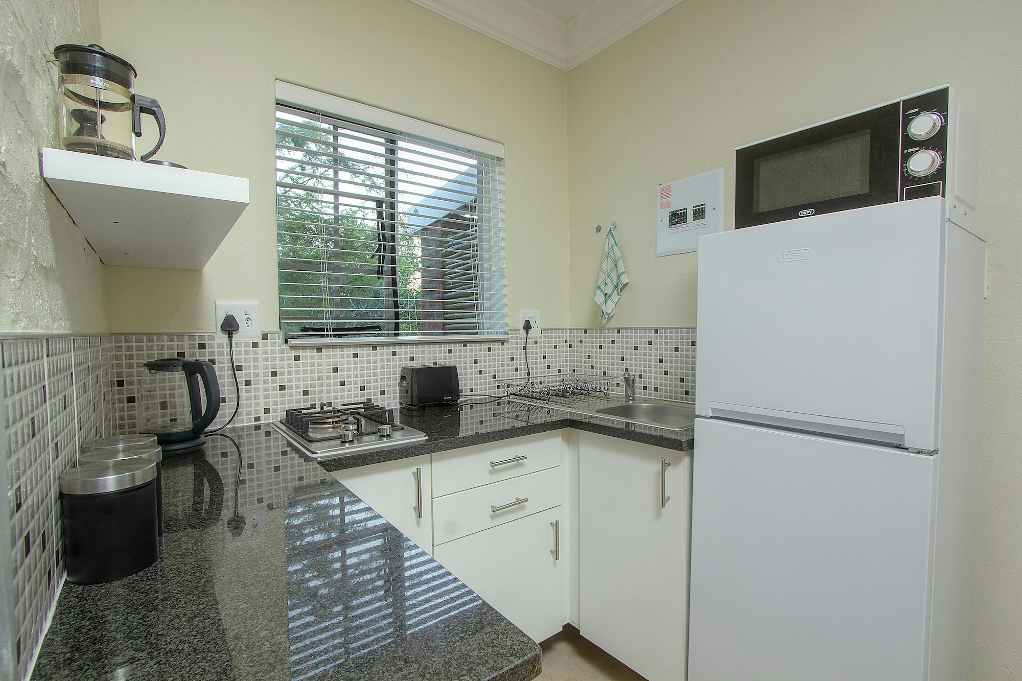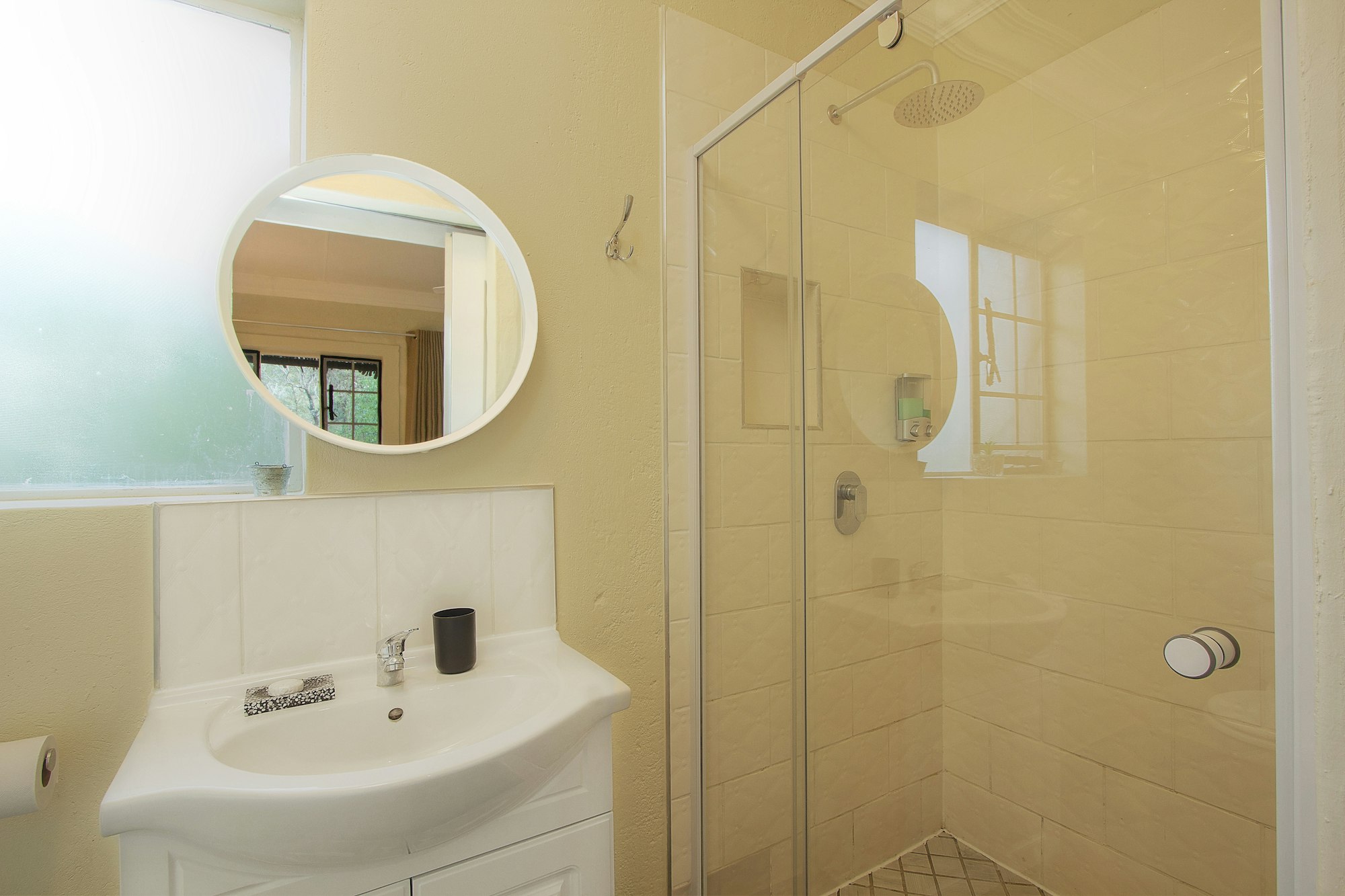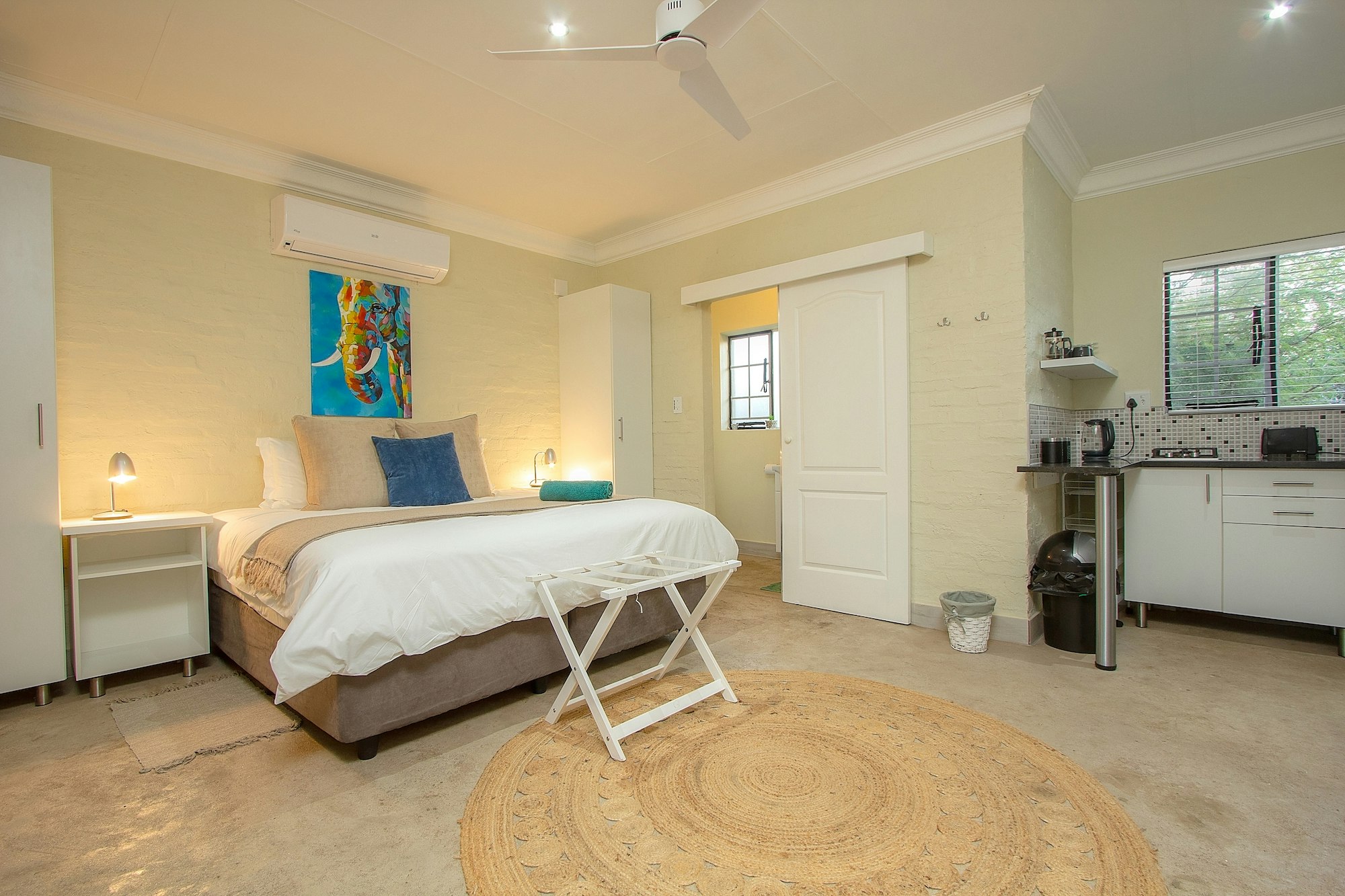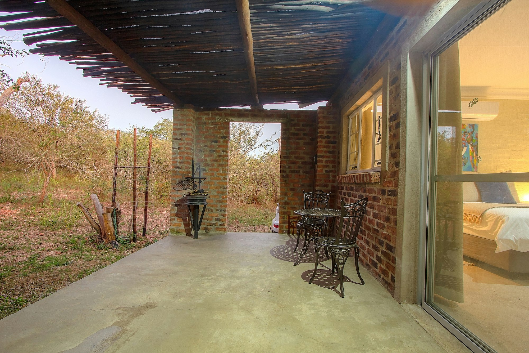 Die eenheid het 'n privaat ingang en maak oop na 'n patio met braaigeriewe. Kruger’s Rest het eksklusiewe toegang tot die buitestort.