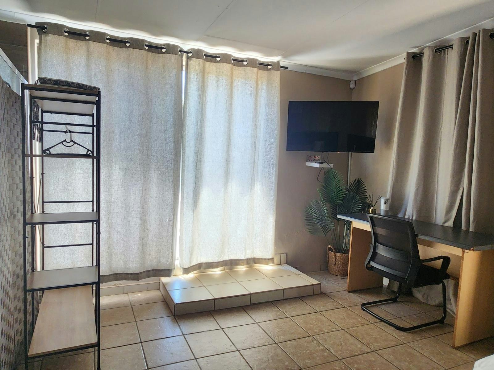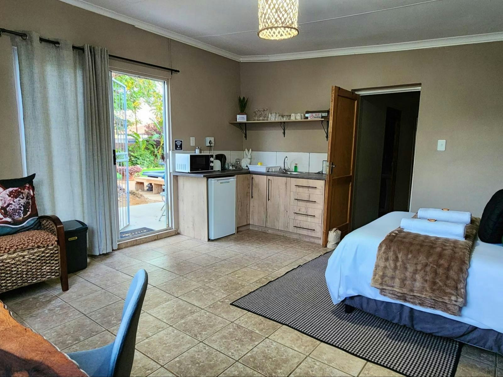 Buite kan gaste ontspan in die welige tuine, kompleet met 'n braai-area en sitplek. Veilige parkering is beskikbaar dwarsdeur die verblyf. Vir diegene wat wil verken, is Mokala Mall net 1.7 km weg, en die Oog van Kuruman is 3.5 km vanaf die kothuis.