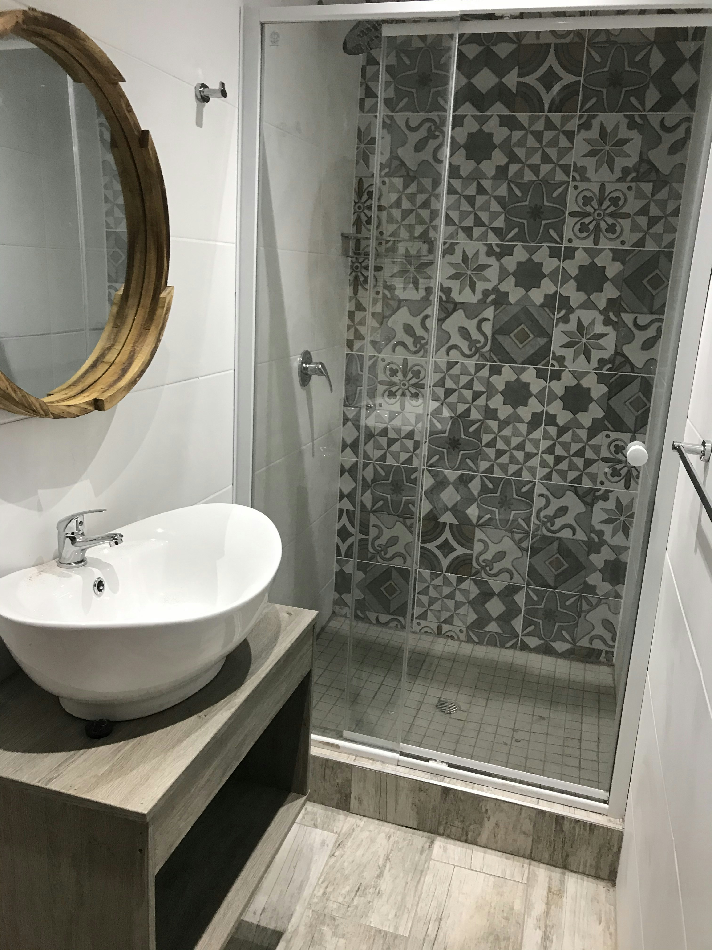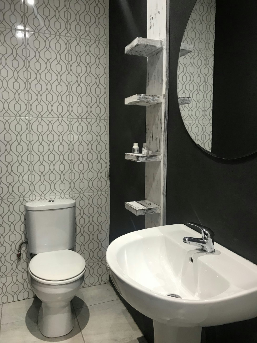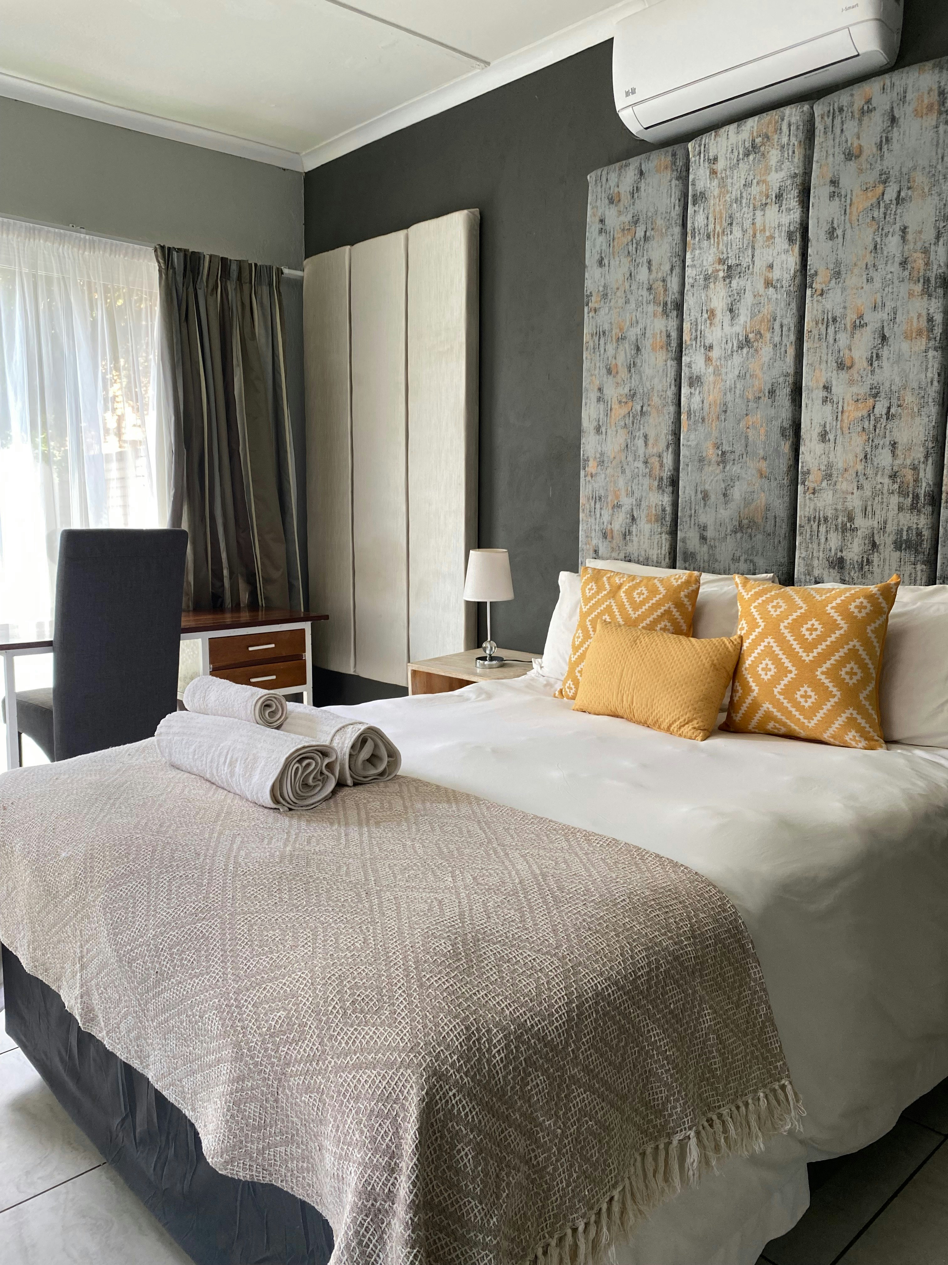 Die Standaardkamer het 'n koninggrootte-bed en die badkamer het ’n stort, toilet en ’n wasbak.