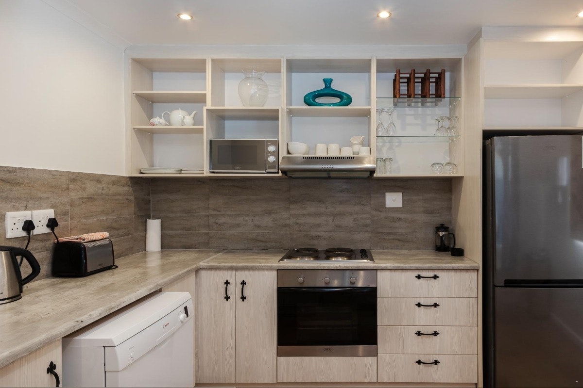 Die kombuis is volledig toegerus met 'n stoof, oond, yskas-vrieskas, mikrogolf, koffie- en teemaakgeriewe, breekware en eetgerei. Die sitkamer bied gemaklike rusbanke, 'n TV met sekere DStv-kanale en 'n eetarea met oorgenoeg sitplek vir gaste om hul maaltye saam te geniet. Komplimentêre WiFi is ook beskikbaar.