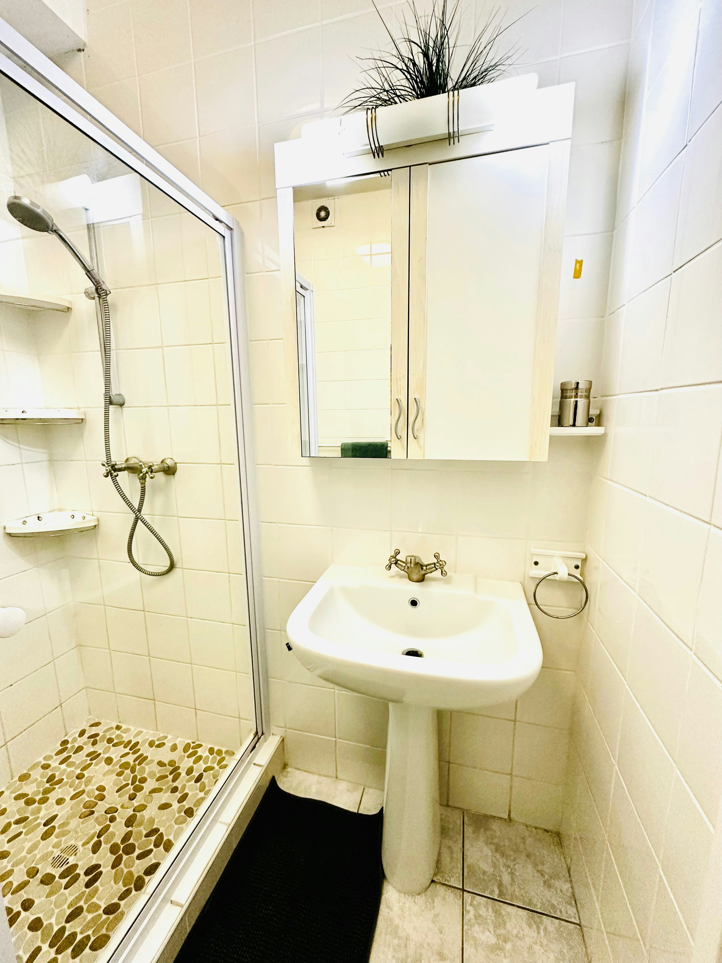 The apartment comfortably accommodates up to 8 guests in 3 well-appointed bedrooms and 2 bathrooms. The main bedroom features a king-size bed and an en-suite bathroom with a shower. The second bedroom is furnished with a queen-size bed, while the third bedroom includes 2 child-only bunk beds. A separate bathroom with a bath is shared among the remaining rooms. Wi-Fi is available to keep guests connected during their stay.