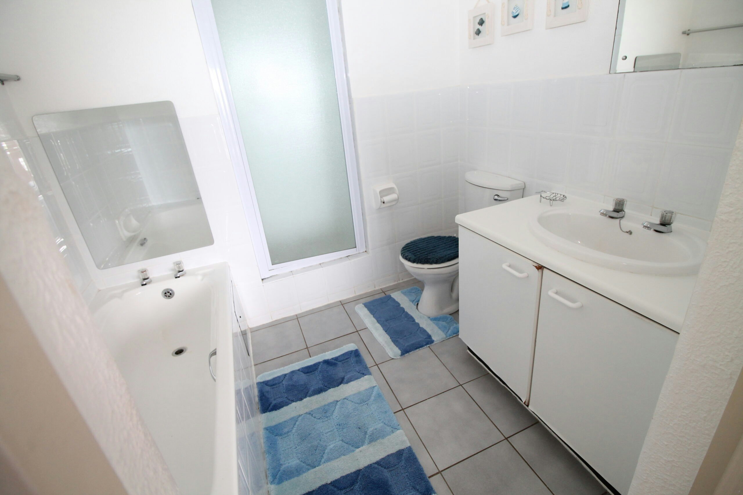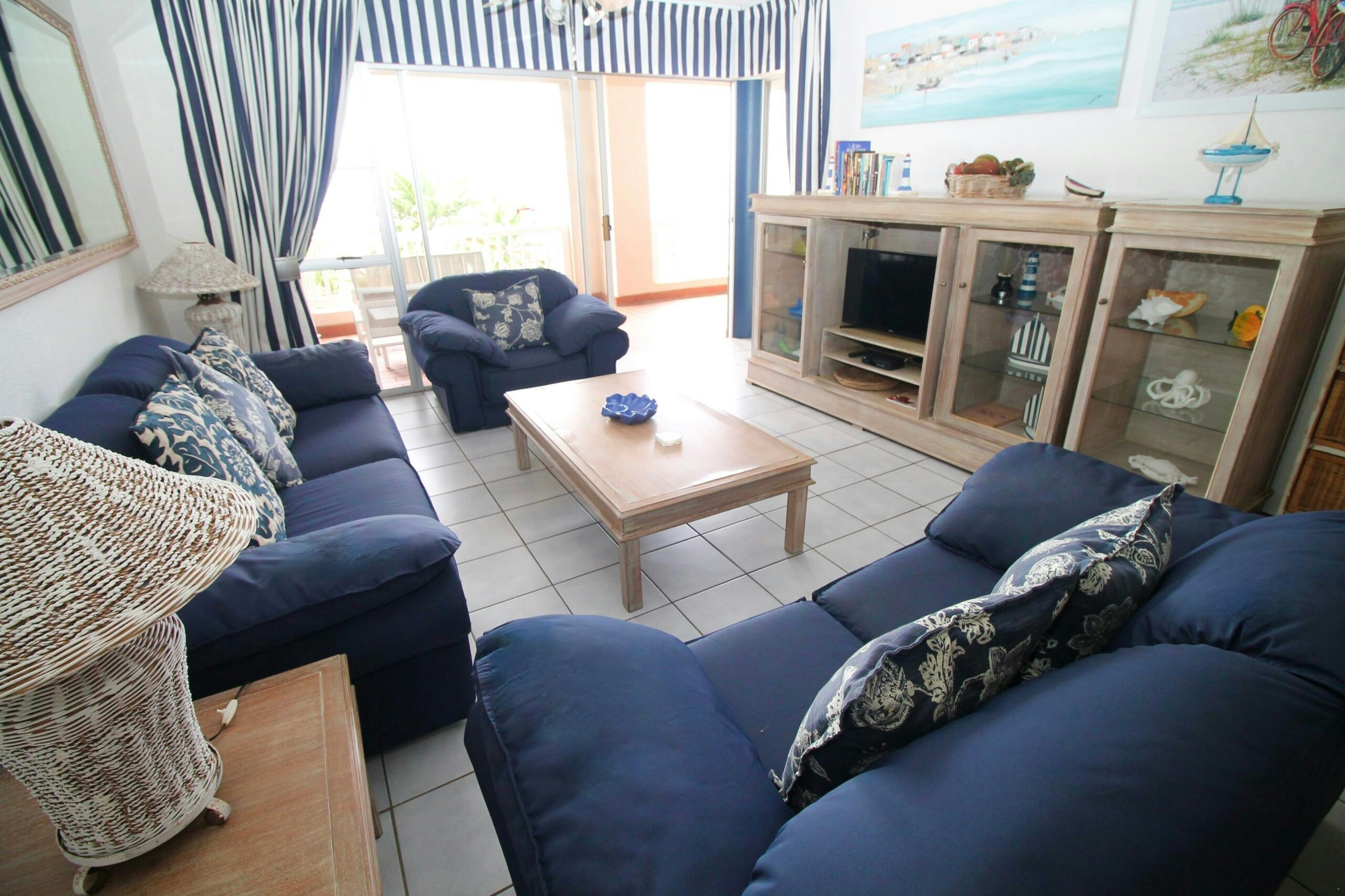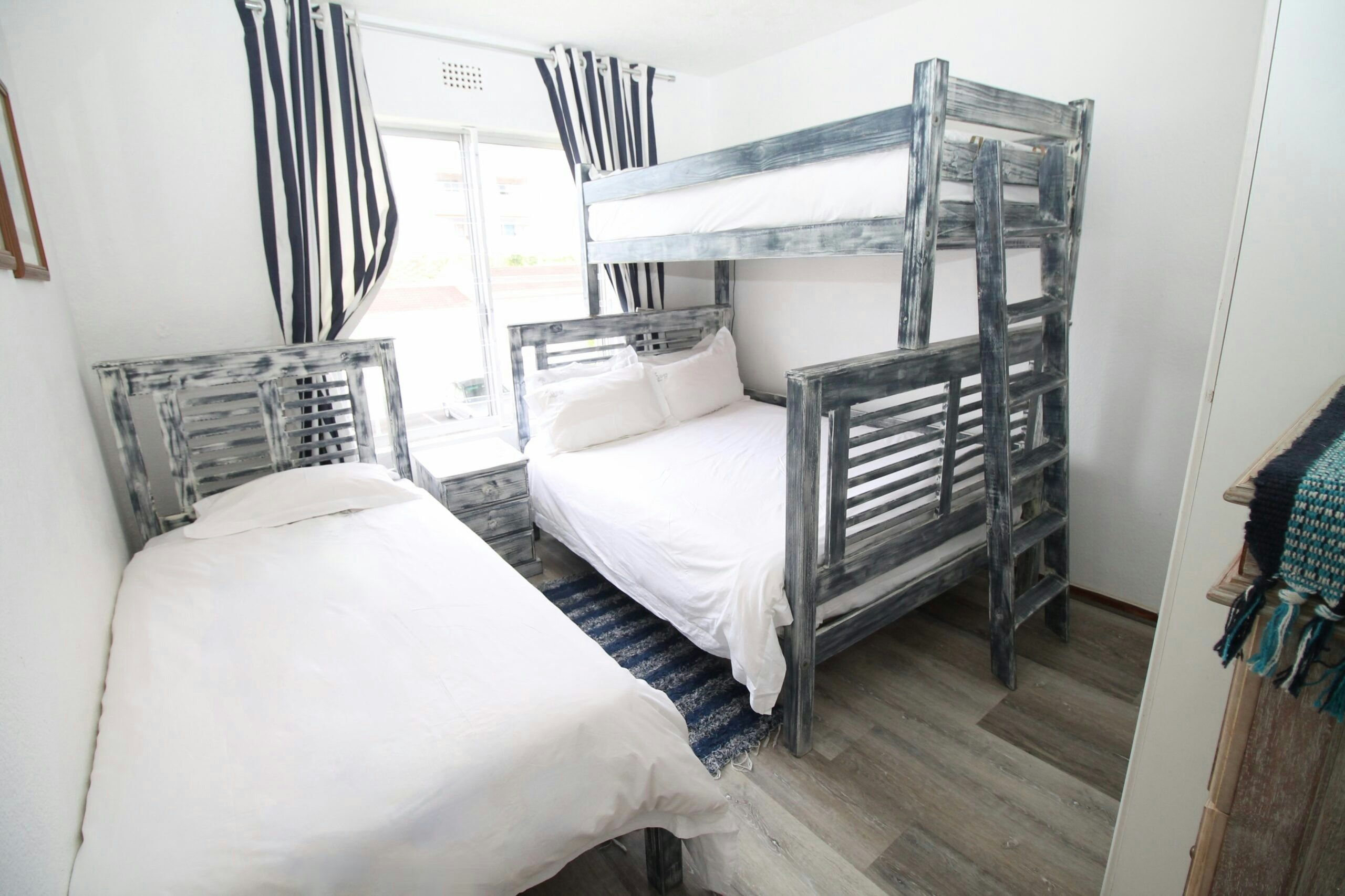 Die woonstel is op die boonste verdieping, het lieflike strand- en see-uitsigte en beskik oor 3 slaapkamers en 2 badkamers. Die hoofslaapkamer het 'n dubbelbed en 'n en suite-badkamer met 'n bad en 'n stort. Die kamer het 'n kluis vir waardevolle items en die hoofslaapkamer en sitkamer lei na 'n lekker groot balkon. Die ander 2 kamers het elk 'n tripelstapelbed en deel 'n badkamer met 'n stort. Alhoewel linne, kussings en komberse voorsien word, moet gaste asseblief hul eie handdoeke, toiletpapier, toiletware en skoonmaakmiddels vir die kombuis saambring. Dit sluit opwasseep, skuurders en vadoeke in. Skoon hoë-gehalte linne, matrasse en kussings word voorsien. Gaste moet asb. hul eie strandhanddoeke saambring.