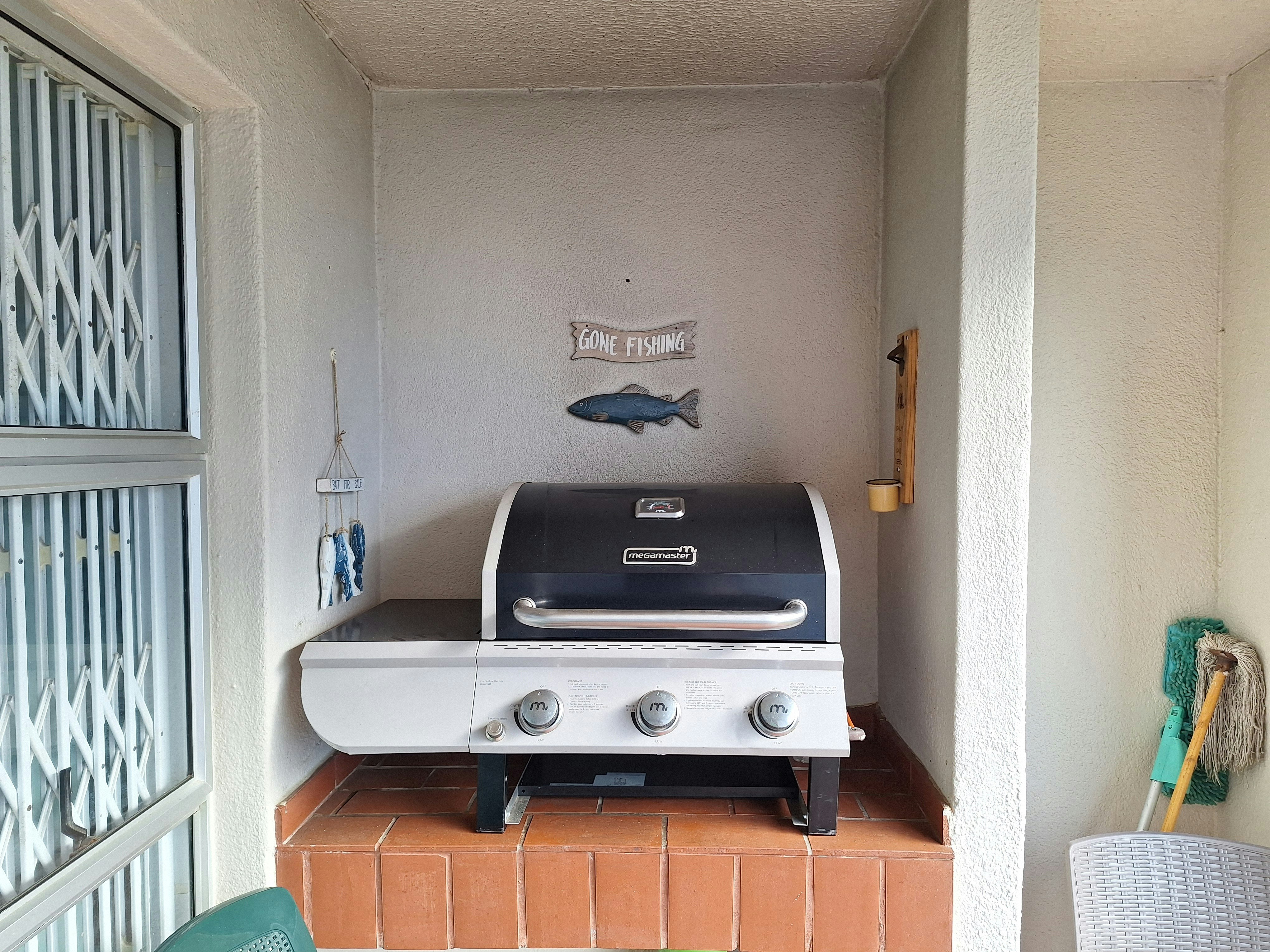 The complex also boasts a communal swimming pool, braai facilities, a clubhouse, a tennis court, and secure undercover parking for cars. There is 24-hour security at the premises. Gasbraai on the patio.