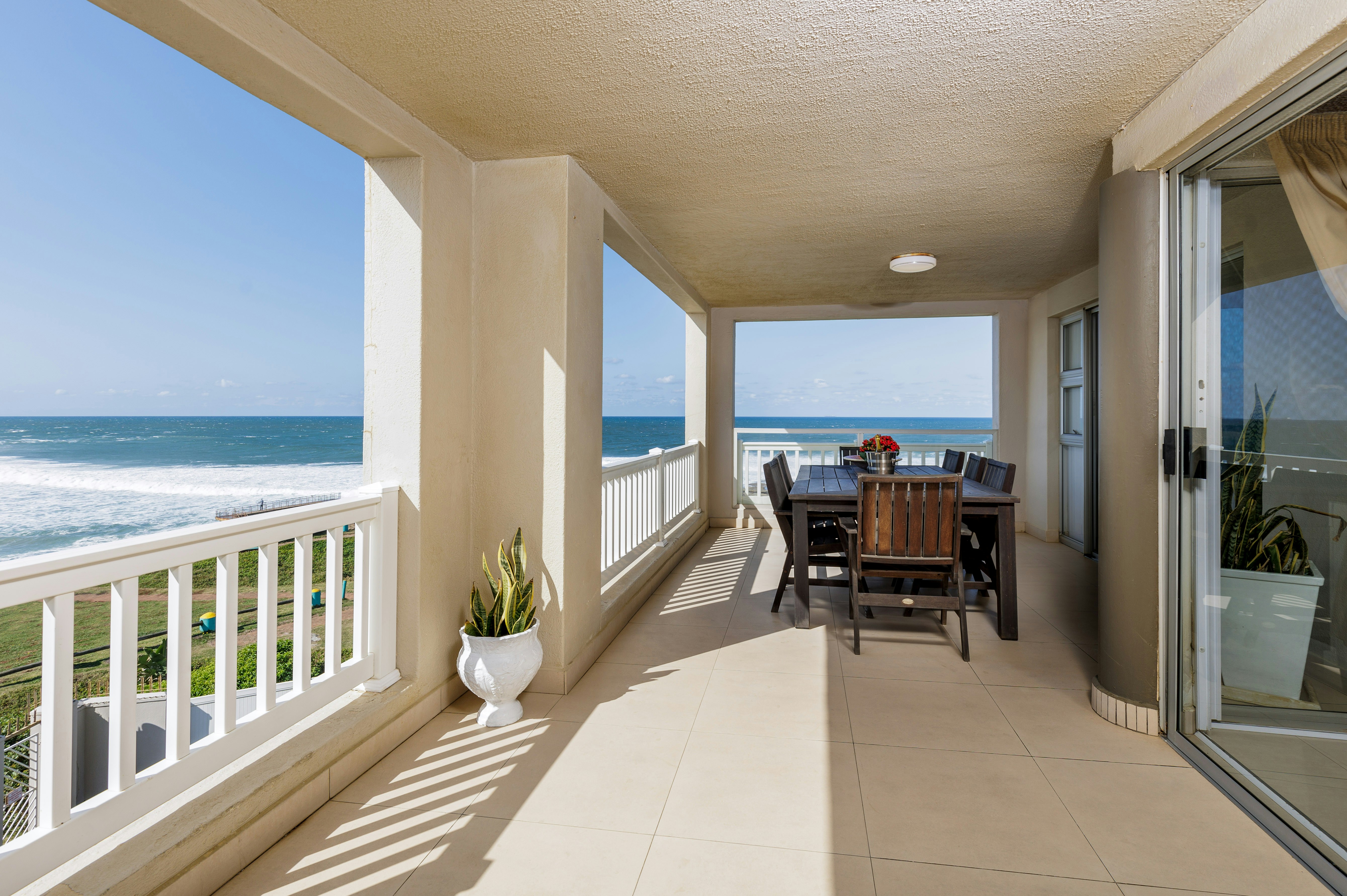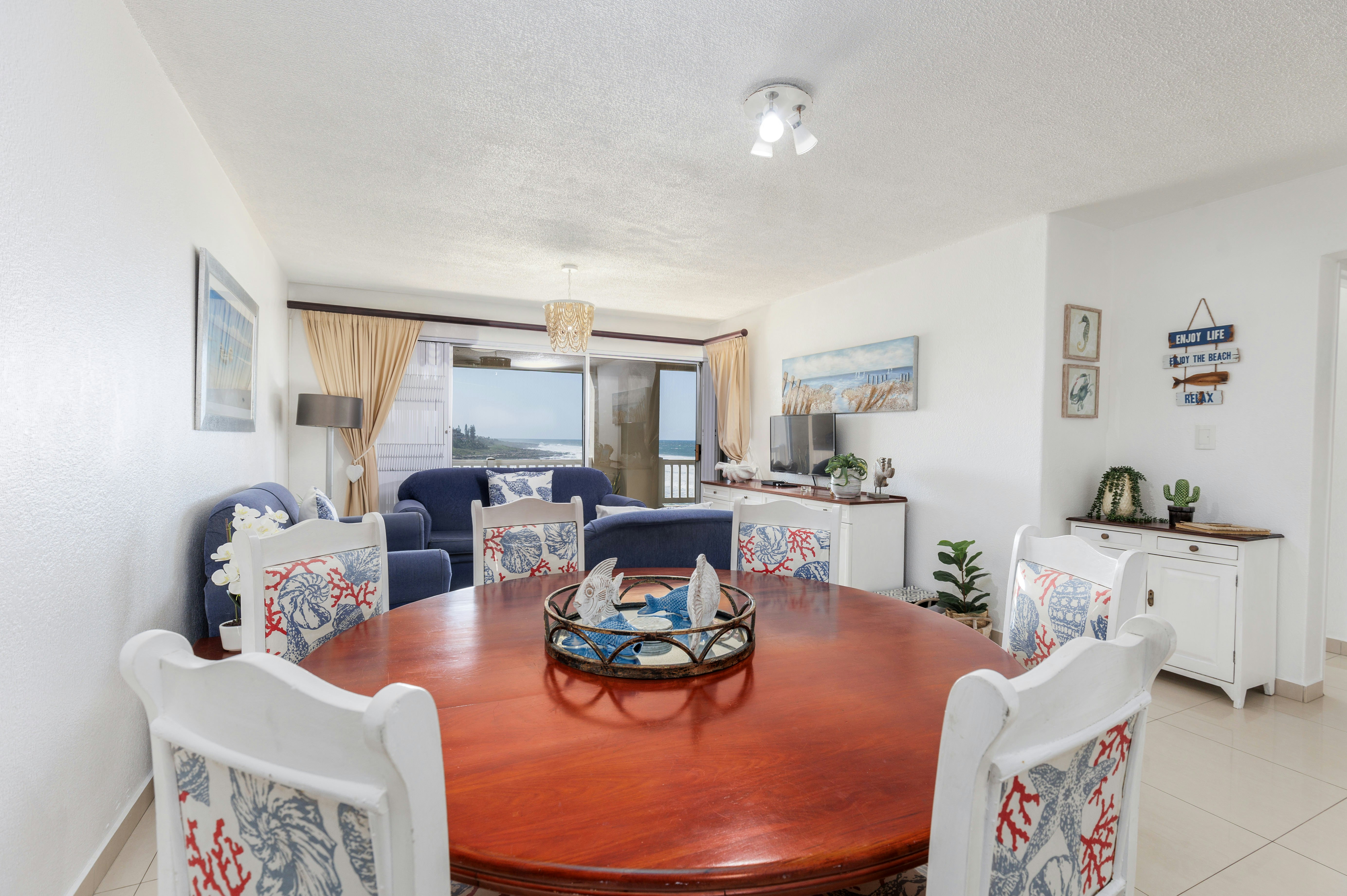 Laguna La Crete 26 is a stylishly decorated three bedroom apartment with breathtaking sea-views. It offers self-catering accommodation and is located in a secure complex, situated in Uvongo. The complex is ideally situated overlooking the beach, and a short drive from other attractions and facilities in the Margate area. Please note that no parties, noise, loud music or extra guests are allowed. Maximum 4 adults.