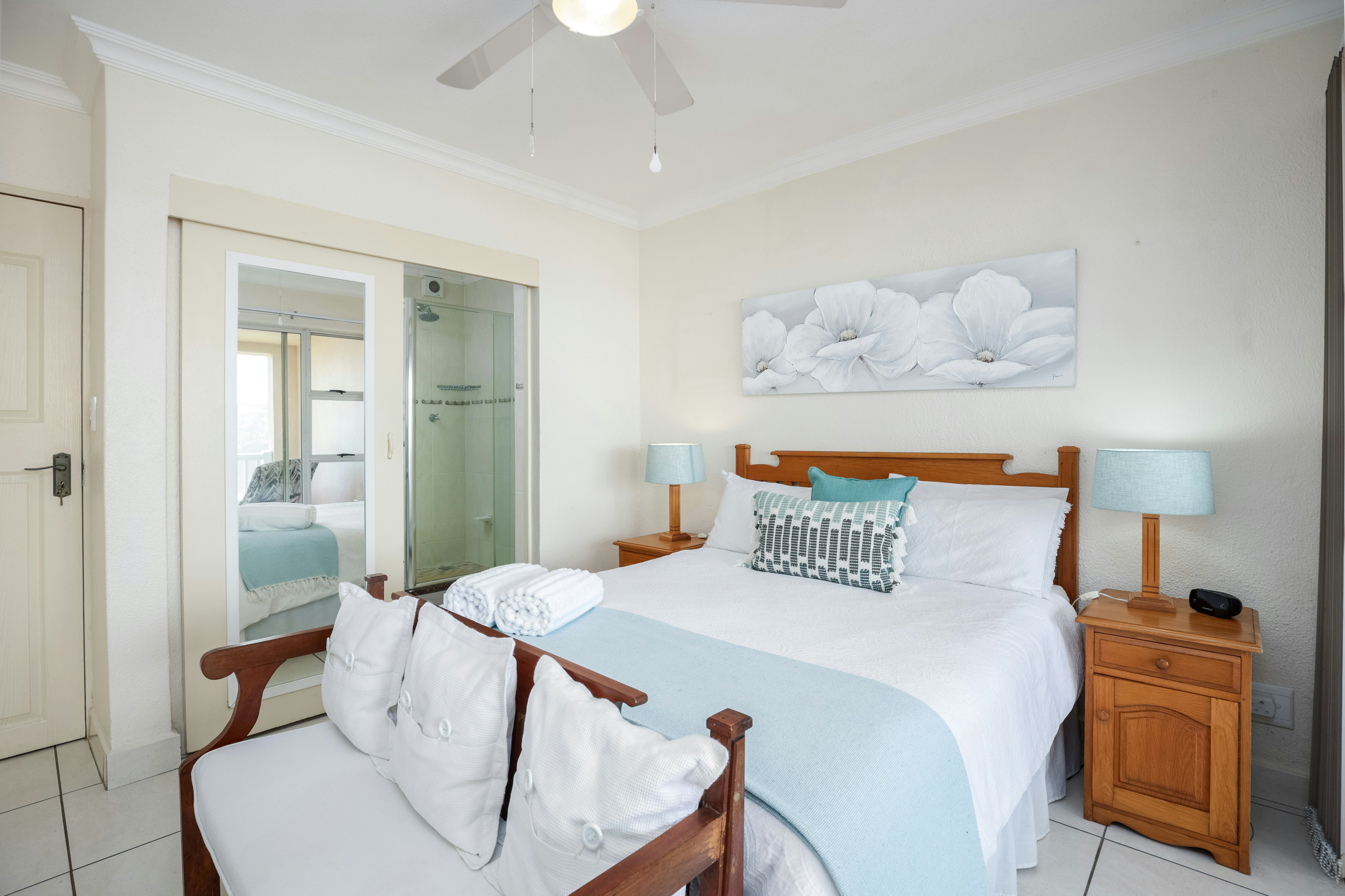 Dié woonstel is op die eerste verdieping en bied slaapplek aan 4 volwassenes en 2 kinders in 3 slaapkamers en daar is 2 badkamers. Die hoofslaapkamer het 'n koningingrootte-bed en 'n en suite-stort. Die tweede slaapkamer het 'n dubbelbed en die derde slaapkamer het 'n stapelbed en 'n enkelbed, 'n wasmasjien, tuimeldroër. Die tweede en derde slaapkamer deel 'n badkamer met 'n bad en stort.