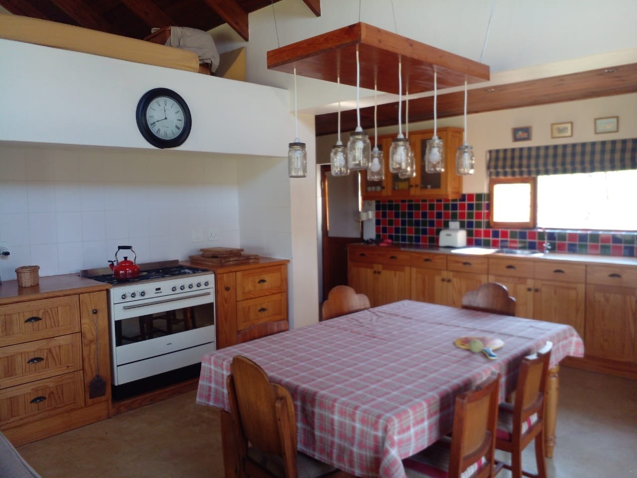 Die oopplan-kombuis is volledig toegerus vir selfsorg en sluit 'n stoof en oond, mikrogolfoond, yskas en 'n eetkamertafel in. Die sitkamer bied 'n knus kaggel en 'n enkelslaapbank vir 'n kind. Die leefarea maak oop na 'n patio met pragtige uitsigte oor die omliggende wingerde en perde. 'n Speelarea word ook vir kinders voorsien.