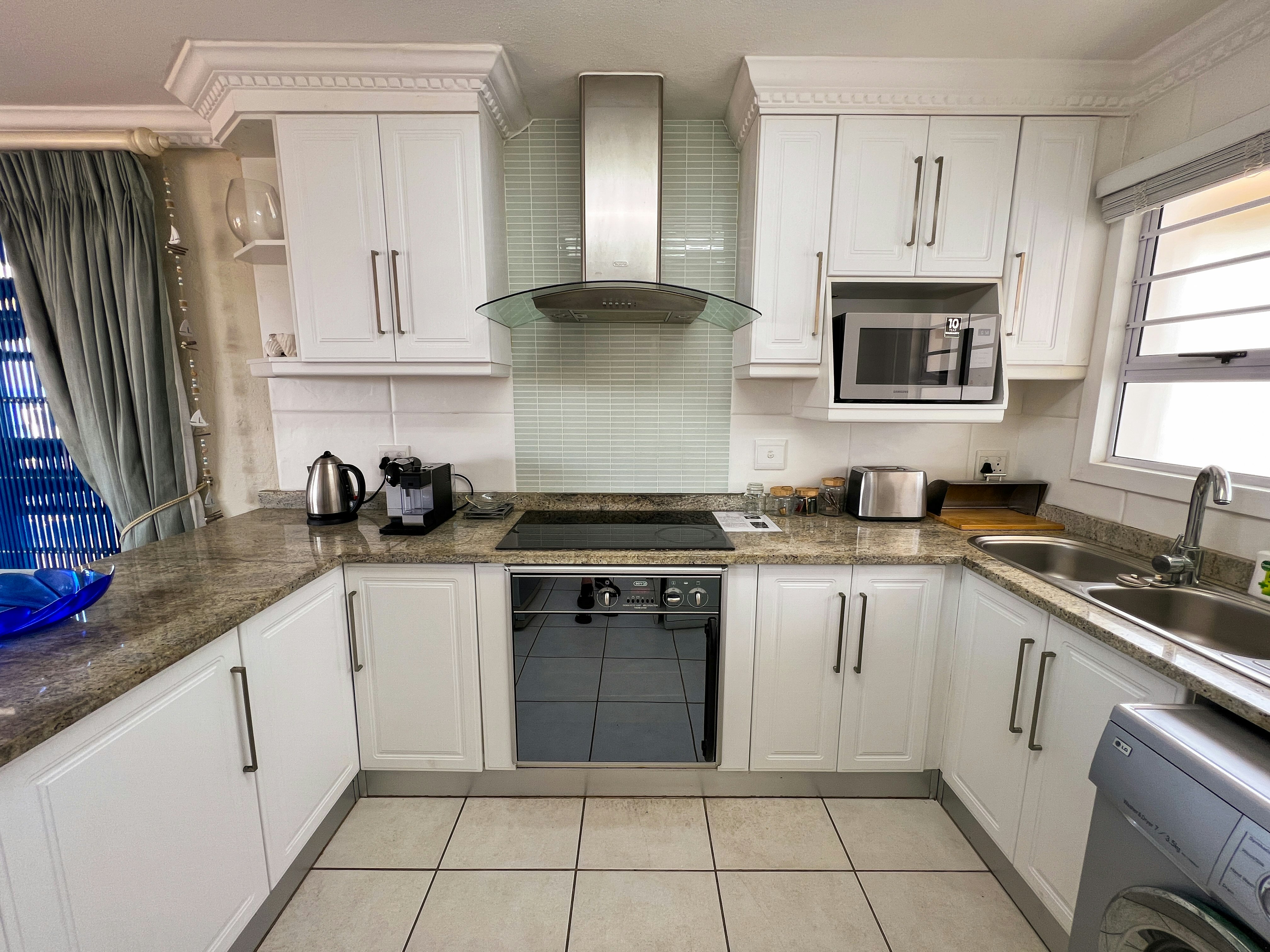 The main bedroom opens onto a quaint rooftop seating area where guests can enjoy a morning coffee. The living area opens onto a spacious entertainment patio with an outdoor dining table under an umbrella, a portable braai as well a lounging corner which is a great spot for guests to enjoy a sundowner in the evening. Guests have full access to the complex’s communal swimming pool area where they can cool off on those hot summer days.