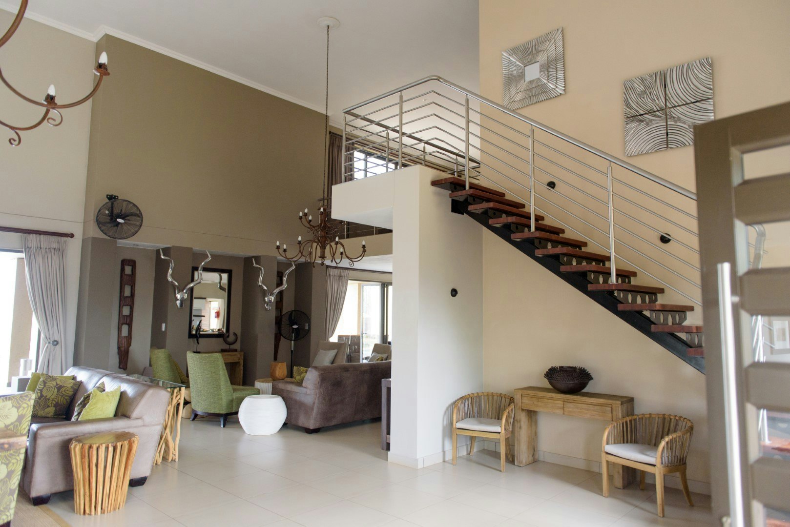 Daar is ook 'n sitkamer, eetkamer, kombuis, raadsaal, groot patio, 'n kuierarea met braaigeriewe en 'n swembad. Die villa bied eksklusiewe en persoonlike diens wat 'n dienskneg, privaat veldwagter en wildkykvoertuig insluit.