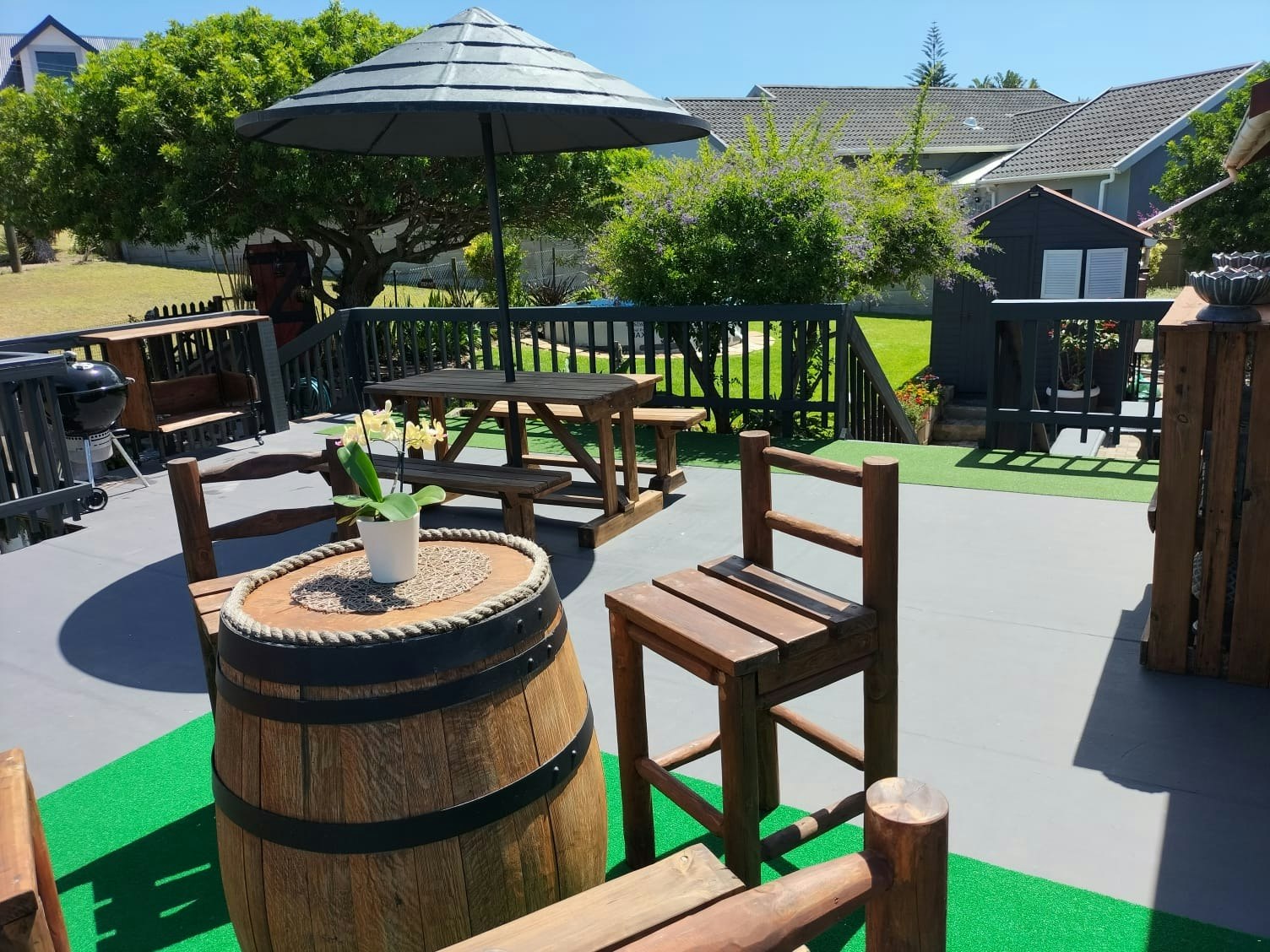 Op die buitedek is daar 'n tafel met stoele, 'n braaitrollie en Weber-braai. Daar is 'n swembad en tuin. Die eiendom is omhein en honde is welkom.