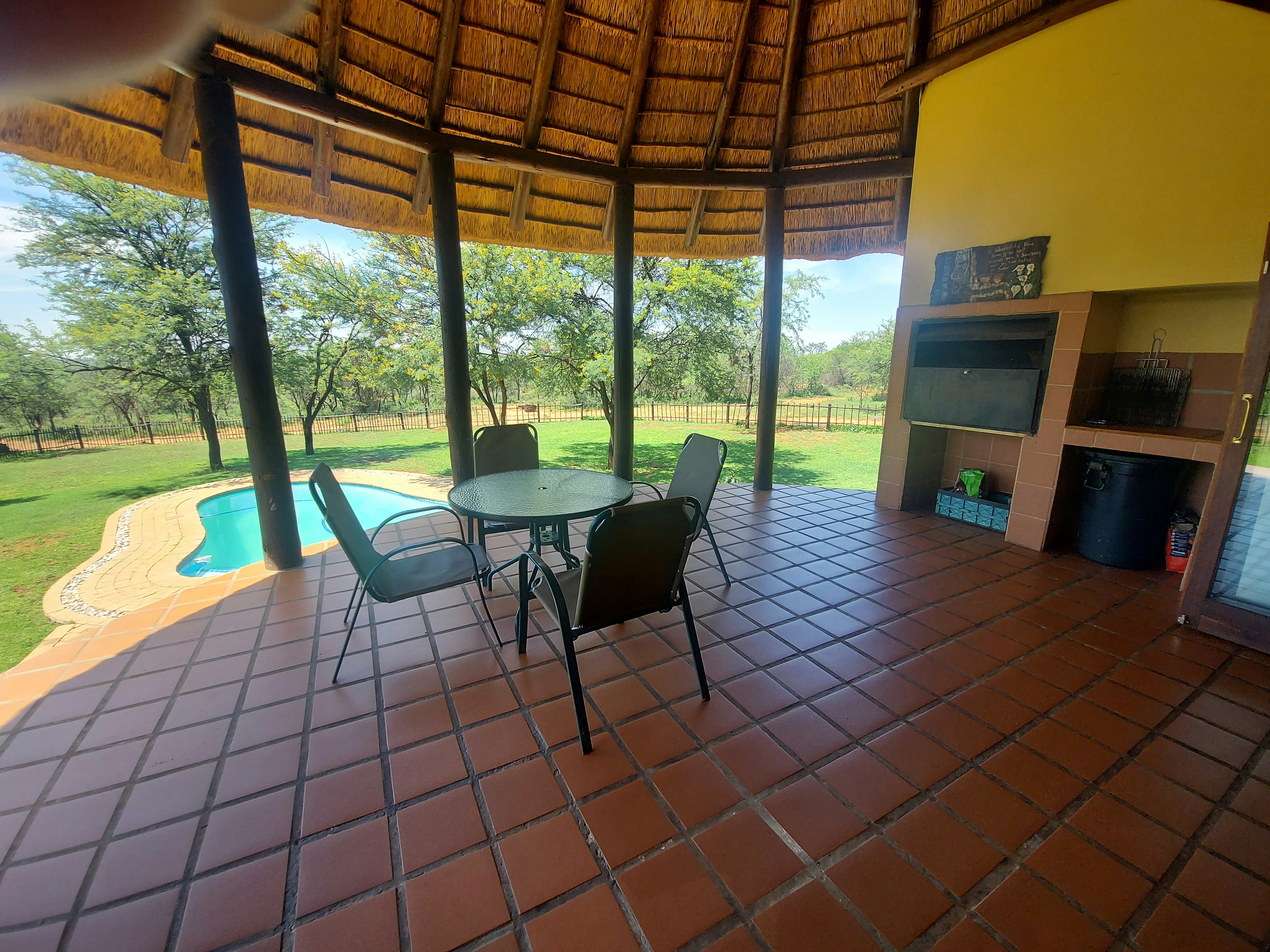 Die ruim patio beskik oor 'n Jacuzzi, 'n ingeboude kaggel en 'n TV met volle DStv-toegang. WiFi word ook voorsien. Die patio bied asemrowende uitsigte oor die omliggende bosveld. Buite kan gaste 'n ooplug-boma-area geniet, ideaal vir 'n bosveldbraai, sowel as 'n swembad om af te koel op warm dae.