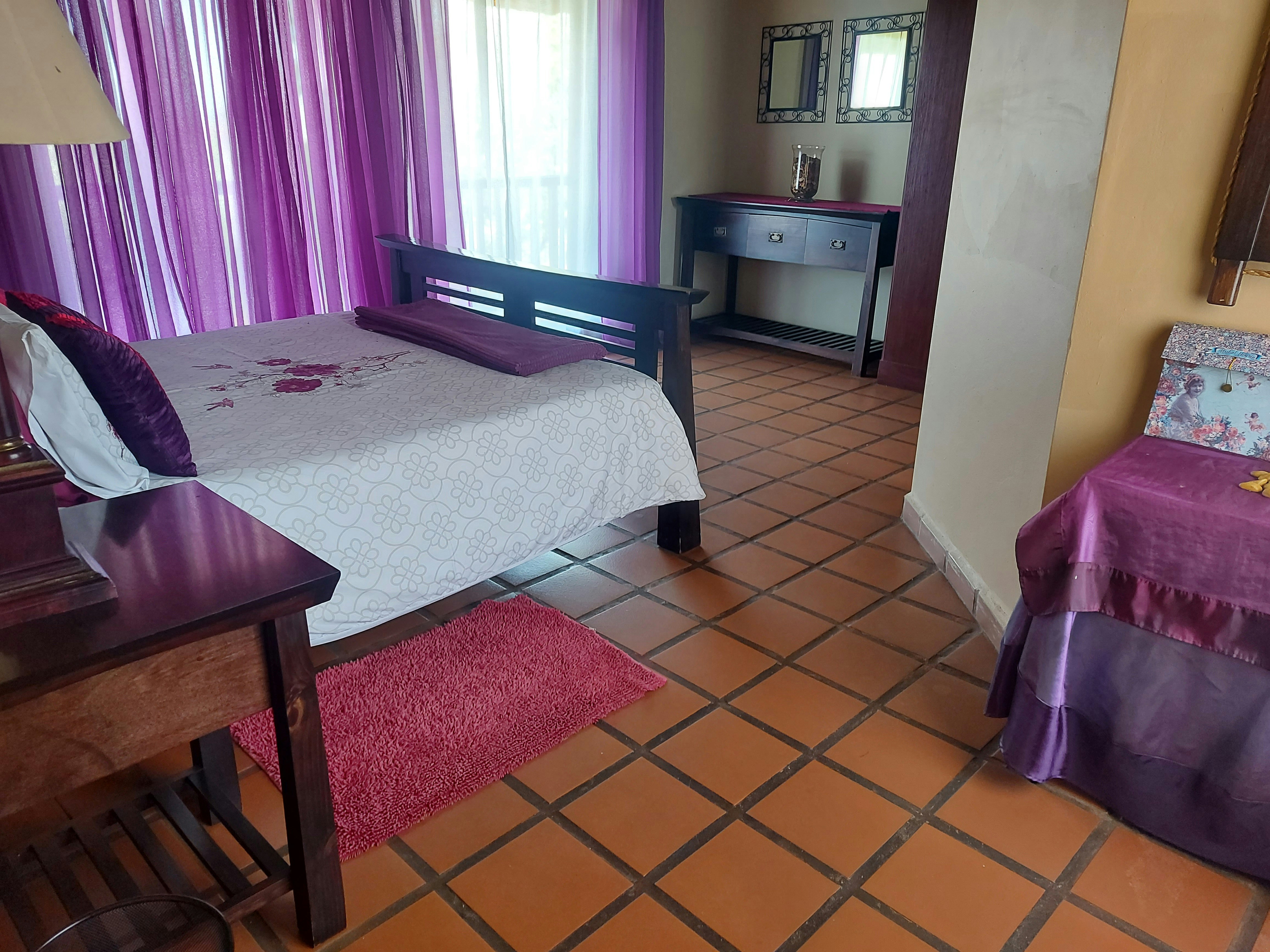 Hierdie stylvolle grasdakhuis beskik oor vier slaapkamers: twee hoofslaapkamers elk met 'n dubbelbed en 'n en suite-badkamer, 'n derde slaapkamer met 'n dubbelbed en 'n enkelbed, en 'n vierde slaapkamer ook gemeubileer met 'n dubbelbed en 'n enkelbed. Daarbenewens is daar 'n area met enkelbeddens wat óf as 'n vyfde slaapkamer óf as 'n oop slaapplek vir kinders of 'n paartjie kan dien. 'n Gedeelde badkamer en 'n aparte gastetoilet is beskikbaar vir die oorblywende kamers.