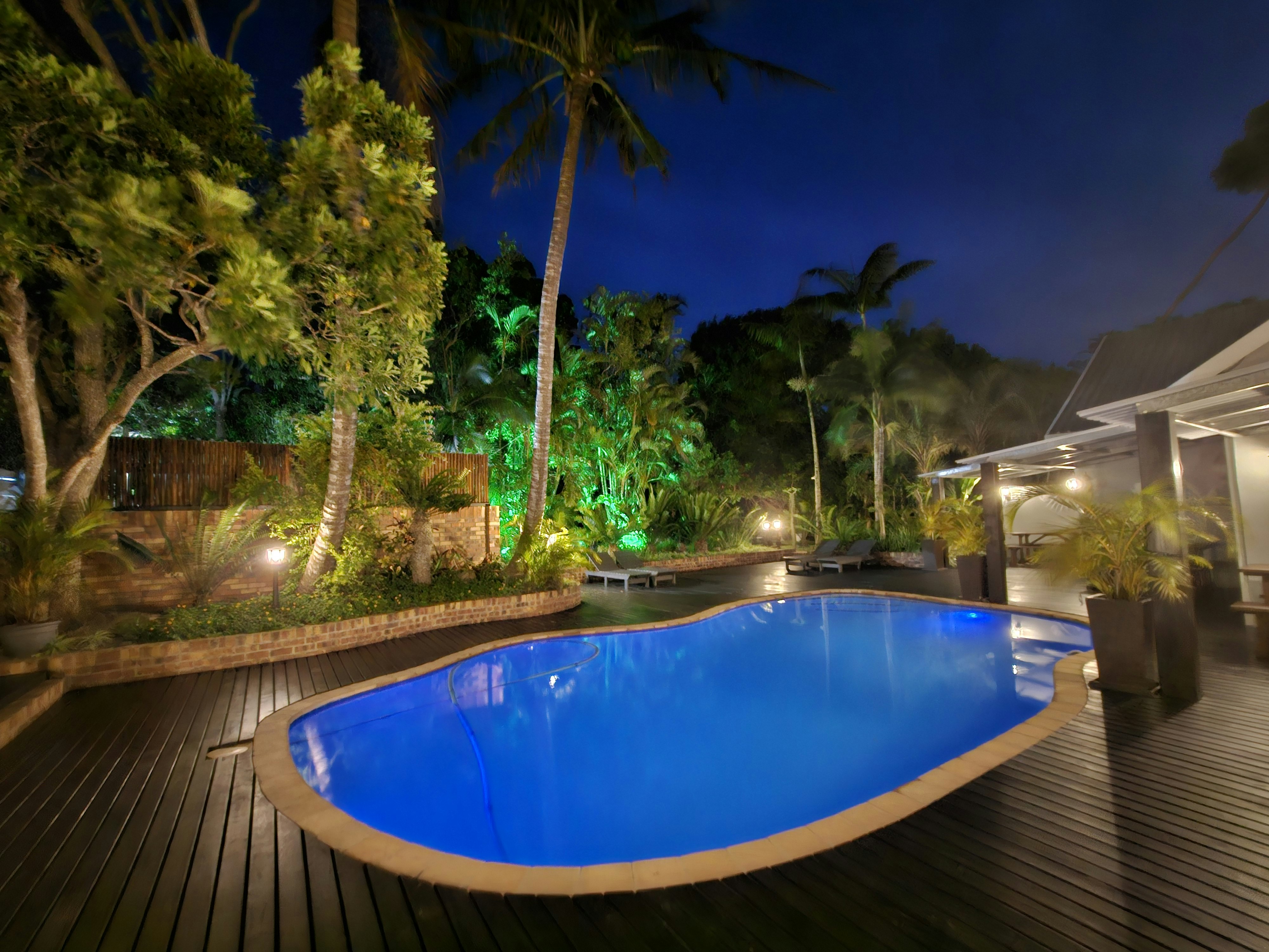 Die lodge is nie omring deur 4 betonmure nie, wat beteken dat gaste 'n uitsig oor die woud en wild van St. Lucia sal hê. Gaste het die geleentheid om te sien hoe seekoeie die lodge snags verbysteek, etlike meters van die lodge af. Gaste kan ook dalk ander diere insluitend verskeie voëlspesies, apies, wildsbokke, vlakvarke, bosvarke en elke nou en dan luiperds en hiënas sien. Die lodge is stapafstand vanaf die strand en dorp.