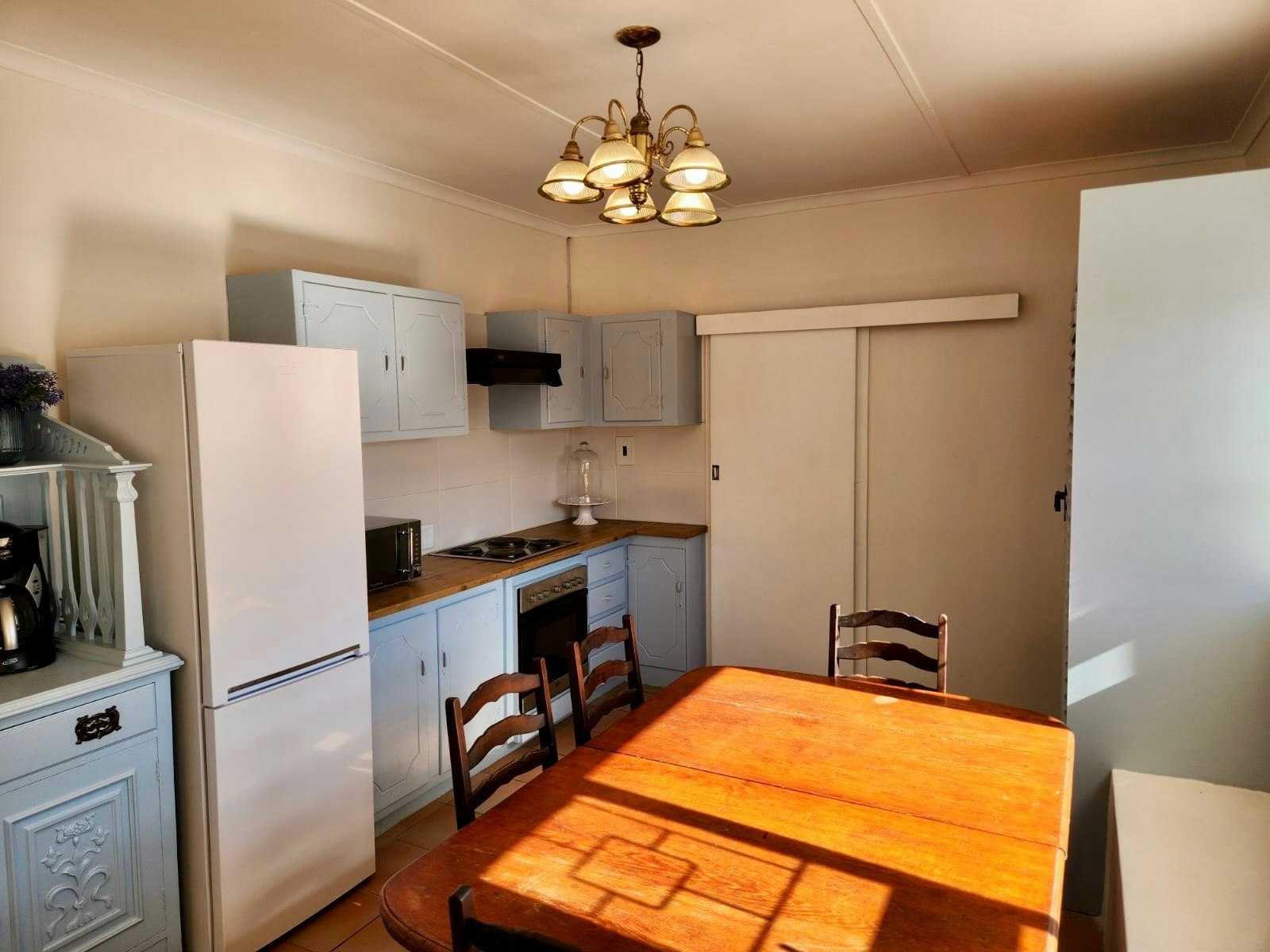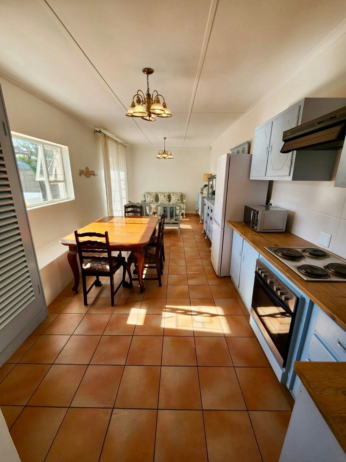 Die Gesinswoonstel is in 'n gedeelde gedeelte van die eiendom geleë. Dit sluit in 'n Tweepersoonskamer met 2 enkelbeddens, 'n Standaard Koninginkamer met 'n koningingrootte bed en 'n Dubbelkamer met 'n dubbelbed. Hierdie 3 kamers deel 'n badkamer, 'n kombuis, 'n eetarea en 'n leefarea wat oopmaak na 'n braai- en vermaaklikheidsarea. Die kombuis is toegerus met 'n yskas, mikrogolfoond, stoof, ketel en noodsaaklike eetgerei. Hierdie gedeelte het ook 'n Slim-TV in die eetkamer en 'n aparte privaat ingang.