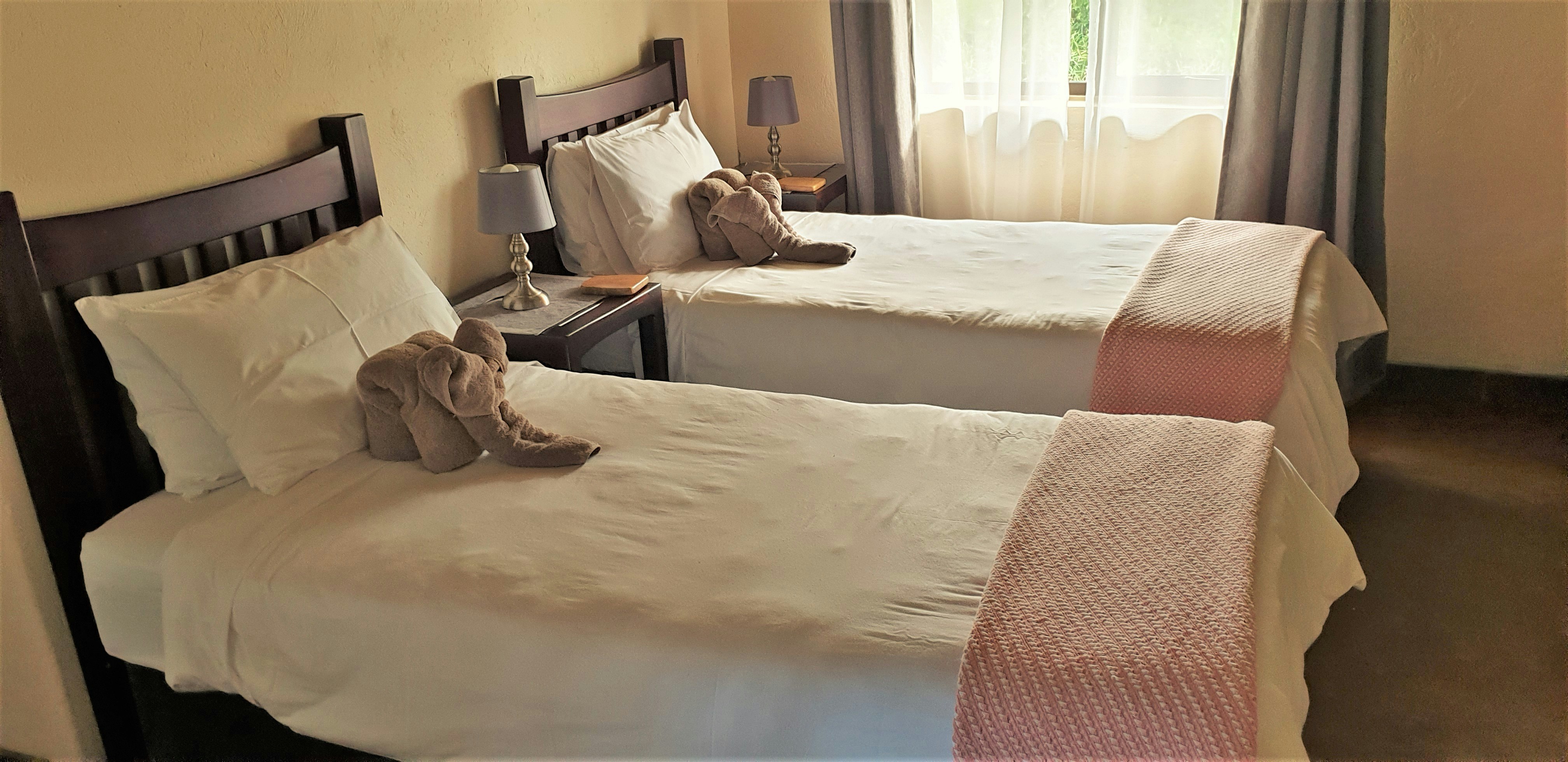 Daar is 1 gesin-suite met 2 slaapkamers wat aaneenskakel, en 1 aparte gastekamer met slaapplek vir maksimum 2 gaste. Die gesinskamer het 'n en suite-badkamer wat gedeel word en die Lions-kamer het 'n en suite-badkamer met 'n bad en stort. Die slaapkamers is elkeen ingerig met koninggrootte-beddens of 2 enkelbeddens en elkeen het 'n en suite-badkamer óf ’n badkamer wat gedeel word. Elke kamer het gratis WiFi, lugversorging of ’n plafonwaaier, ’n haardroër en tee- en koffiemaakgeriewe, sowel as 'n privaat dek met 'n uitsig oor die watergat.