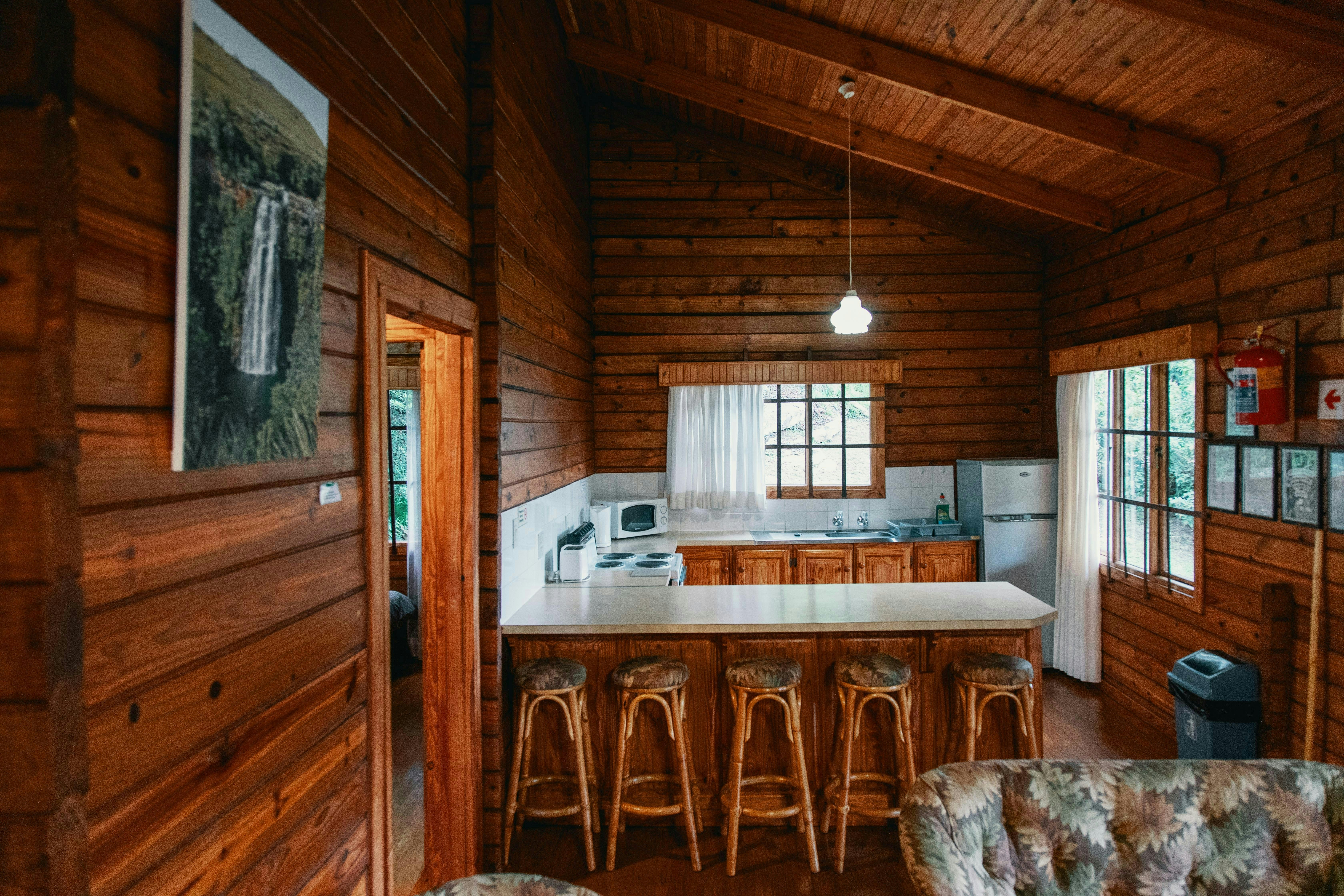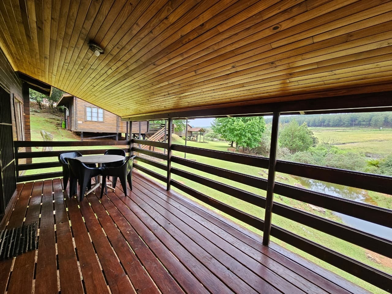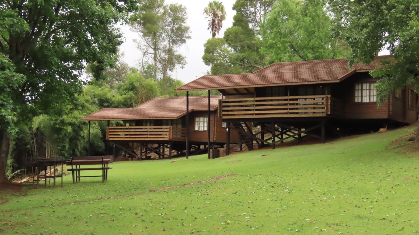 Die Houthutte het elk 'n slaapkapasiteit van 4 volwassenes en 1 kind en bestaan uit 2 slaapkamers en 1 badkamer. Die badkamer is toegerus met 'n stort-oor-bad, wasbak en toilet. Linne en handdoeke word voorsien.