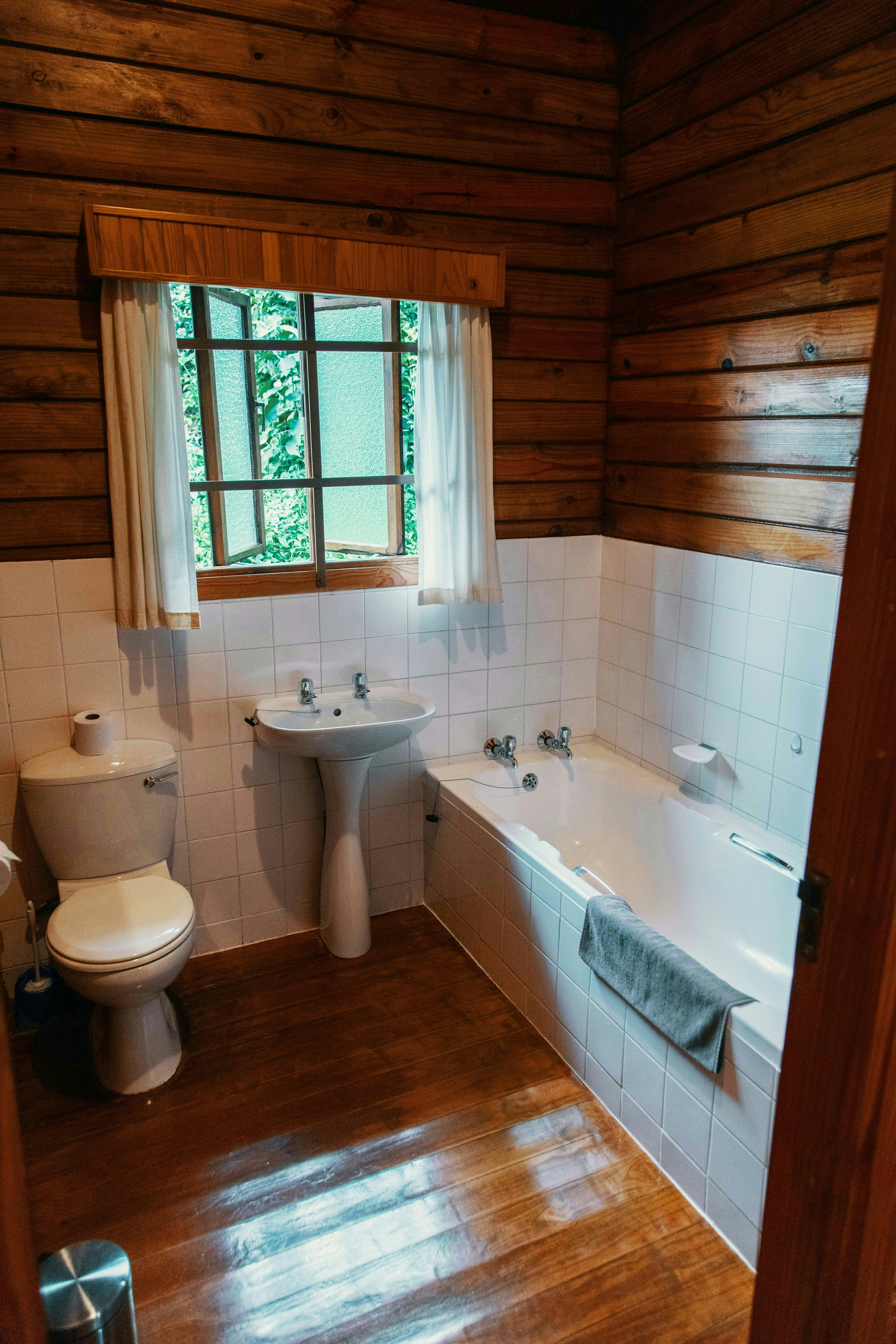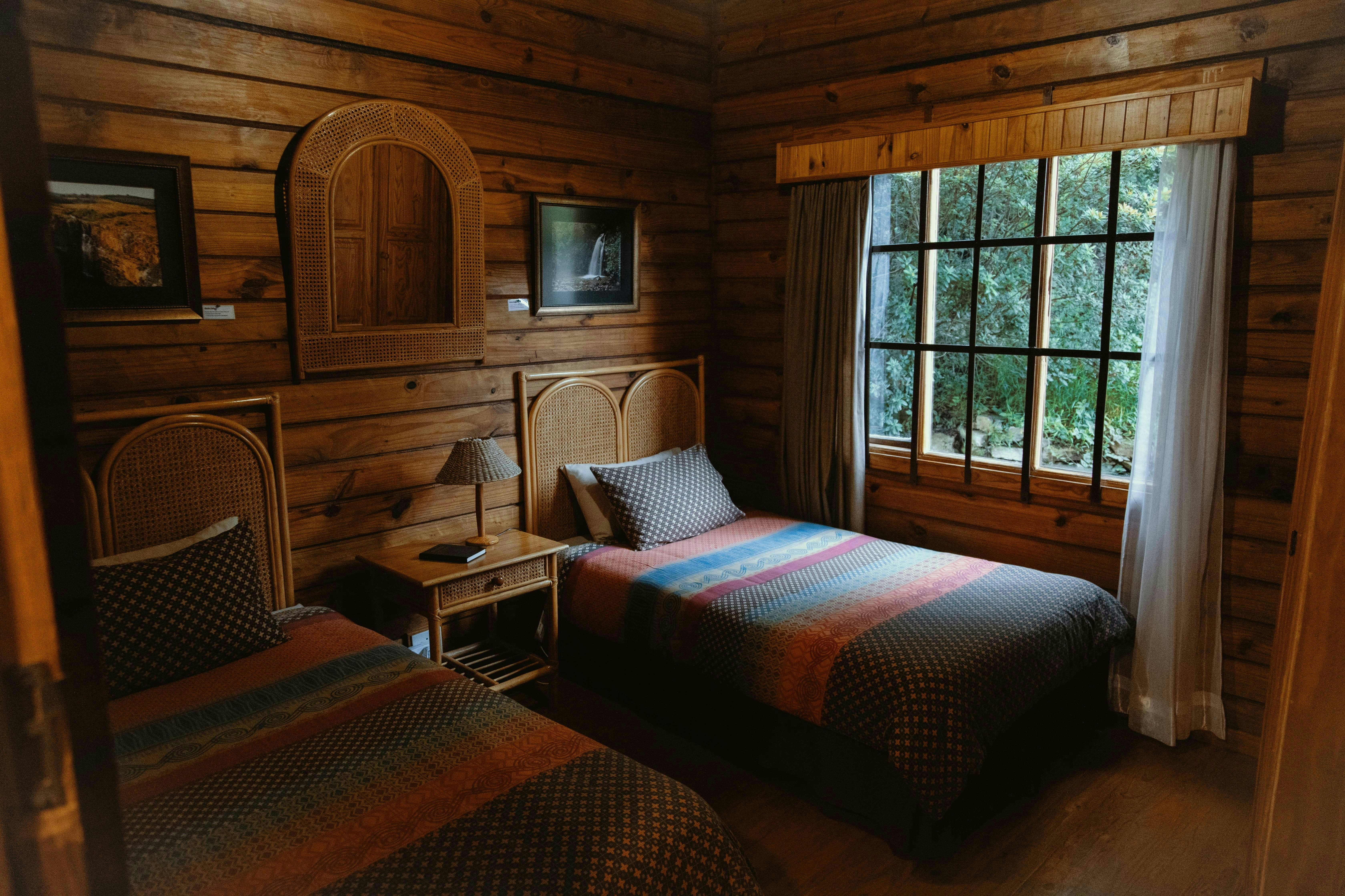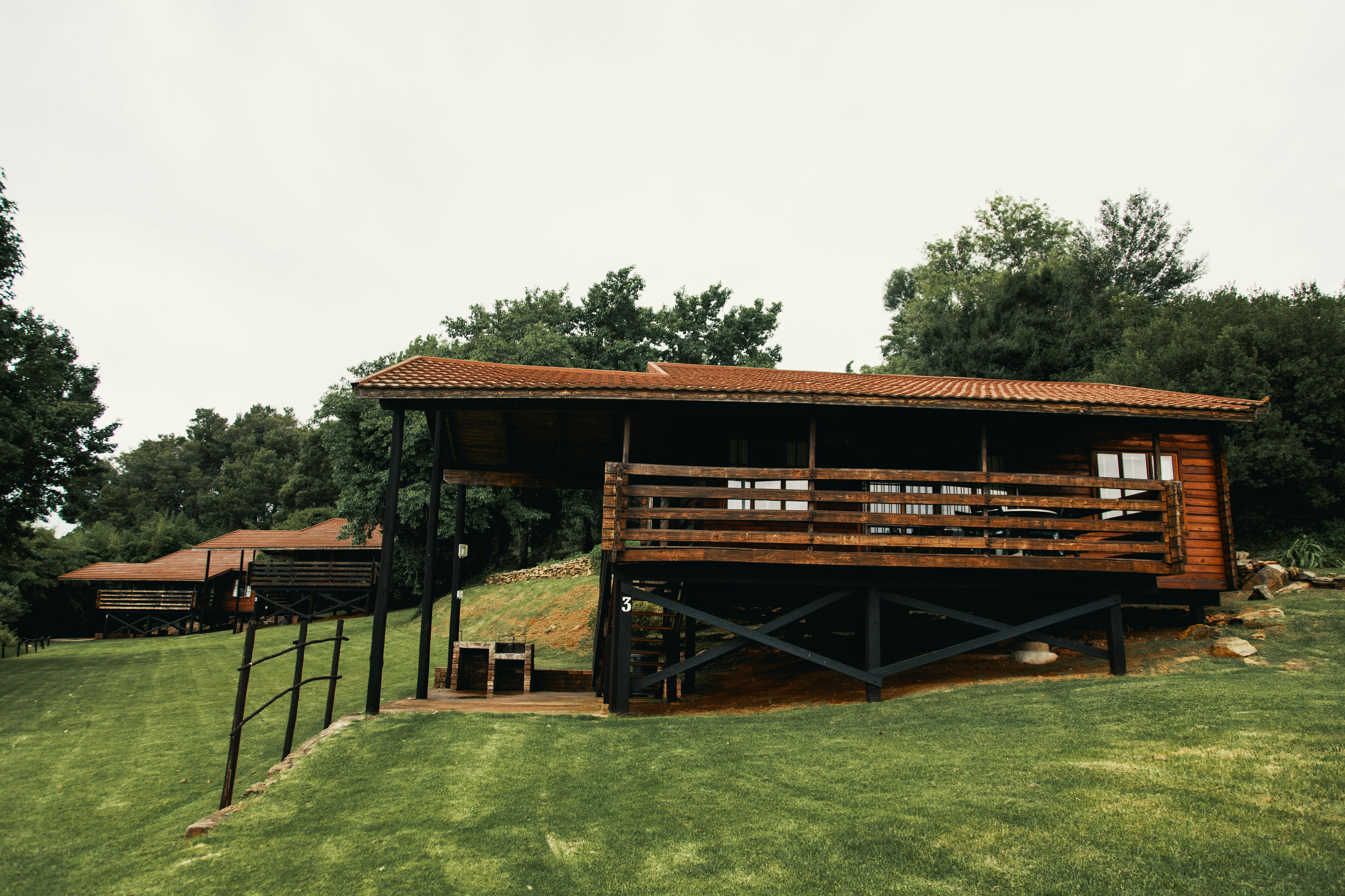 Die Houthutte het elk 'n slaapkapasiteit van 4 volwassenes en 1 kind en bestaan uit 2 slaapkamers en 1 badkamer. Die badkamer is toegerus met 'n stort-oor-bad, wasbak en toilet. Linne en handdoeke word voorsien.